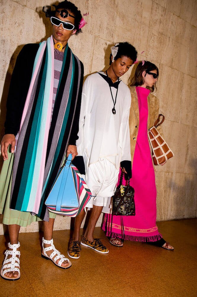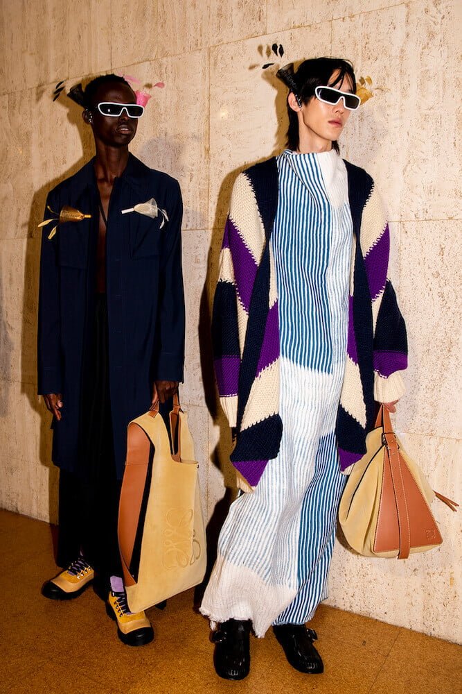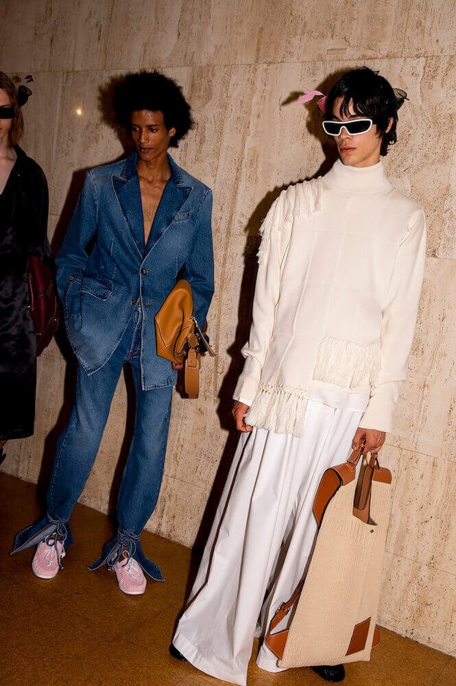 The Creative Director of Loewe Jonathan Anderson has a fascination with the art world: Loewe and art are interconnected. Indeed, since Anderson’s inception at the house, Loewe has become the default fashion label for art’s creative liberals. They appreciate Anderson’s understanding of the “their world”; the brand’s craft and creativity – its energy. Left on each guest’s chair at the SS20 Menswear line-out, held at the Maison de L’UNESCO in Paris, this afternoon, was a sheet detailing video-art works by the Turner Prize nominee Hilary Lloyd.