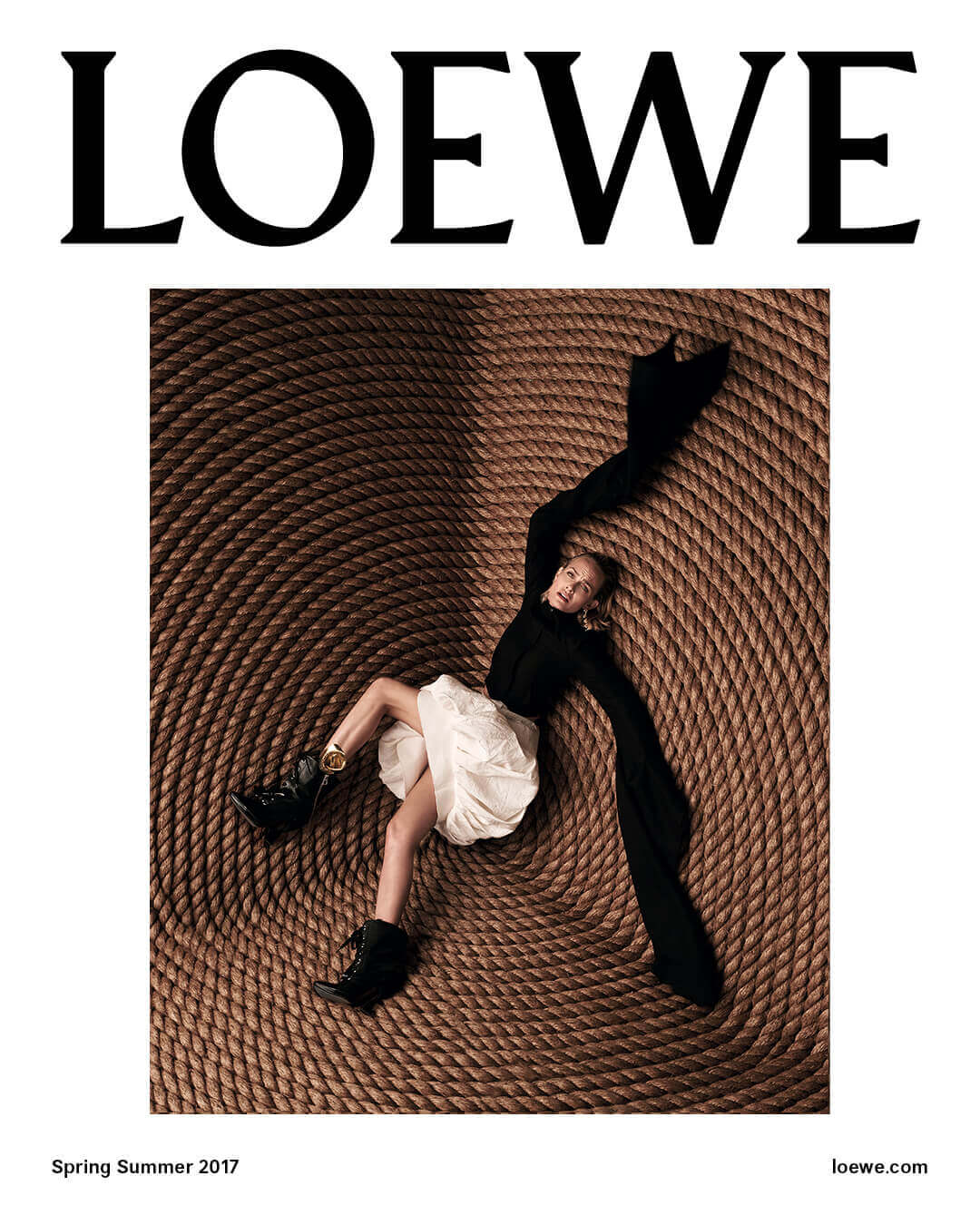 I love Amber Valletta. If I were, by some twist of fate, to switch genders and become a woman, and not just any woman, a woman of my choice – I would choose her. Why? She is a supermodel of the world. Perhaps the supermodel of the world. Face, grace, uniqueness, nerve, talent. Etc etc. Dominic loves her too. She’s in one of his favourite TV shows, apparently. Revenge. Something about her falling off a building. And then he said she looks a bit like a cat. And he loves cats. Basically, Amber is amazing. Here, she stars in Loewe’s latest – their SS17 campaign, photographed by Steven Meisel and styled by Benjamin Bruno, creative direction by Jonathan Anderson and M/M Paris. And we’re getting a rope moment. Not in the sense that Amber’s tied up. How dare you. No, she’s actually serving up poses (broken doll! fashion slouch!) in a room made entirely of coiled rope. Whilst wearing SS17 Loewe. Hawt!