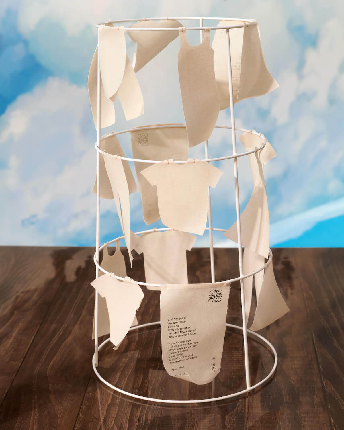 To mark the collection’s release – which sees a range of the brand’s hero products, such as the Puzzle and Flamenco bags, feature the film’s beloved characters – Loewe has taken over Selfridges’ Corner Shop. Opening today, February 1, fans can exclusively shop the collection before anywhere else in the world – where blown-up sculptures of Sophie, Calcifer the fire demon and the Moving Castle decorate the space. Loewe has also taken over Selfridges’ Dolly’s Café to open Calcifer’s Kitchen, a “culinary experience” for you to indulge in sweet and savoury treats inspired by the film, created by Balbosté.