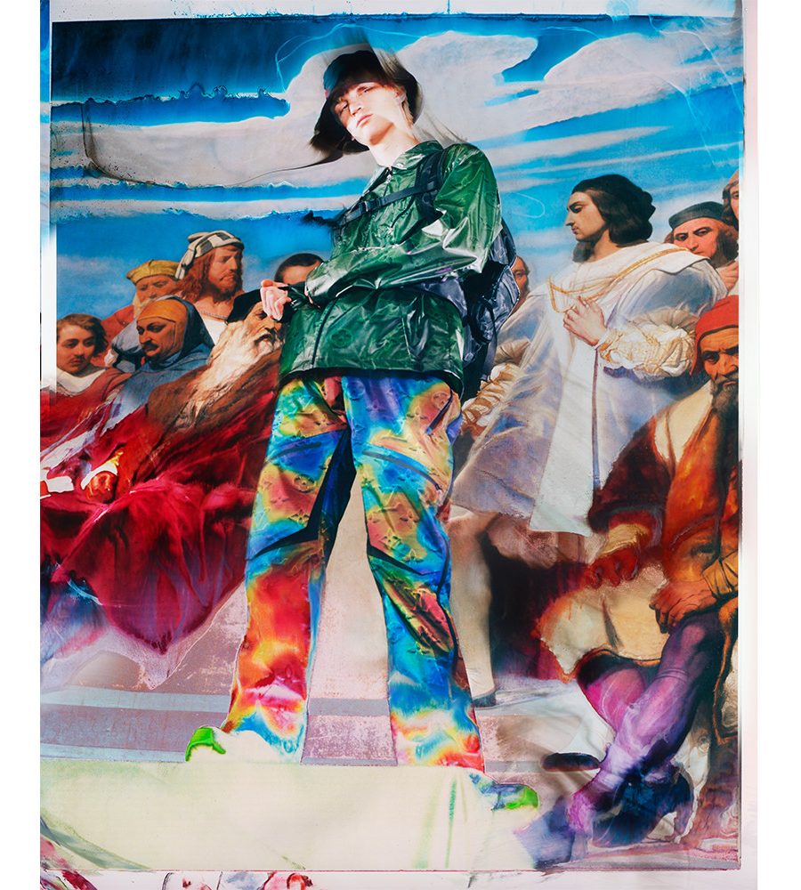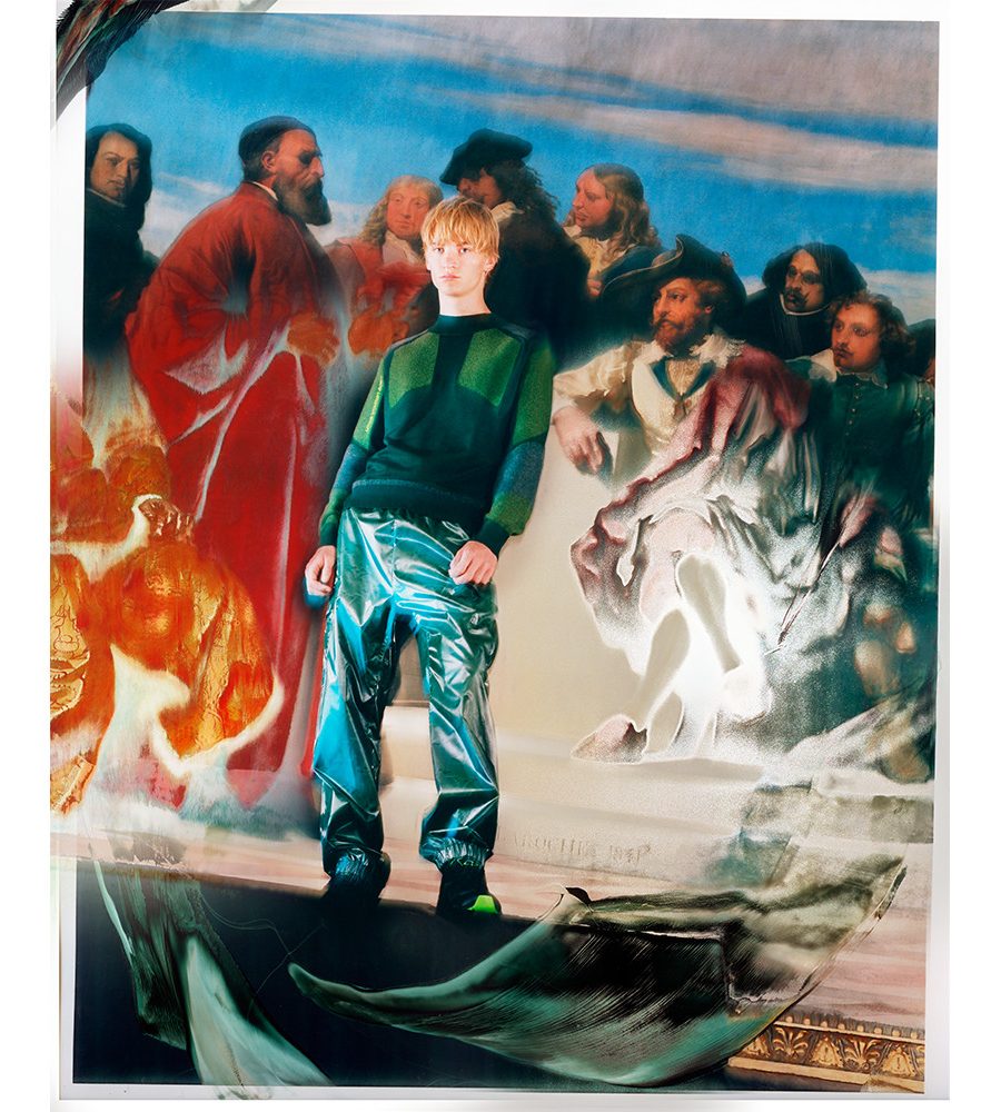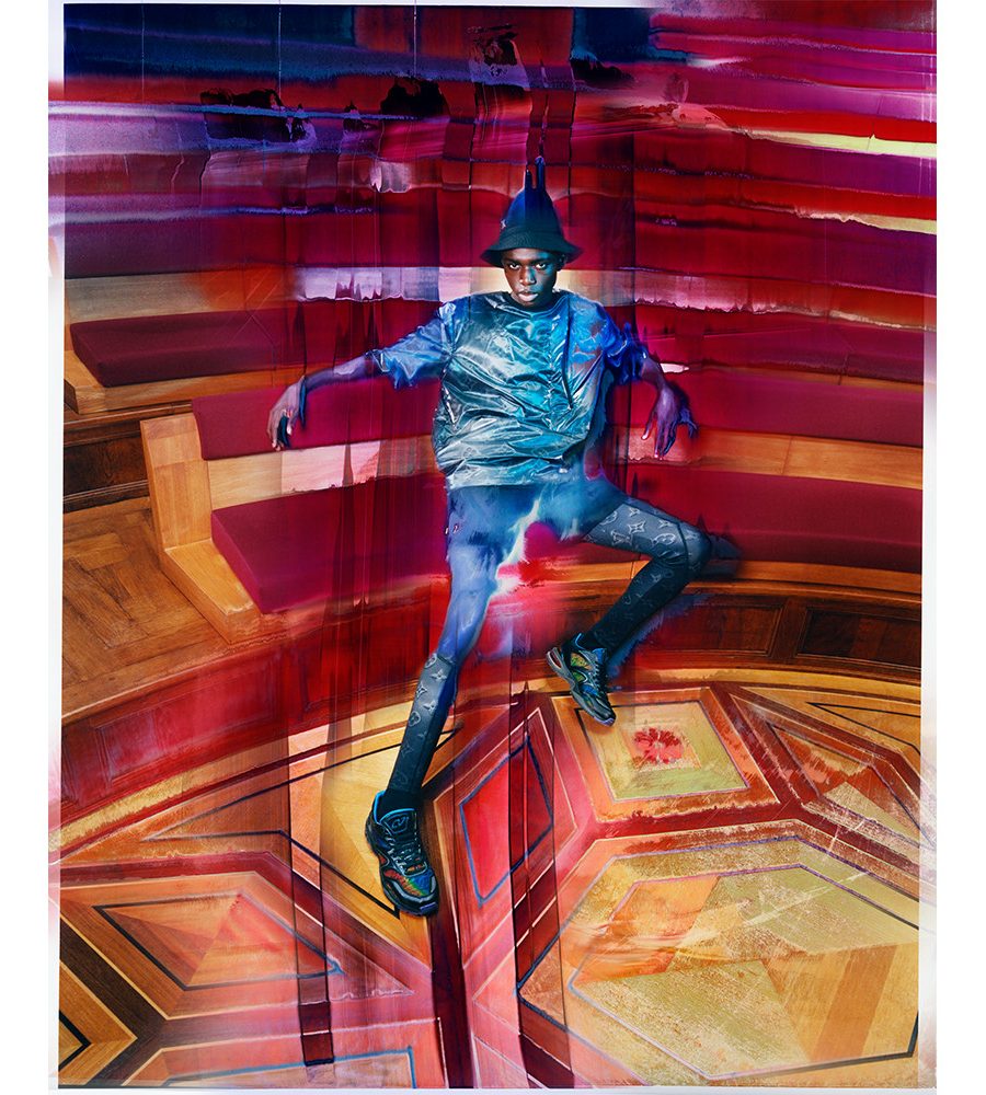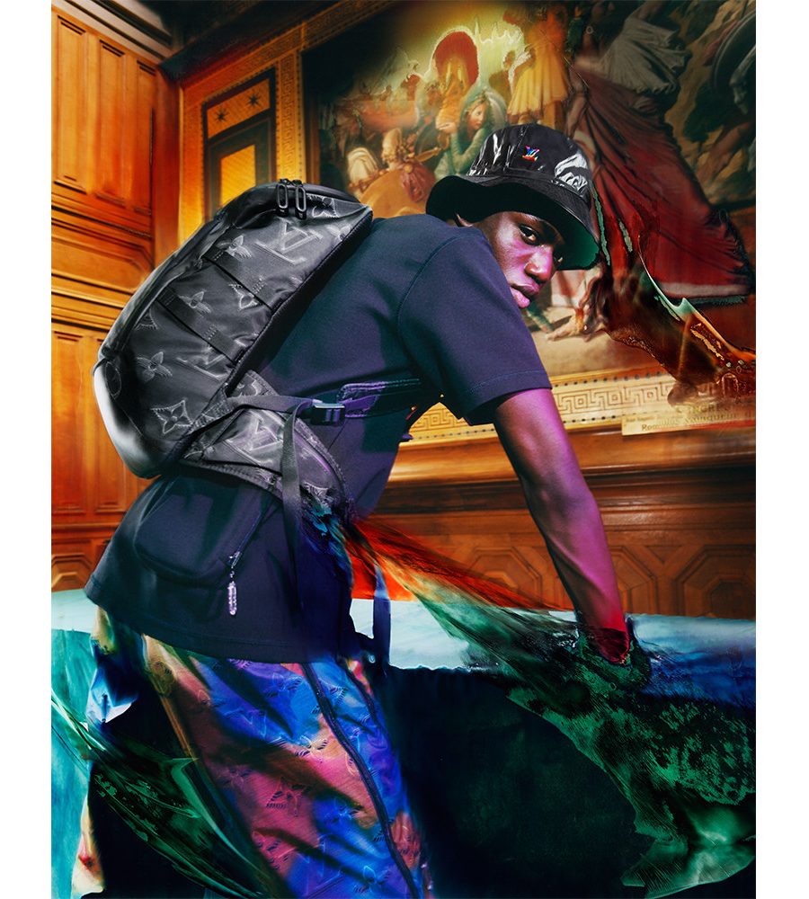 The collection reinforces the importance of adaptability. Adaptable in terms of decoding the fashion dress codes we are limited to today, as well as drawing upon methods used for skiwear to create a multi-climate collection. Photographed against a 19th-century backdrop, the extremes of style and design are paramount. A shirt transforms into a cross-body bag – a technique known as “compressomorphosis” – whilst the LV monogram is given a tromp l’œil makeover.