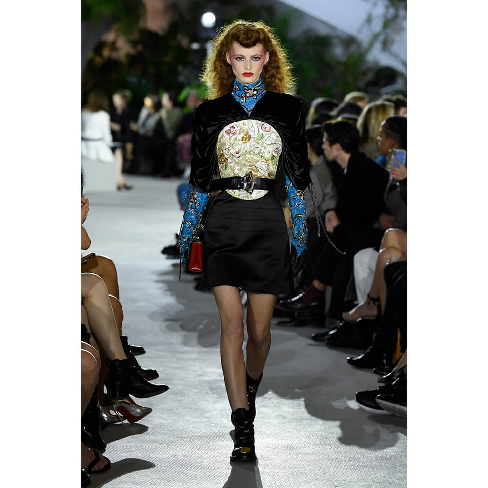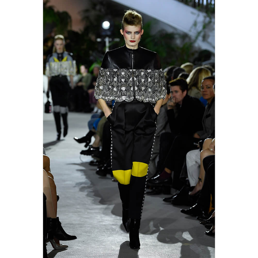 The electric energy of the New Wave came through in the bold lines and statement tailoring; the shiny, butter-soft leather coming at your eyes in the most unexpected contrasting hues. Ruffles and ruching popped out when they was least expected, while the couture-like embroidery took it all to the next level, giving depth to already voluminous silhouettes. It was a story of a nightlife traveller, perhaps a girl that arrives to the airport straight after her night out. Her pompadour hair and high contrast, 1980s power bitch makeup intact and ready to go. She doesn’t care, do you?