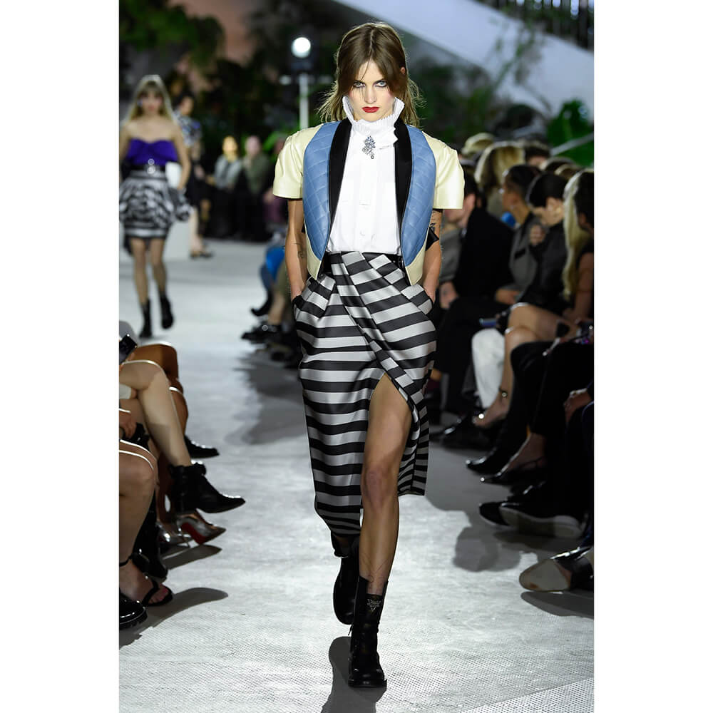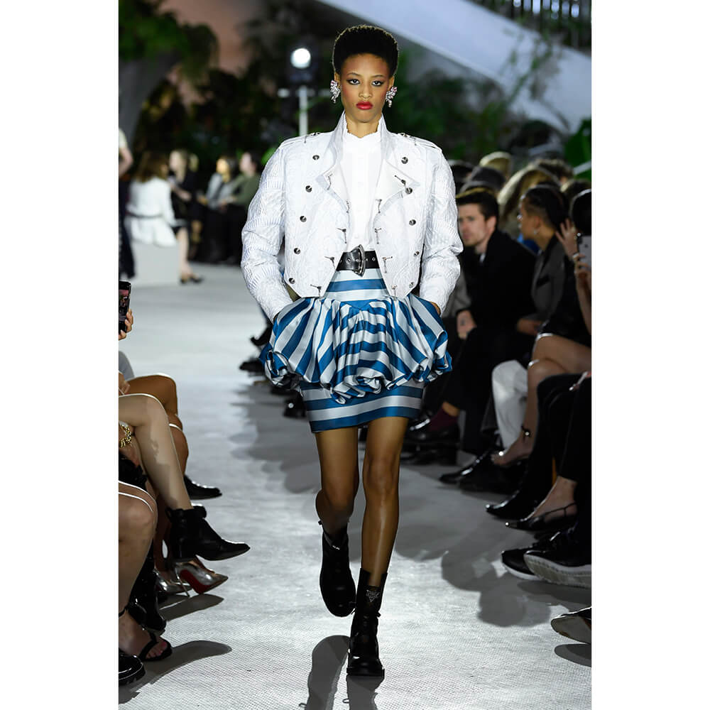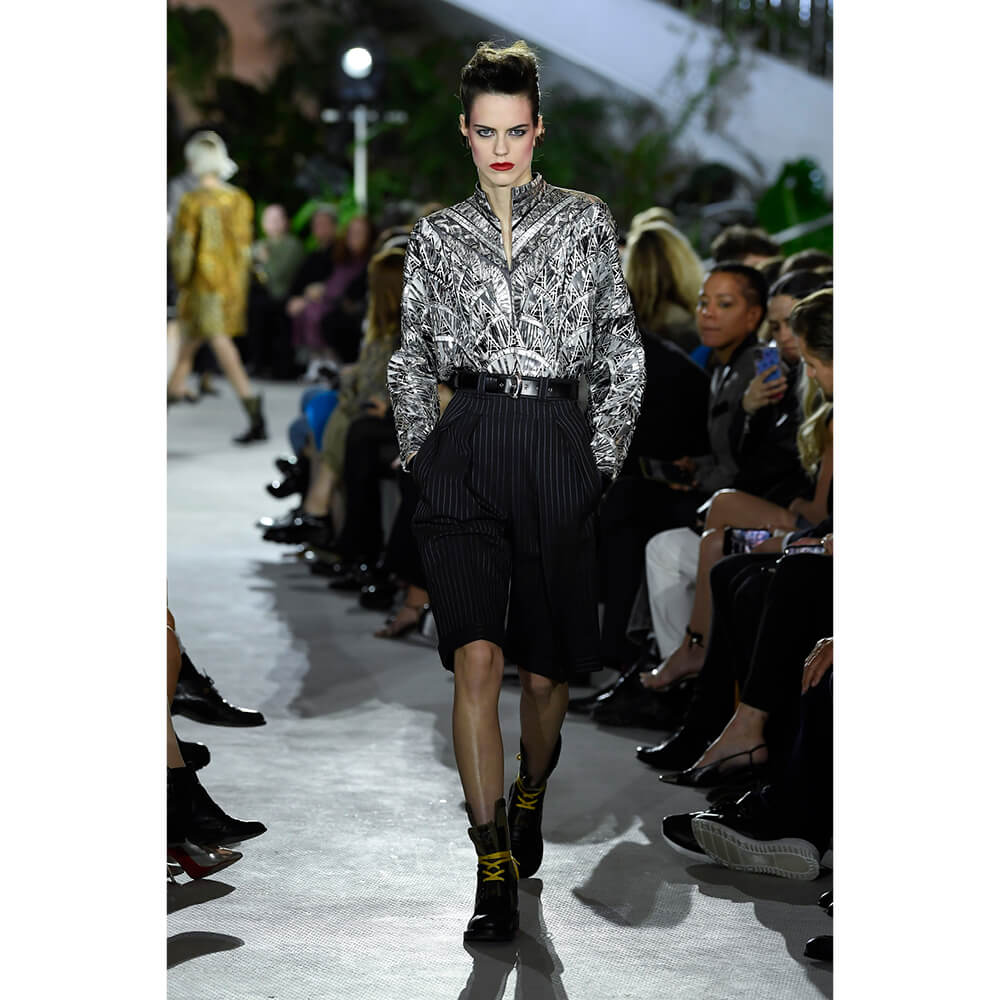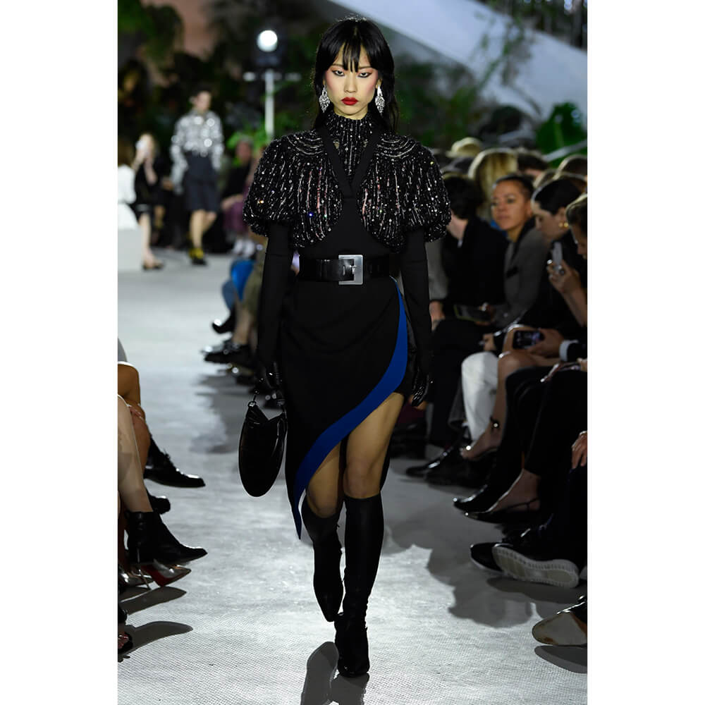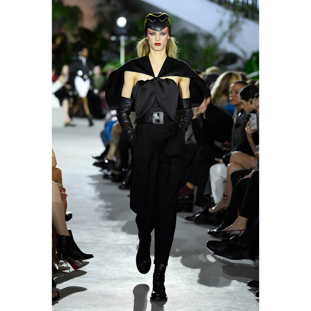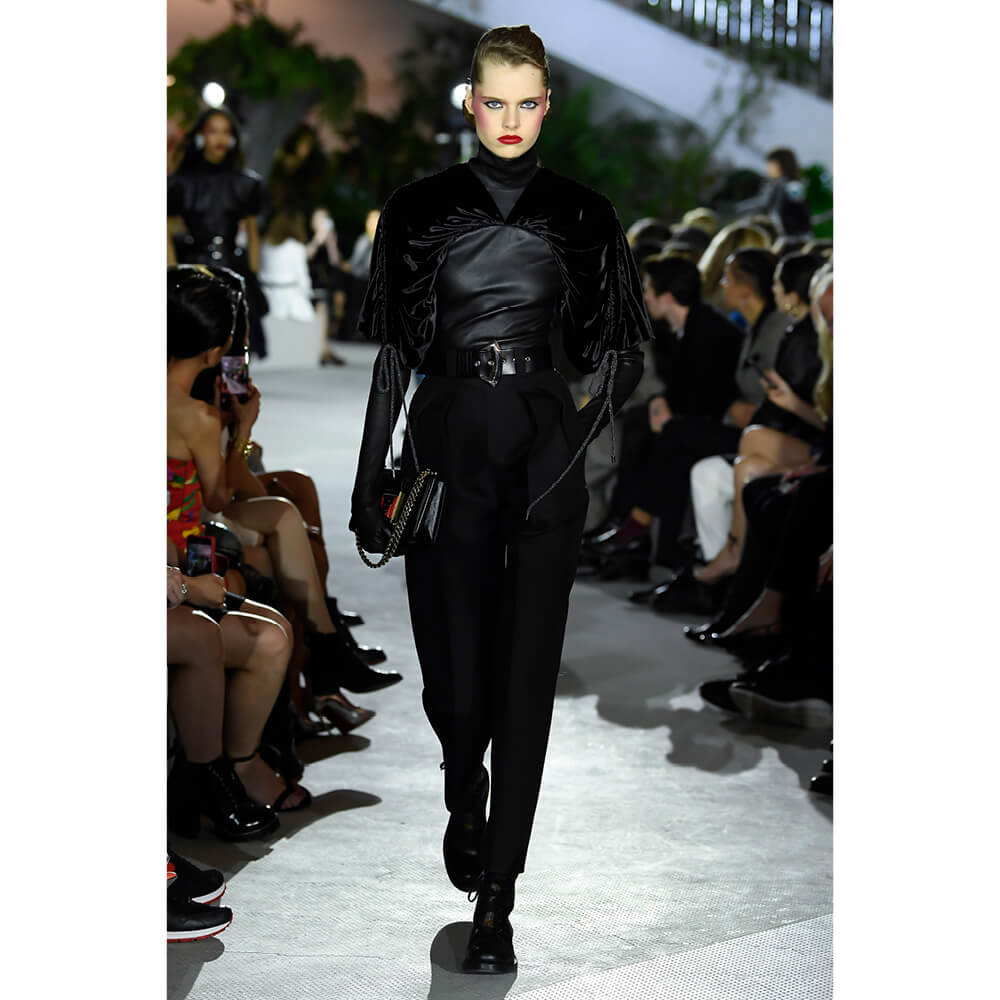 With the sound of the automatised information board in the background and the fantastical architecture embellished with tropical greenery as the set, Ghesquière sent down a collection that was a natural continuation of his AW19 show in Paris, or at least set in the same decade. 1980s Bananarama drama. But while the Paris show was decidedly inspired by the European take on the era, the Cruise 2020 show was more of a cross-Atlantic conversation. A dialogue between New York and Paris, both the Uptown and Downtown (or the Rive Droite and Rive Gauche), the clothes presented were Ghesquière at his best.