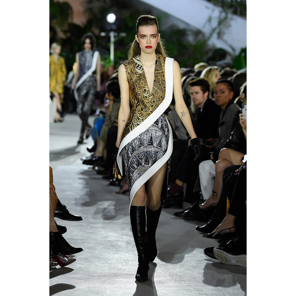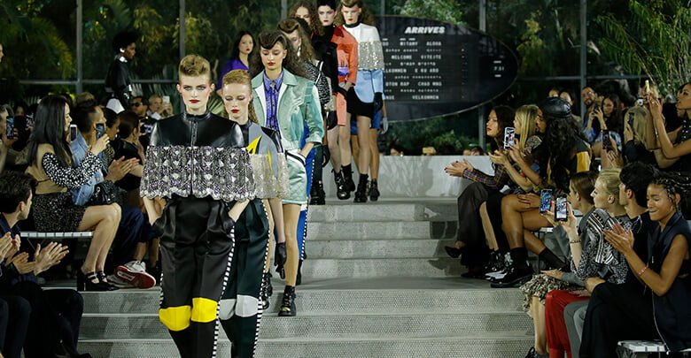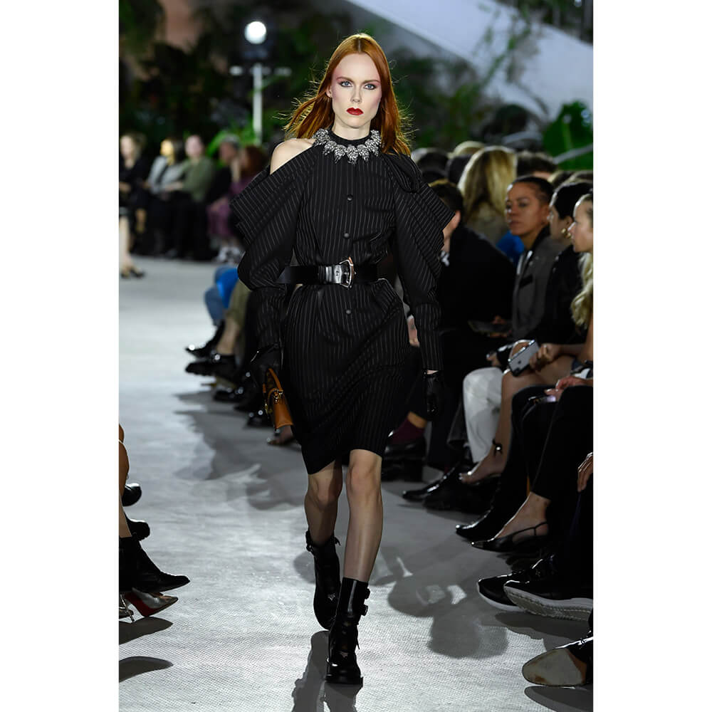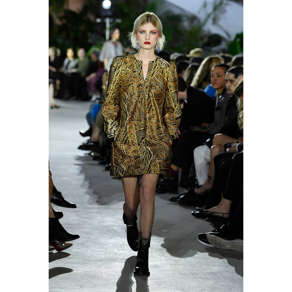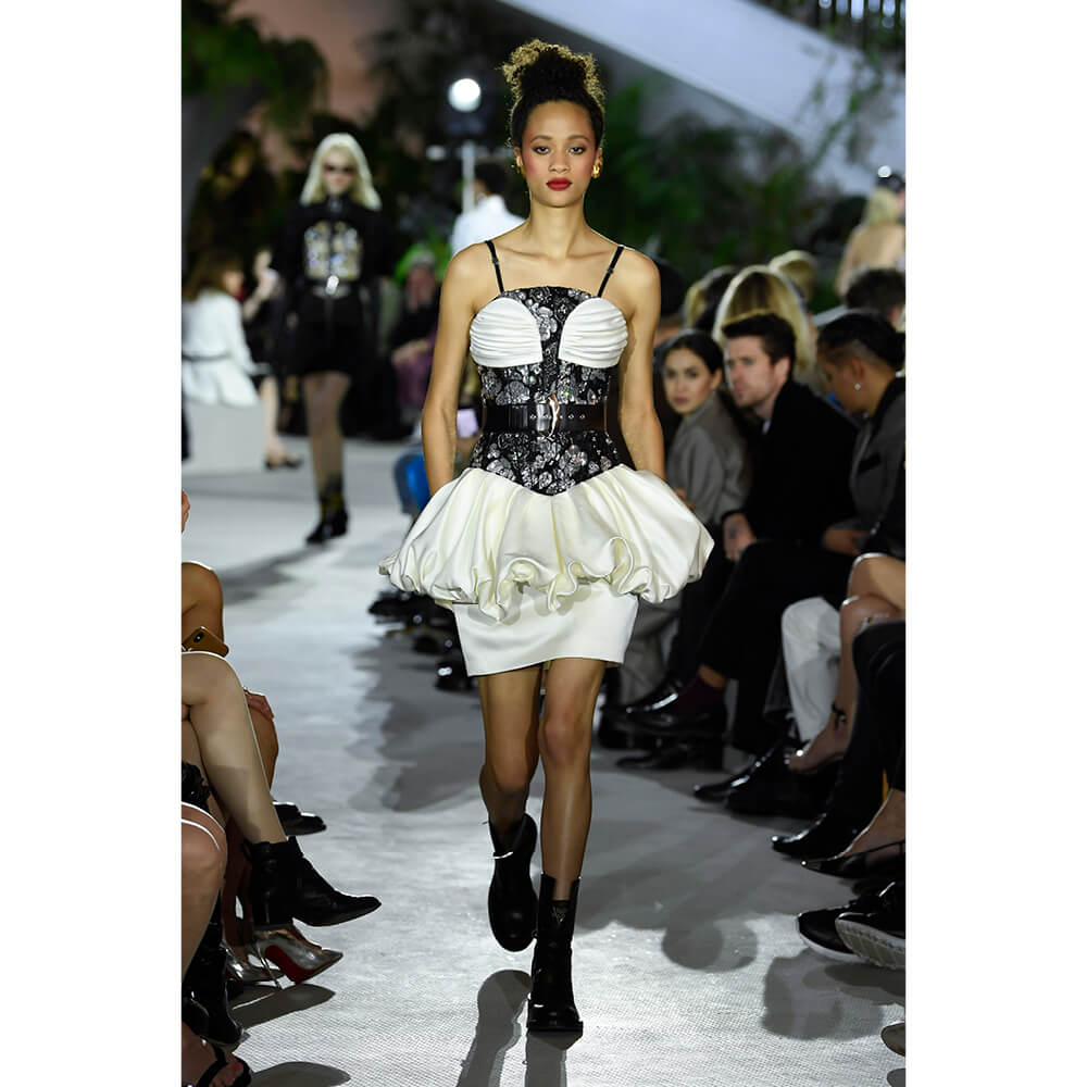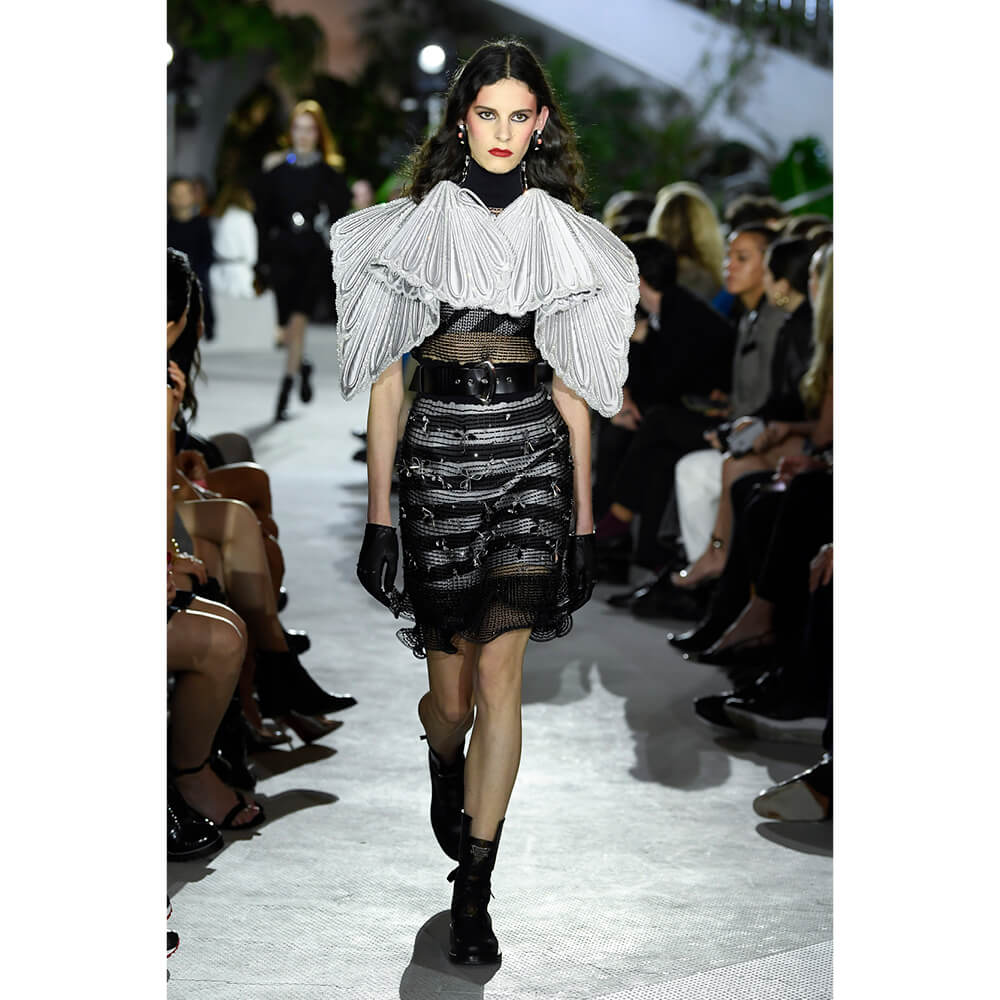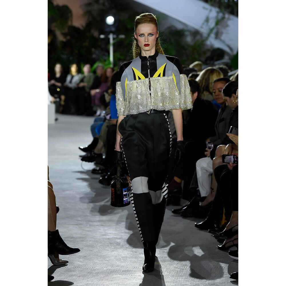 With the sound of the automatised information board in the background and the fantastical architecture embellished with tropical greenery as the set, Ghesquière sent down a collection that was a natural continuation of his AW19 show in Paris, or at least set in the same decade. 1980s Bananarama drama. But while the Paris show was decidedly inspired by the European take on the era, the Cruise 2020 show was more of a cross-Atlantic conversation. A dialogue between New York and Paris, both the Uptown and Downtown (or the Rive Droite and Rive Gauche), the clothes presented were Ghesquière at his best.