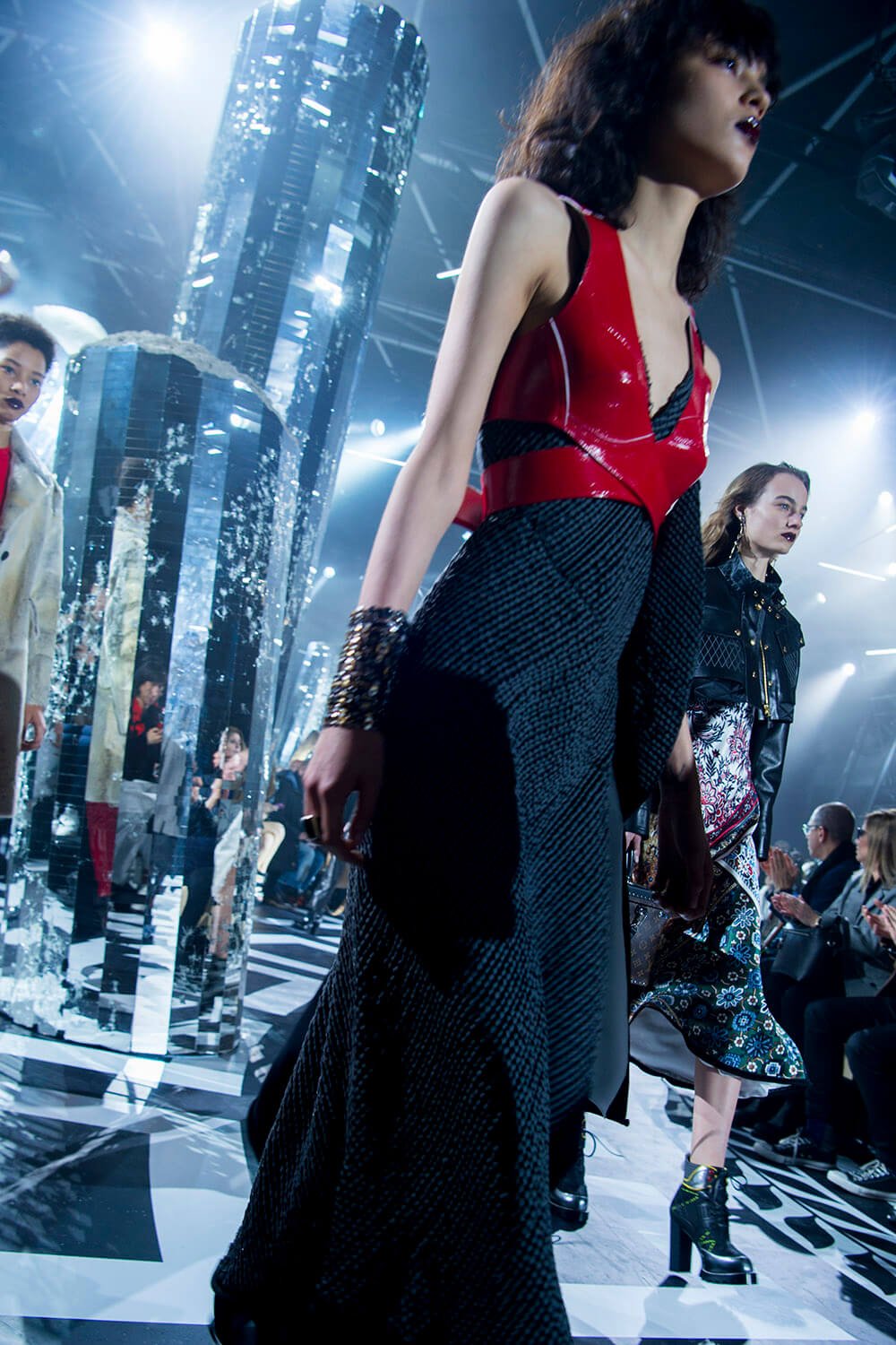 Nicolas Ghesquiere is a futurist, a forward-thinker. That’s what we make our pilgrimage every March and October, to the Foundation Louis Vuitton, to see: the future of fashion. He never disappoints. This season, Ghesquiere re-erected Atlantis (no big deal) inside a series of black tents, while the rains poured torrential outside. The clothes he showed were fit for a modern warrior-cum-explorer, cross-bred with a supermodel obviously, in stomps-soled high heels, bias-cut dresses and scarf-wrapped handbags like precious jewels uncovered from some archeological dig. Or indeed, a delve several thousand leagues under the water. We loved the multicoloured Louie Louie scarf print dresses, the staple details, the kinky long leather gloves with pieced in colours like motocross leathers. In fact, we sort of loved everything.