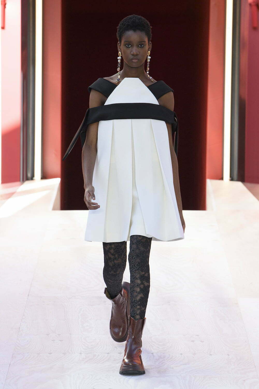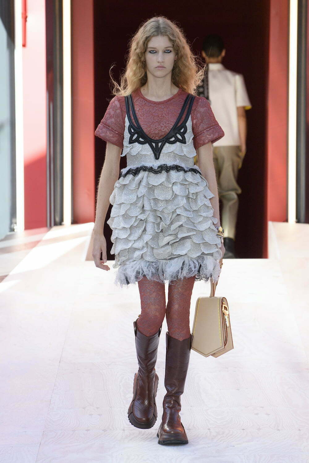 Ghesquière had collaborated with French artist Philippe Parreno to create an outdoor installation/set within an inner courtyard of the Louvre. It looked like a fairground ride but was actually a “monster flower.” Yet another play on proportion and perspective from the outsized talent of Ghesquière, who received a well deserved standing ovation.