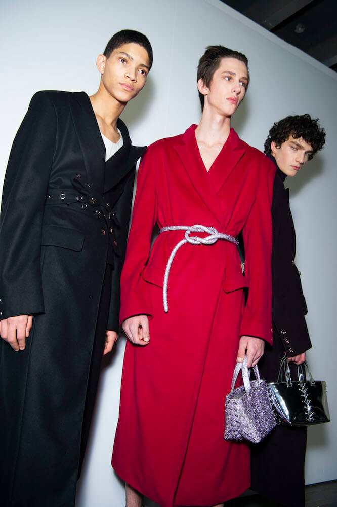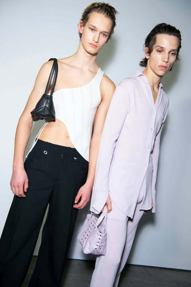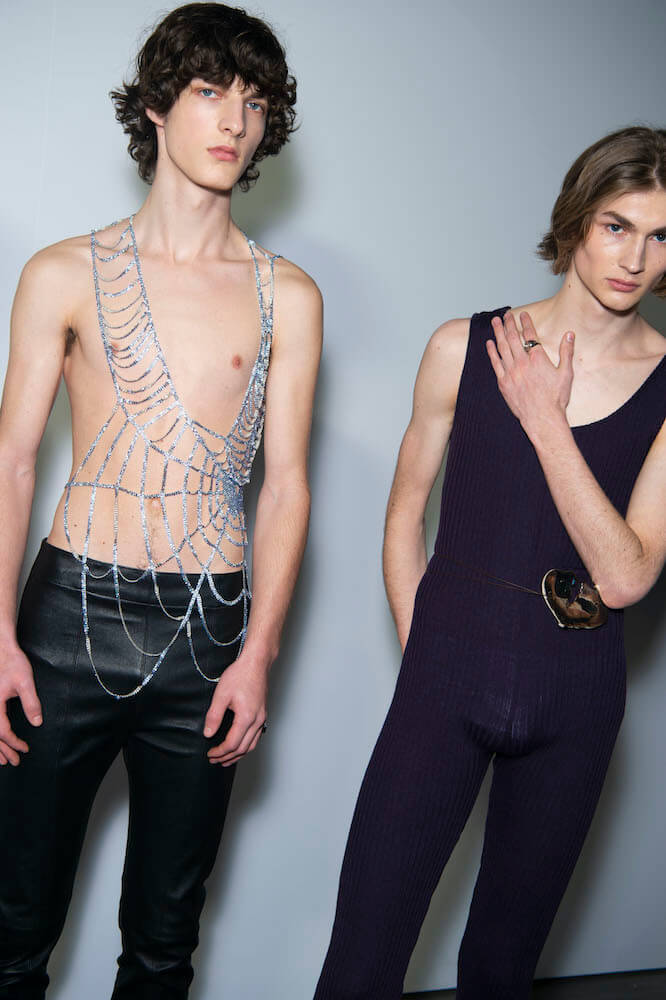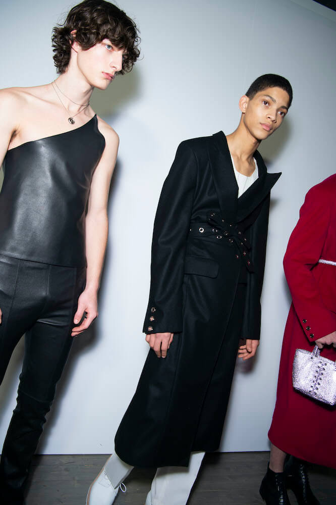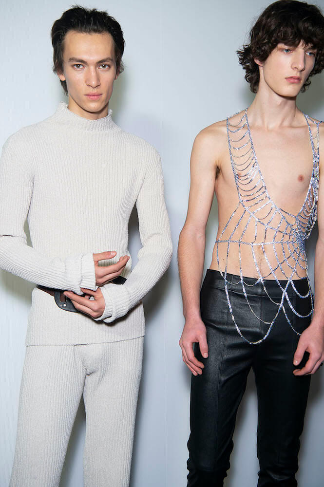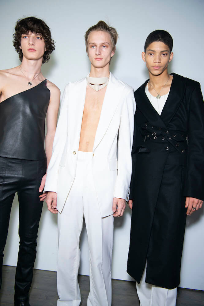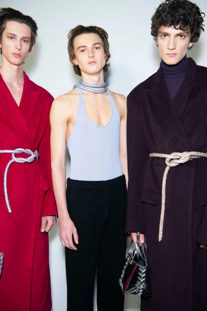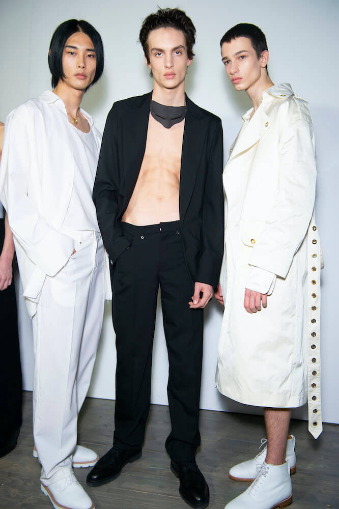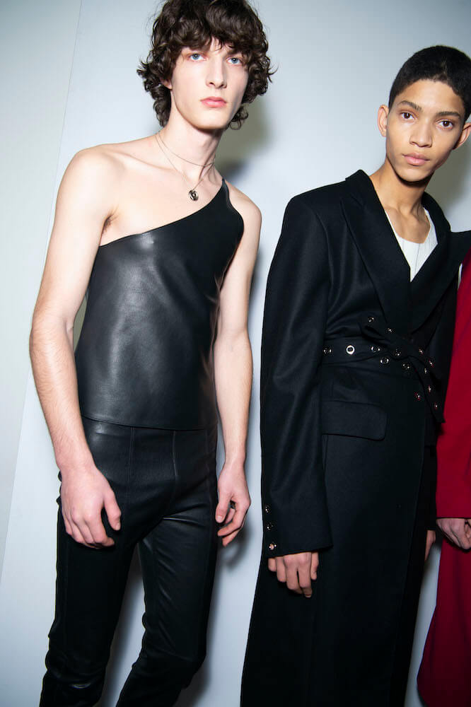 Despite AW20 coming at a time of heartache for the designer, there was no time to sit round in bed crying all day surrounded a mountain of used tissues. The slinky, sexy, ultra-femme clubwear that has defined the brand thus far was on full display. Boys came in barely-there bras and briefs, as well as a chorus of racy tank tops that were cut to slightly flash the mid-riff. This season, de Saint Sernin was also interested in superheroes – interweaving ceramic masks and leather gloves throughout. Think: Zorro, if only he was a regular at Chapter 10. Liberating menswear into a new dawn of unapologetic sensuality, if this is what a heartbreak hotel looks like, where do we check-in?