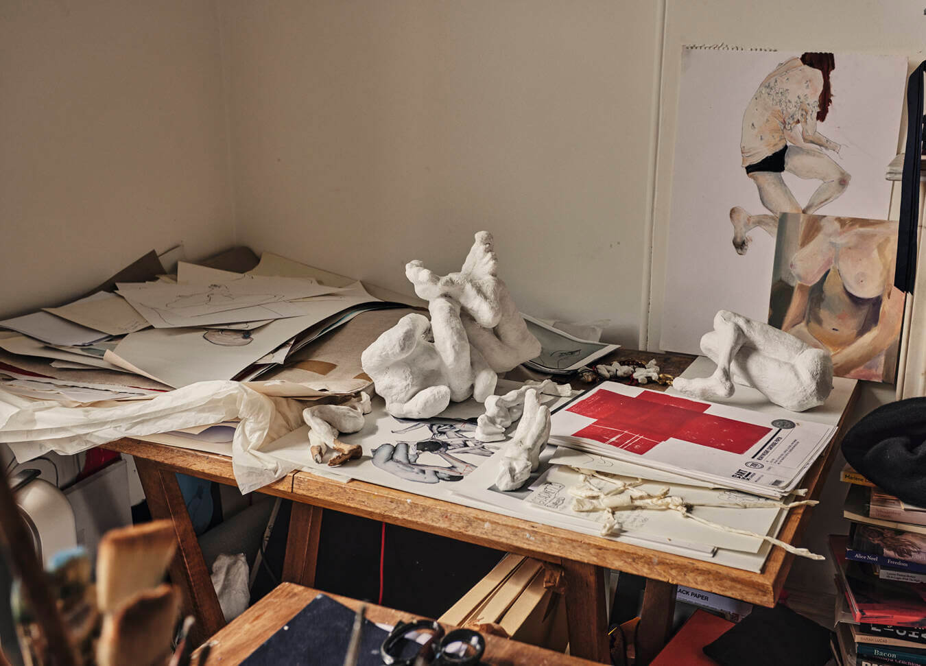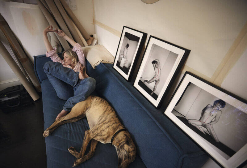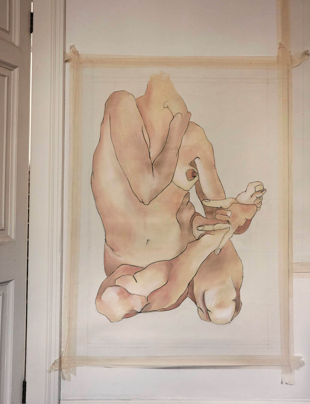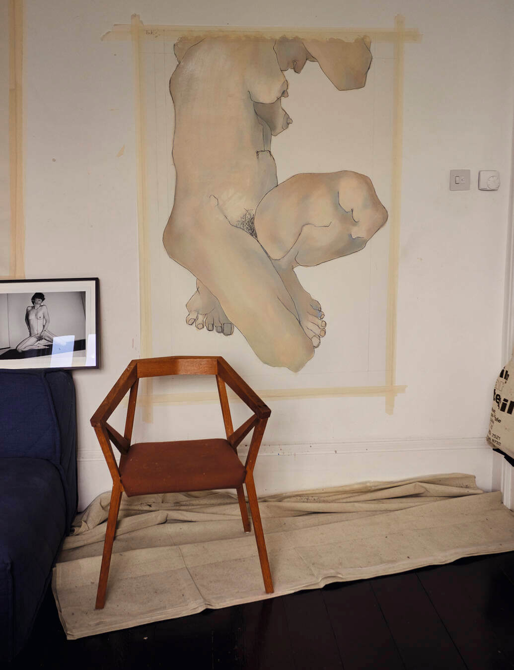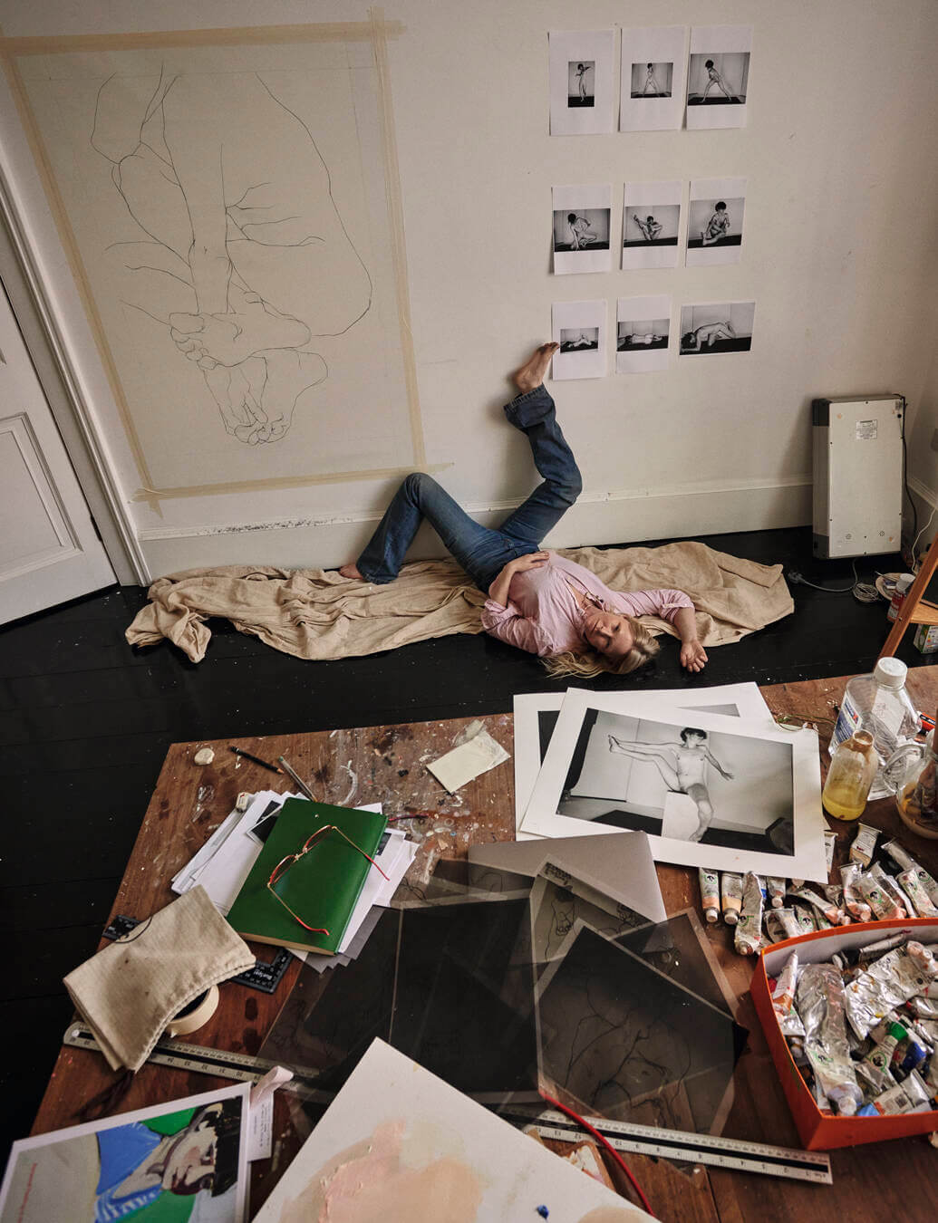 The artwork is the result, but it is the process that is incendiary. “I don’t think about my body and the physicality and emotion of being a woman a lot in this work. It’s more instinctive. I’m getting a kick out of repetitively drawing the female form, painting the female form, photographing the female form,” she says. “I can’t explain it, but it’s definitely had an effect on me as a woman. It’s been a process that’s made me pay attention and find comfort. It has made me feel more grounded, more inquiring. It’s helped me make decisions in my life that have been brave. Energy has transferred from the work into me.”