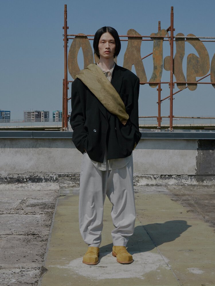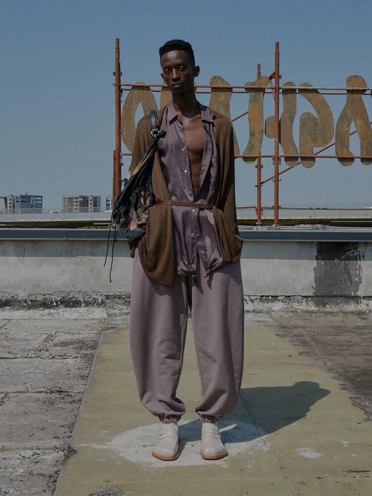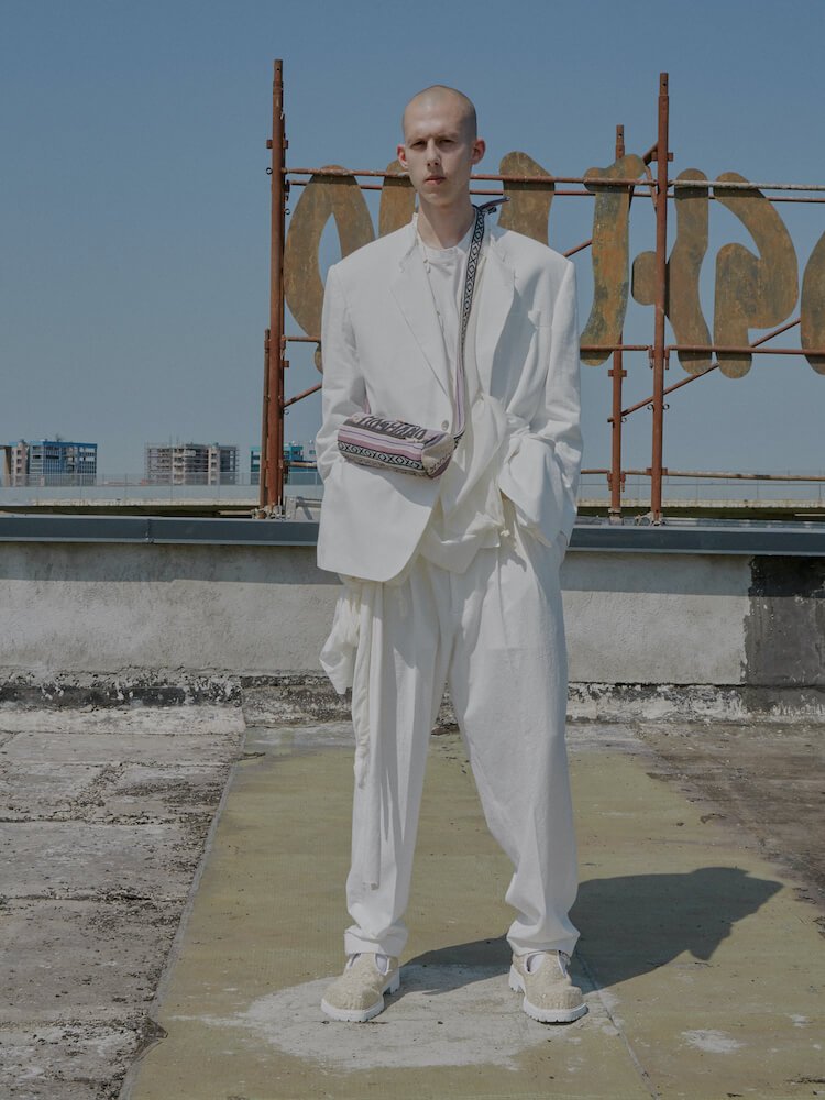 As the garments drape and shroud the body, creative director Luca Magliano begs the question: can clothes heal wounds? What he discovered is that despite the conceivability of the concept, the answer is uncertain. From this, the prints on display are inspired by anti-retroviral pharmacological therapies, appearing remedial yet demure.