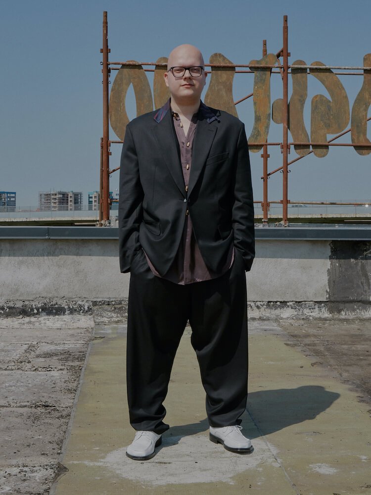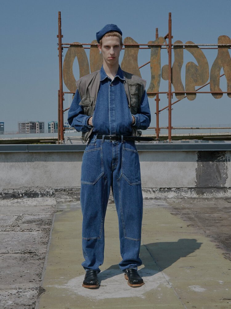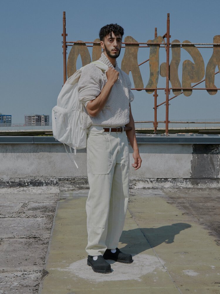 Set in a fifty-years-abandoned voltaic Enel Energy cabin, the collection was dark and mysterious, yet drunk on power. While the light creates a penumbral effect on the smooth silhouettes, silk organza combines with cotton speaking of the inescapable themes of the blue-collar world which the designer has revisited since founding his brand in 2016.
