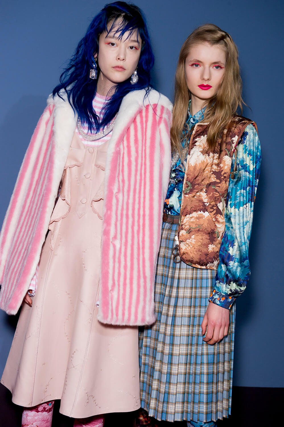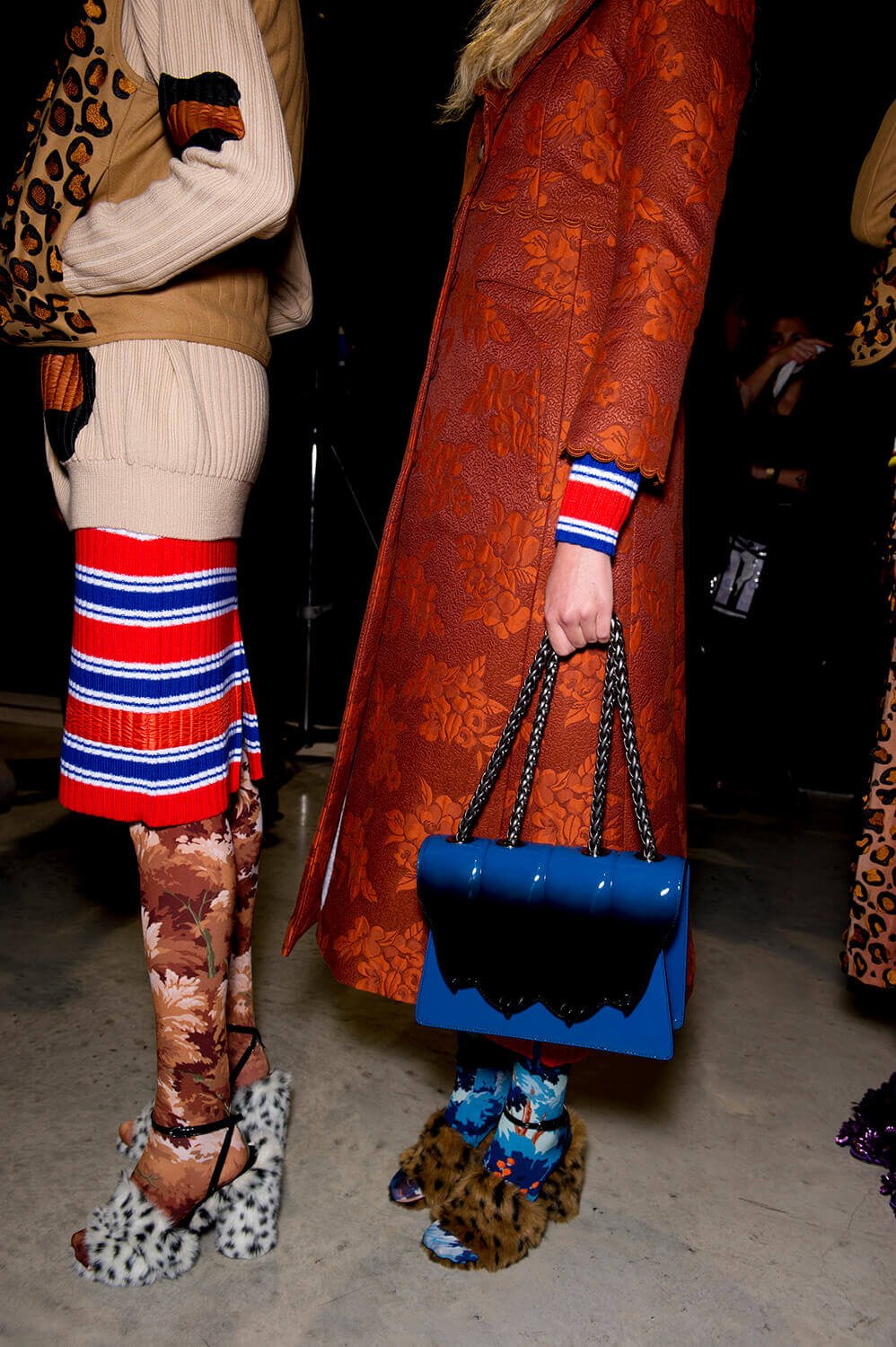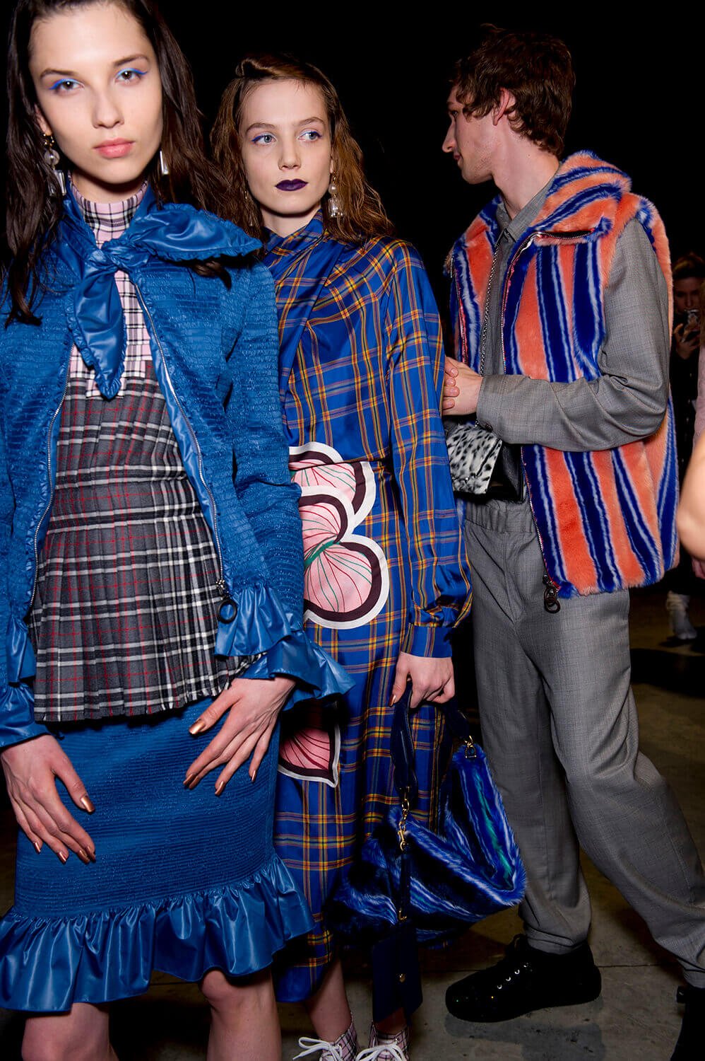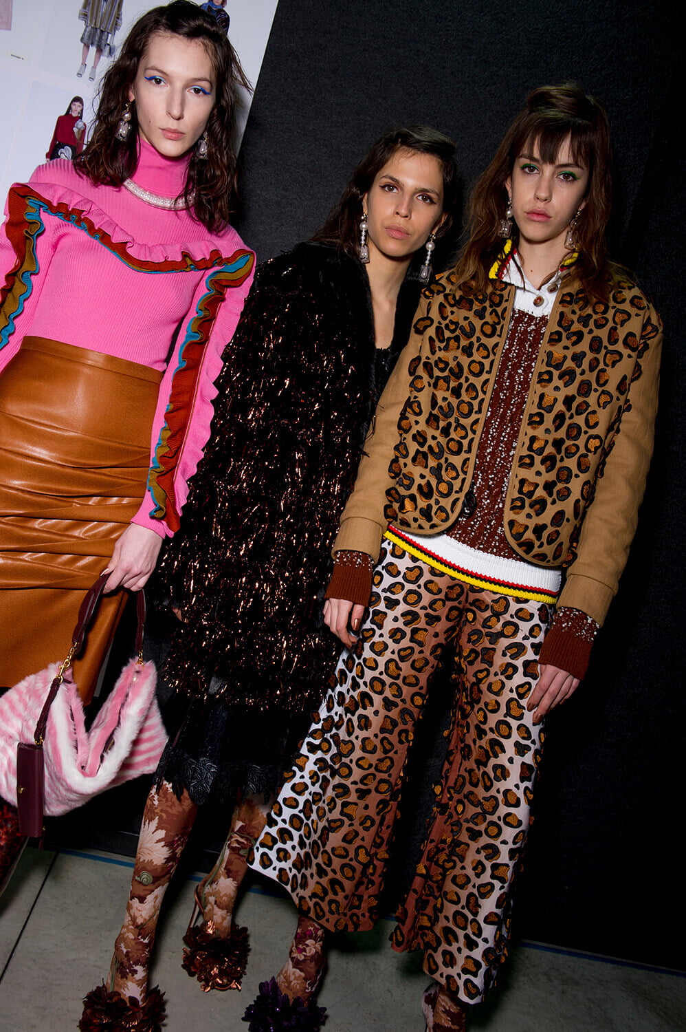 More more more. Just how we like it. We’re greedy bitches, you see. Plenty for us piggies to devour at Marco de Vincenzo’s AW17 show yesterday, because this was a collection all about maximalism – pile it high, sell it… well, not so cheap. Not cheap at all, in fact, because this is expensive Milanese fashions, made from those fabrics that Marco is so good at – fantasy fabrics, here brought together in a riot of colour, texture and… tinsel. There were lurex sweaters, of course (they’ve become a bit of a signature) but also faux fur coats printed with pyramids and palm trees, clashing plaids, ruffles, amazing brocades. And the form of the clothes themselves? Well, imagine a cross between cowgirl, Little House on the Prairie and 1920s flapper. Somewhere around there. Loved.
