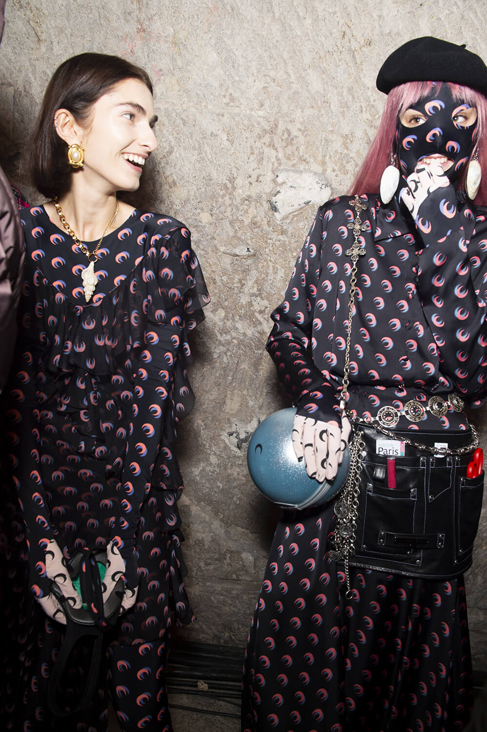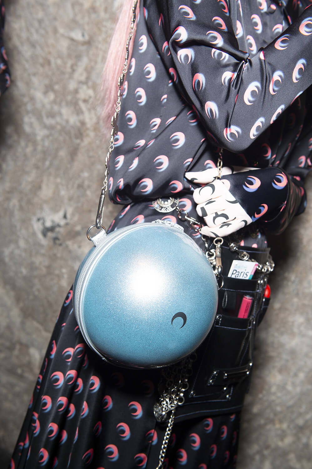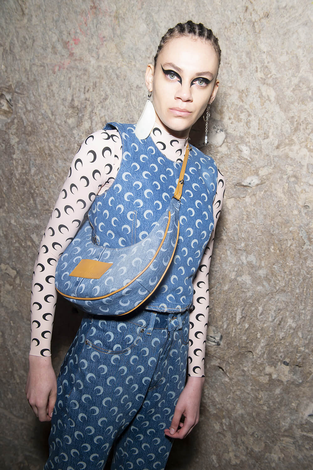 Her signature element – a mini lunar crescent – was back in focus today, referencing her breakout collection, one that earned her the 2017 LVMH Prize. This time round though, it wasn’t just printed all over lycra – it came printed on denim, subtly with dual tones as well as in a whole variety of more abstract artwork. Serre has previously stated she likes the lunar crescent because it’s a “symbol that evolves” and one that carries different interpretations in each different culture. Embracing the moon’s cultural versatility, her AW19 collection represented a rebellious spirit, taking pieces from the outcasts to the world into creating her own generation of tomorrow. Punk tartans, hi-vis neons, shaggy faux furs and balaclavas all shaped the silhouettes which came through in more variety than before. The final section featured looks that were embellished with found objects – coins, scarves, earrings and other bric-a-brac. This is a techno tribe we want to be a part of.