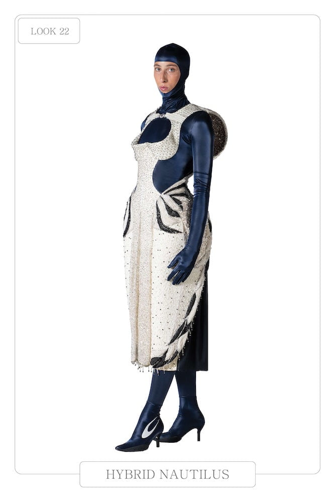 That was her theme. Specifically Amor Fati – the Latin phrase to describe the belief everything that happens in life – good and bad – for a reason. She teased her show with series of dystopian sci-fi clips: the singer Sevdaliza suspended in a white clinical space, a group swathed in toxic smoke, a genderless figure laid out on a slab. All the characters are wardrobed by Serre, and as an exercise in pandemic chic, it’s fascinating.