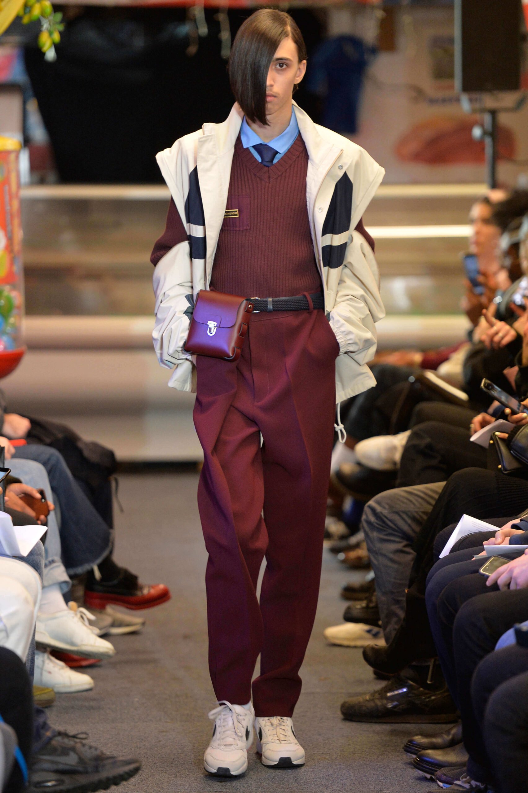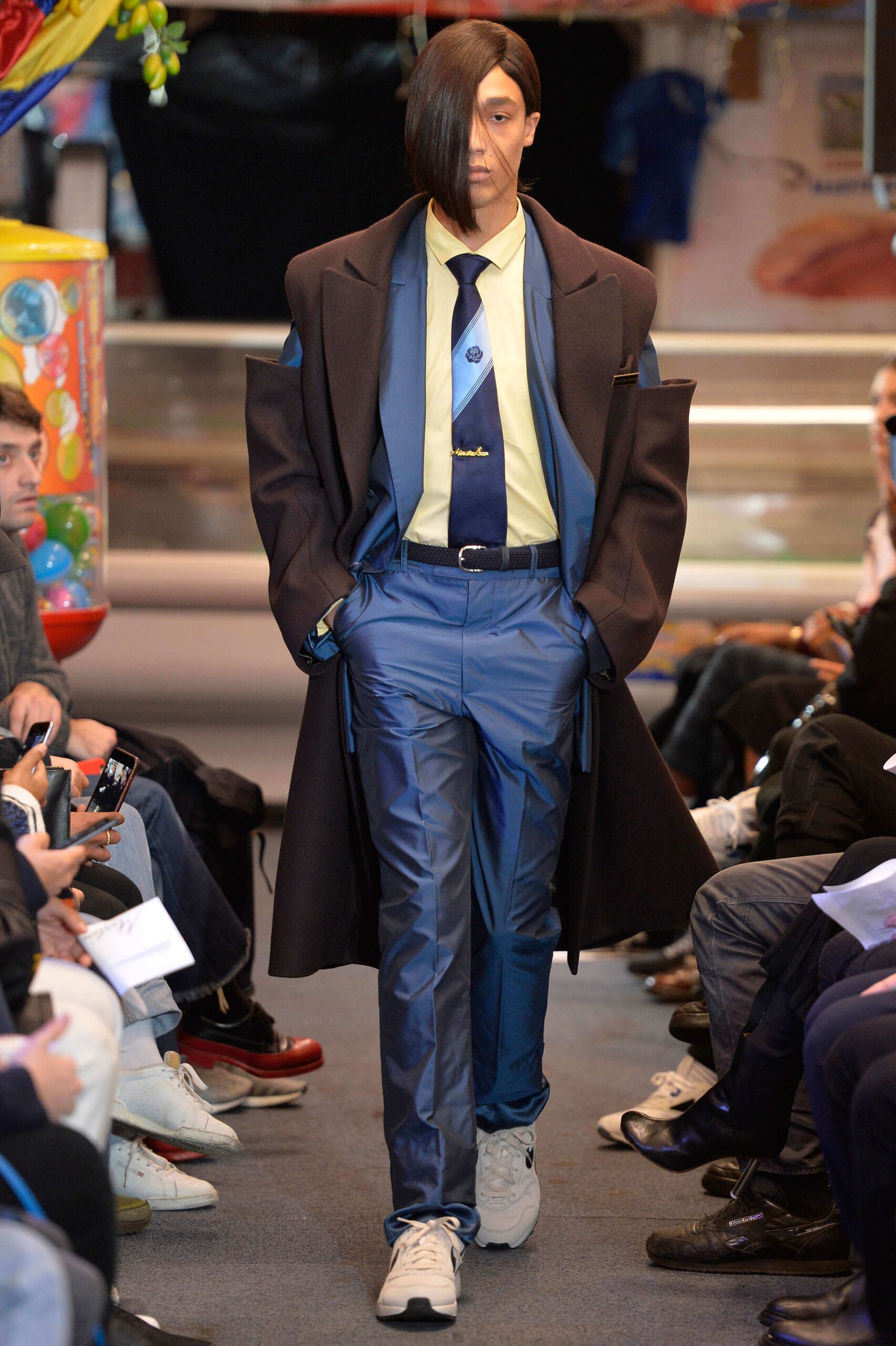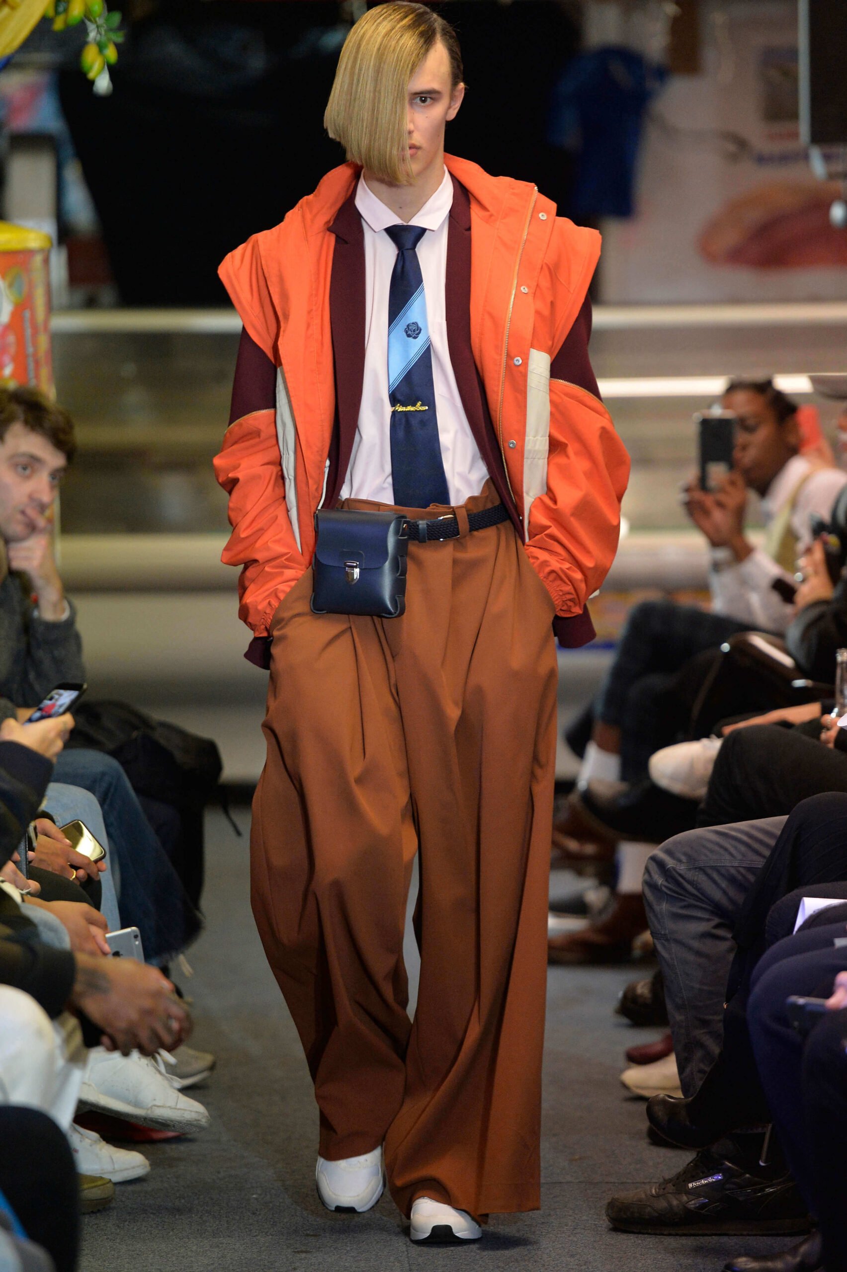 “My favourite show of London,” declares Garth. Martine Rose’s AW17 show was, for want of better words (sorry, it’s late) bloody brilliant. And it’s not often that we would drag ourselves out to N15 for a fashion show. But the amazing Seven Sisters market was the perfect backdrop (and there was food – proper food – chips, fried goods) for the collection – a sort of riff on masculine archetypes – bankers, office workers, bus drivers – the male uniform skewed in its proportions and in the details. Like the double waistbands, or those easy access zip flies that sliced right down the front of the crotch, bank teller style name badges, tie clips. It was this sort of brilliantly warped corporate uniform – XL wide-leg trousers, silky 90s-ish shirts, anoraks. Feeling a bit like obsessive fans. And rambling. Exciting fashions cause us to do so. Left Garth wandering into the night mumbling “want to wear! want to buy!” See you tomorrow…