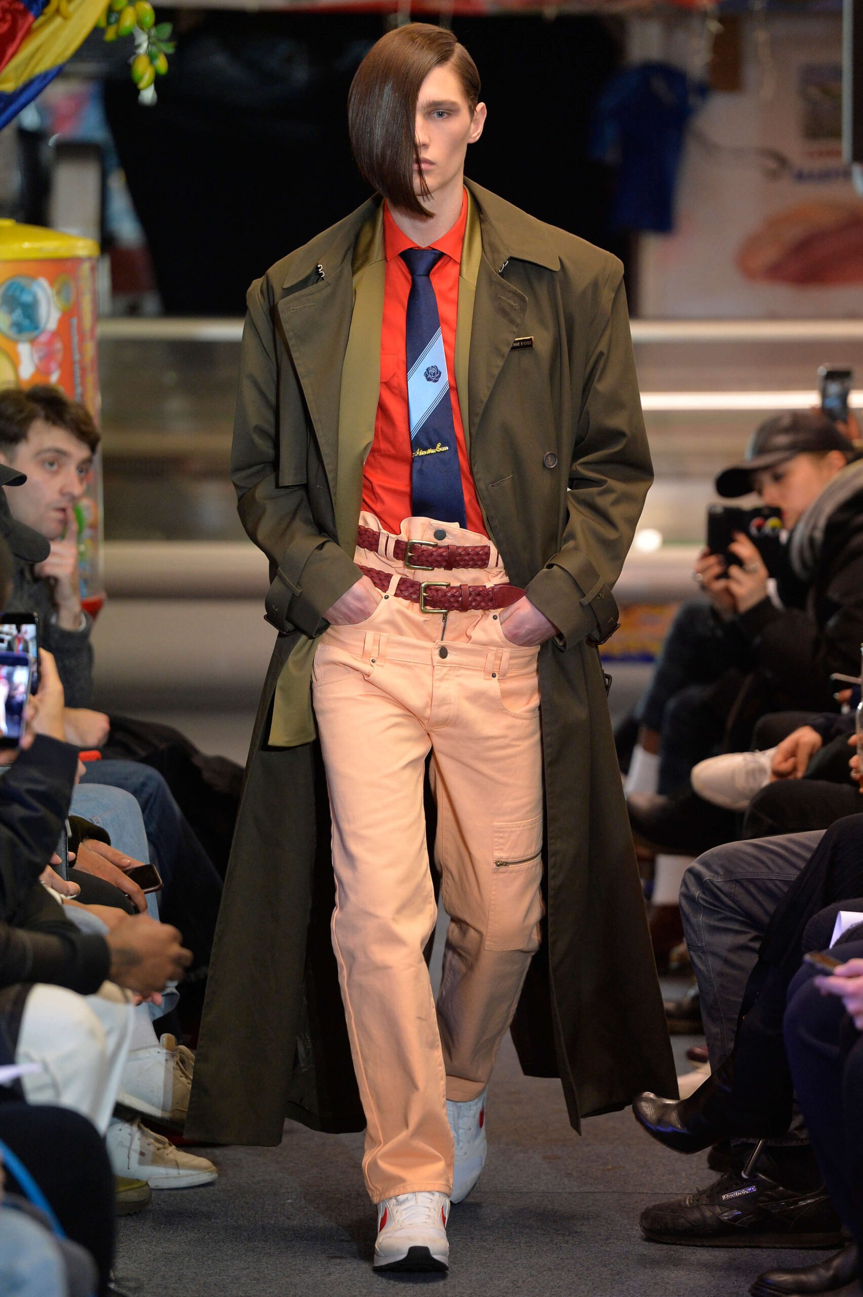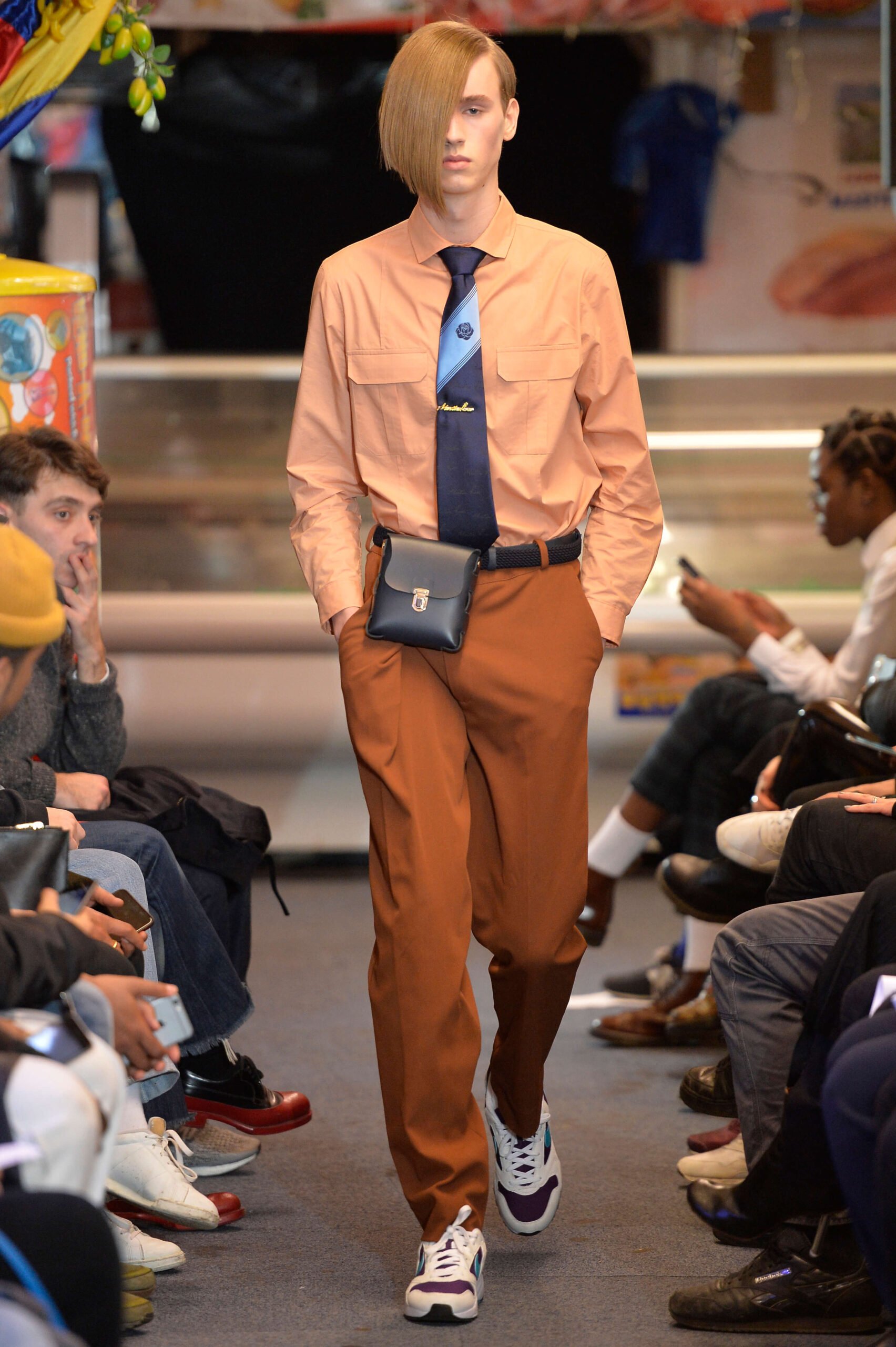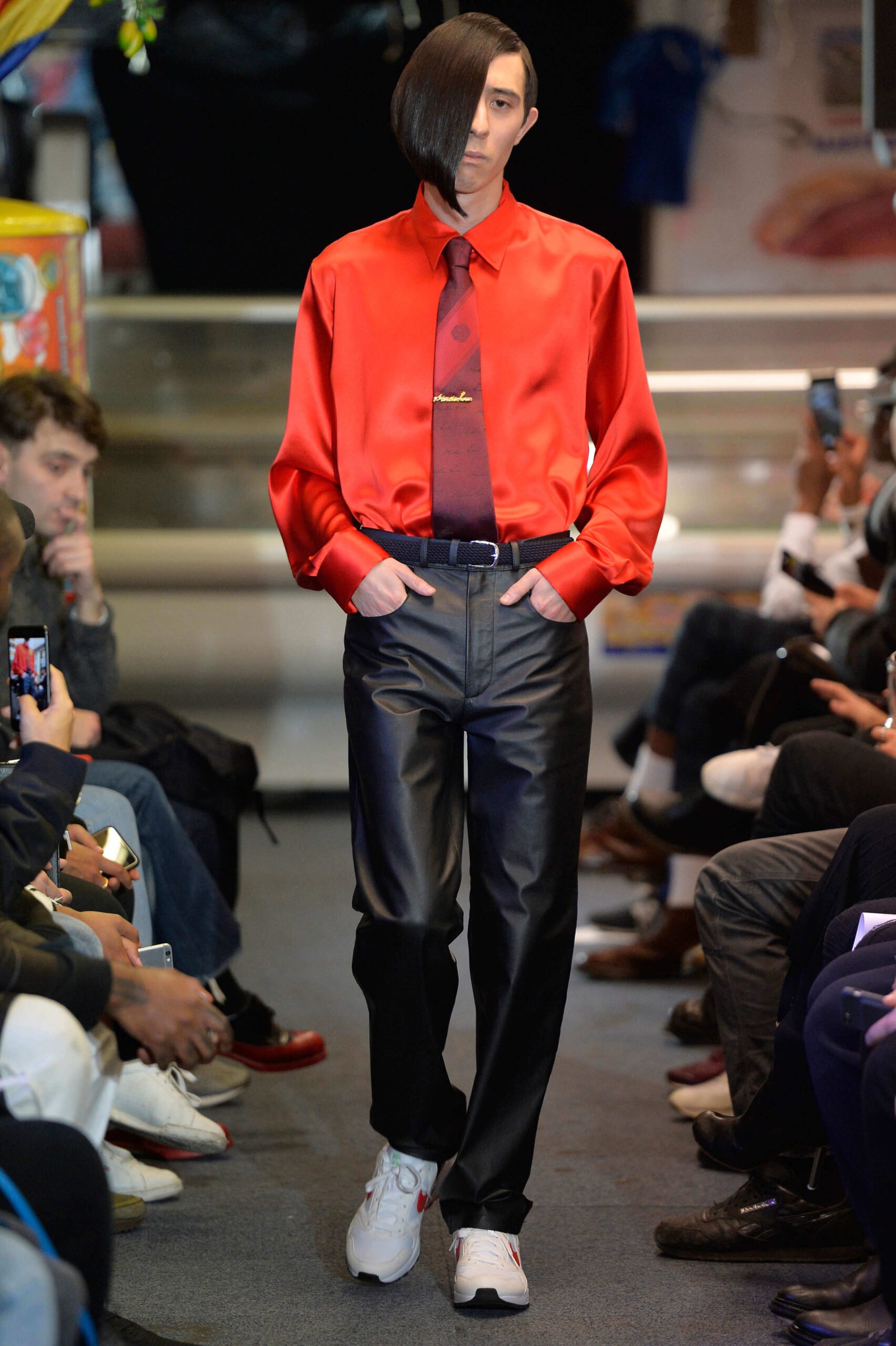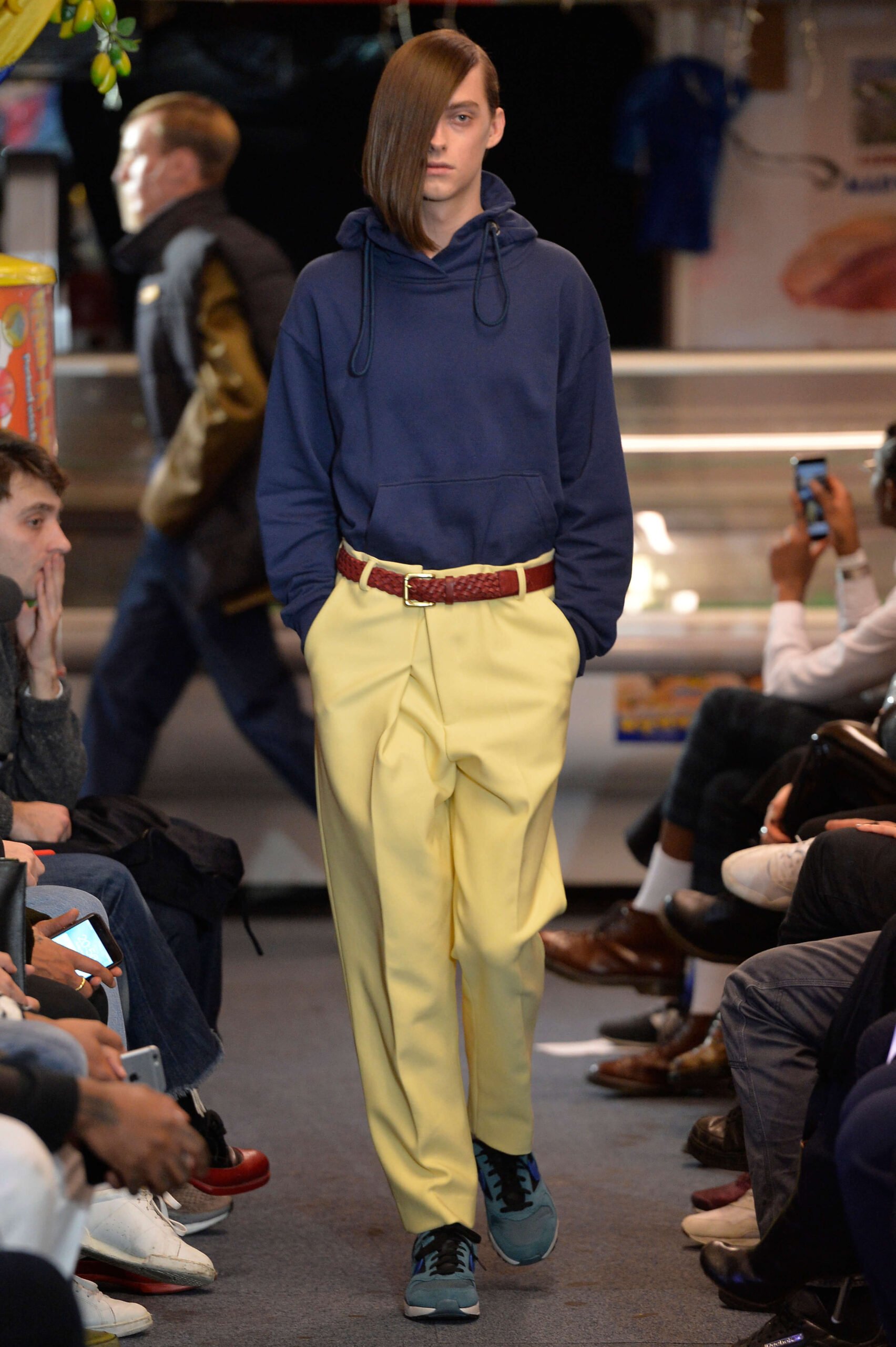 “My favourite show of London,” declares Garth. Martine Rose’s AW17 show was, for want of better words (sorry, it’s late) bloody brilliant. And it’s not often that we would drag ourselves out to N15 for a fashion show. But the amazing Seven Sisters market was the perfect backdrop (and there was food – proper food – chips, fried goods) for the collection – a sort of riff on masculine archetypes – bankers, office workers, bus drivers – the male uniform skewed in its proportions and in the details. Like the double waistbands, or those easy access zip flies that sliced right down the front of the crotch, bank teller style name badges, tie clips. It was this sort of brilliantly warped corporate uniform – XL wide-leg trousers, silky 90s-ish shirts, anoraks. Feeling a bit like obsessive fans. And rambling. Exciting fashions cause us to do so. Left Garth wandering into the night mumbling “want to wear! want to buy!” See you tomorrow…