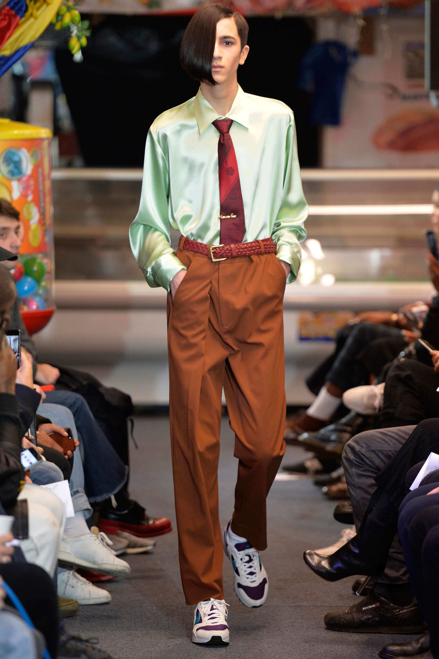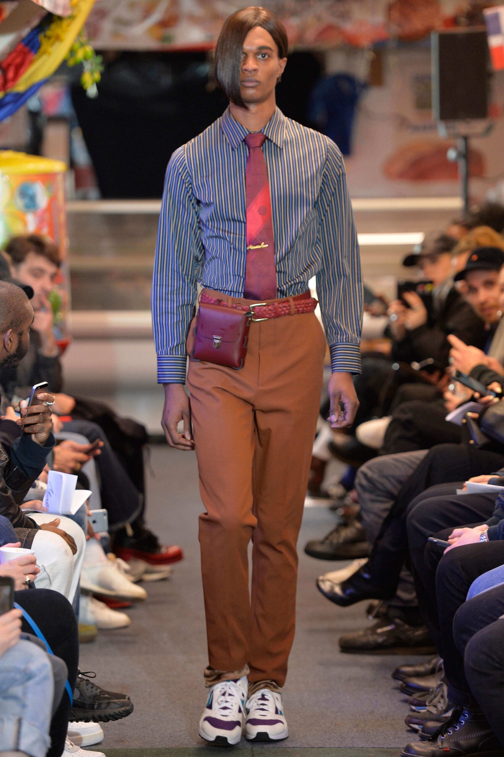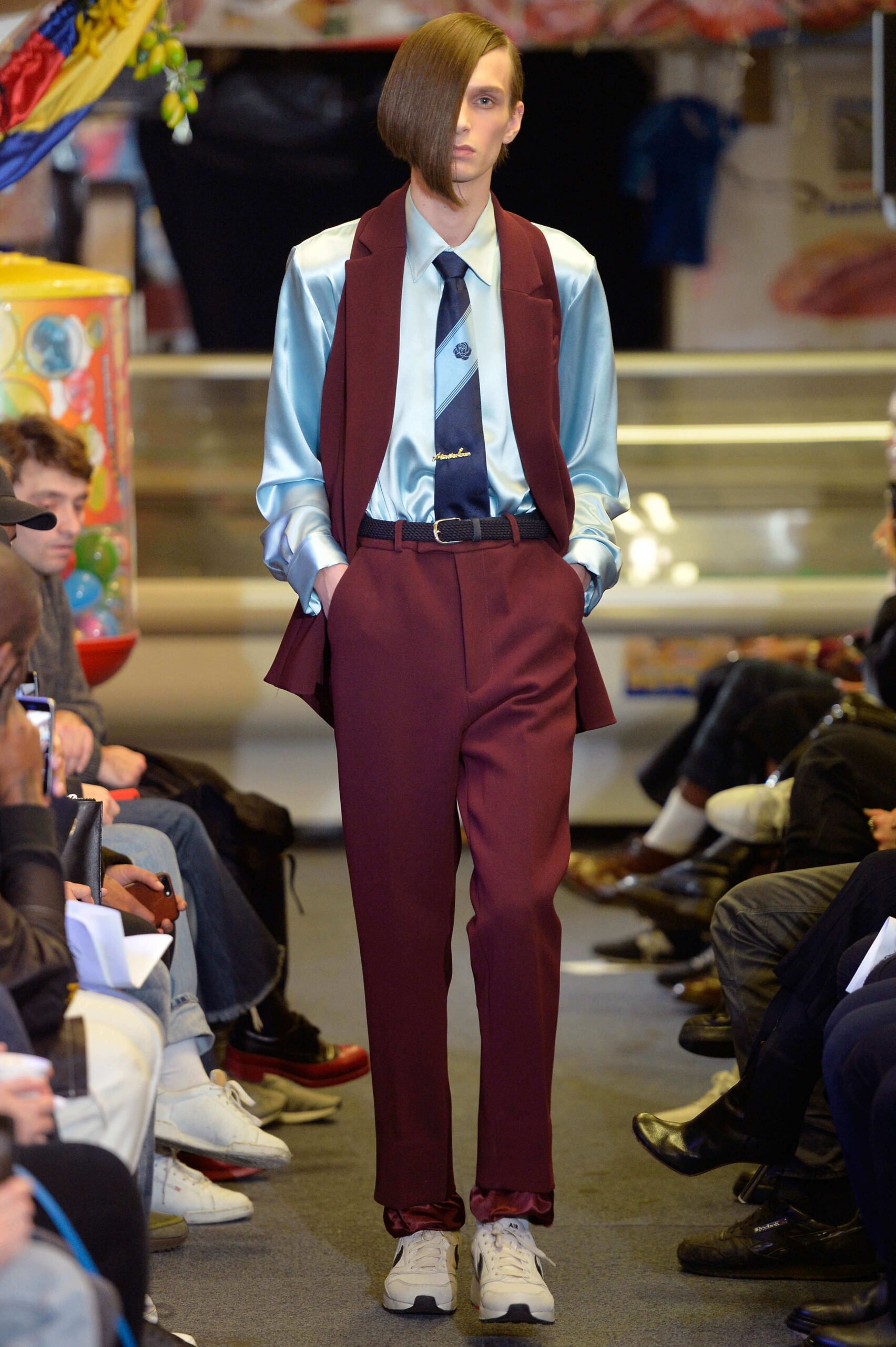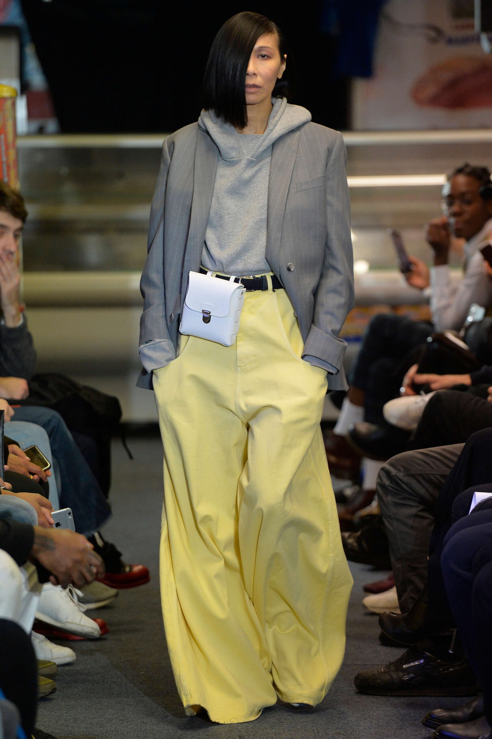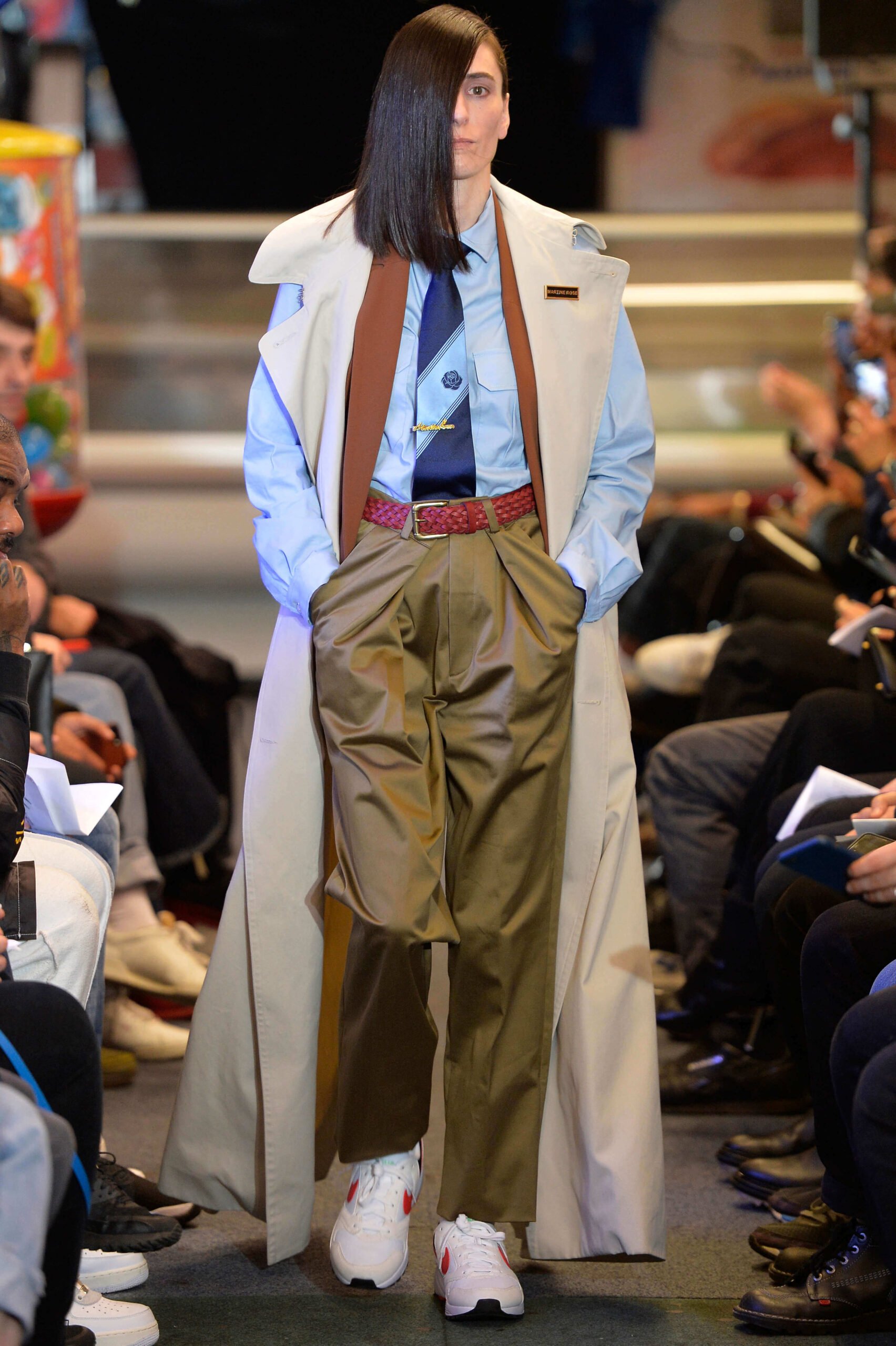 “My favourite show of London,” declares Garth. Martine Rose’s AW17 show was, for want of better words (sorry, it’s late) bloody brilliant. And it’s not often that we would drag ourselves out to N15 for a fashion show. But the amazing Seven Sisters market was the perfect backdrop (and there was food – proper food – chips, fried goods) for the collection – a sort of riff on masculine archetypes – bankers, office workers, bus drivers – the male uniform skewed in its proportions and in the details. Like the double waistbands, or those easy access zip flies that sliced right down the front of the crotch, bank teller style name badges, tie clips. It was this sort of brilliantly warped corporate uniform – XL wide-leg trousers, silky 90s-ish shirts, anoraks. Feeling a bit like obsessive fans. And rambling. Exciting fashions cause us to do so. Left Garth wandering into the night mumbling “want to wear! want to buy!” See you tomorrow…