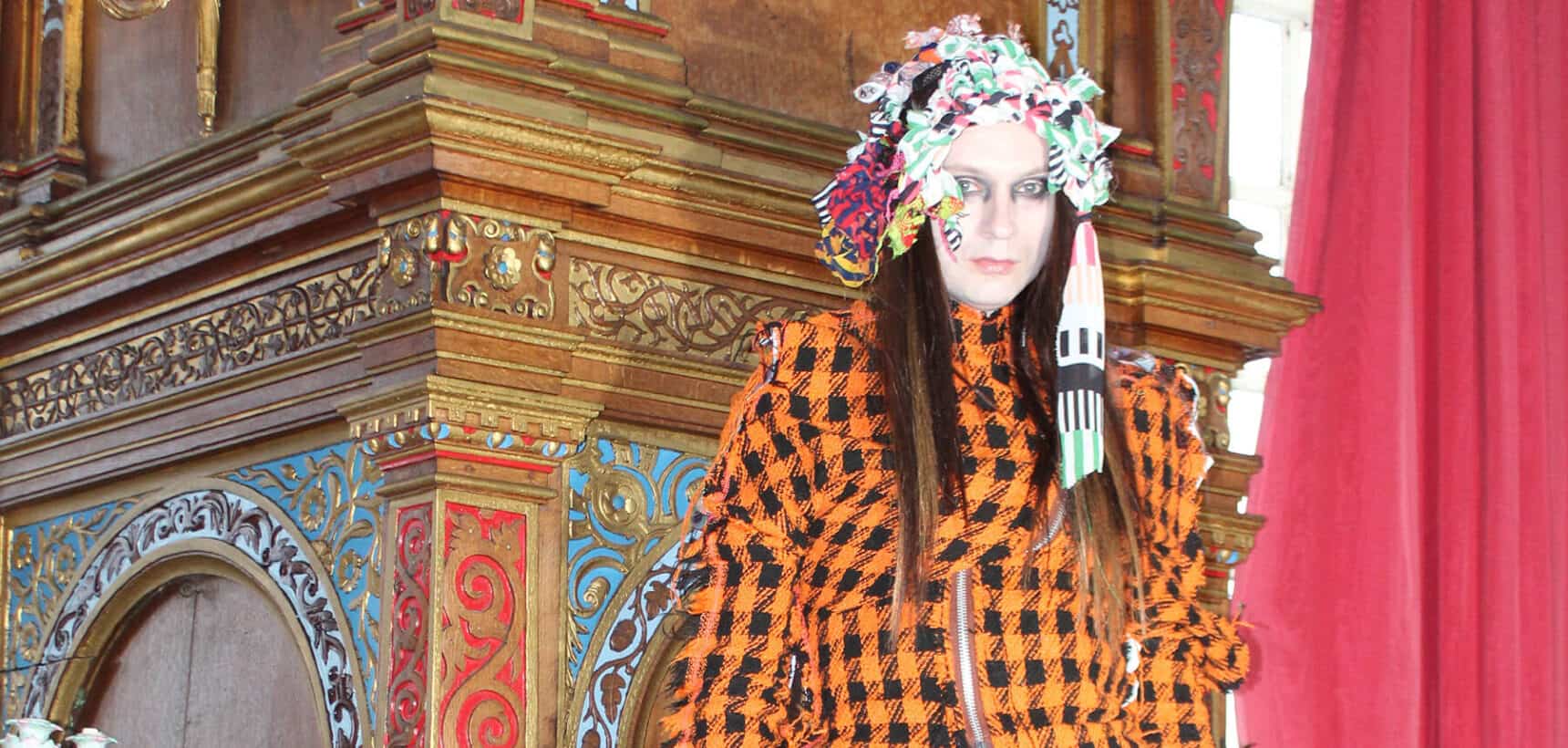 Matty Bovan presented his AW24 ready-to-wear collection via a uniquely haunting Elizabethan-inspired film titled, Hello My Old TalismanicShot in the East Riding of Yorkshire’s Burton Agnes Hall, Bovan acts as the model for his daring 26-look collection, constructed almost entirely from tweed. Summoning the ghost of Katherine Anne Griffith – who died in the hall in 1620 and is rumoured to haunt the Queen’s state bedroom – as his muse, it’s shot with a fisheye lens by a collection of individuals including Bovan himself, his mother Plum Bovan, and PR mogul Mandi Lennard, viewers are transported through an eight and half minute-long display of historical splendour. With additional creative consulting from Katie Grand, there’s no doubt it was an avant-garde affair. Distilled throughout shots of a possessed Bovan, viewers are shown an original poem referencing an array of “geranium chopped botched”, “talcum dust”, and “santel burning charred wood” and other scent filled attractions. We hear a clash of classical music, radio signals, growling and buzzing, which raise the dormant hairs on our backs. It’s like a recreation of The Blair Witch Project… but make it fashion.