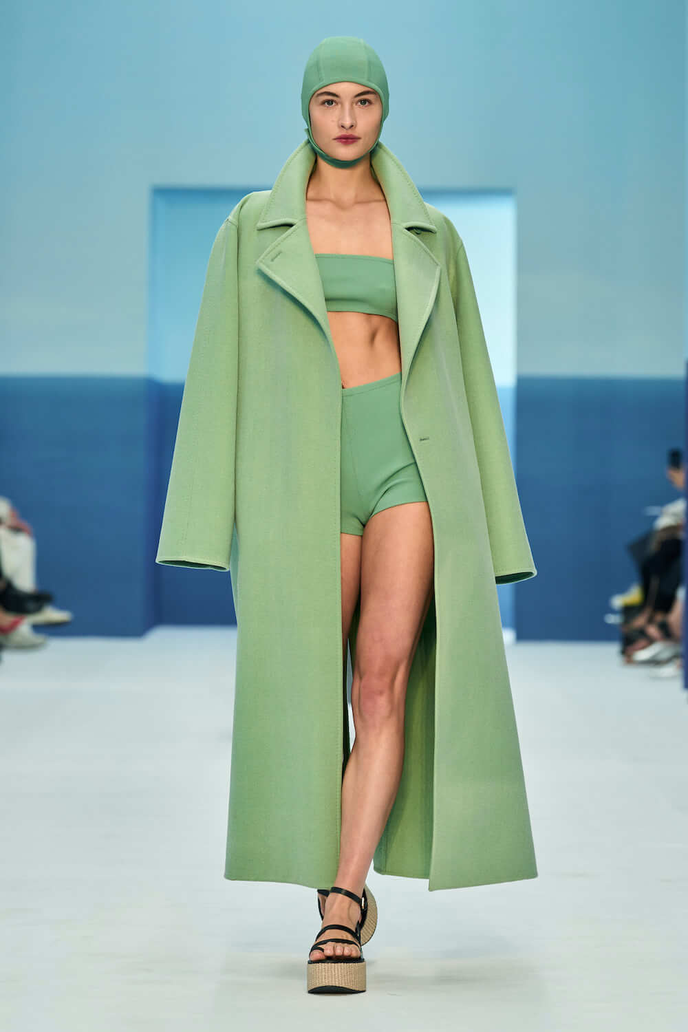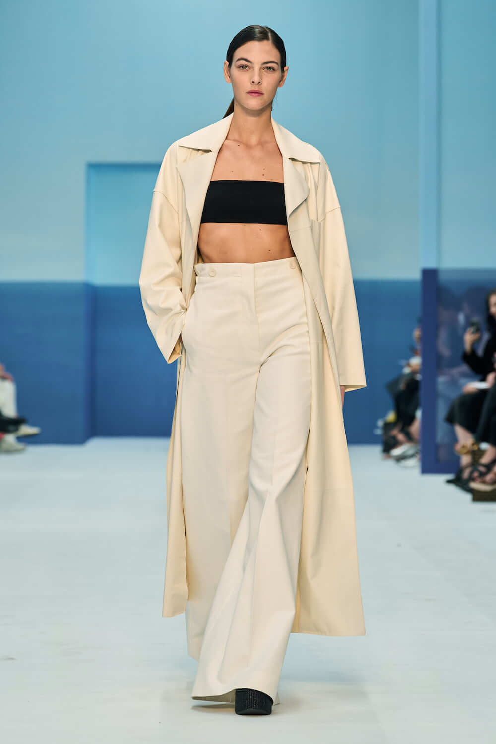 The famous Max Mara coats came out in summer weight, robe-cut versions which even doubled as beach coverups, over ’30s style swimwear and playsuits. Everything was easy on the eye, uncomplicated, inviting and relaxed. “It’s all about how your heart stirs, on that morning when you find yourself on a sunlit Mediterranean terrace” said Griffiths. Max Mara SS23: it’s a mood.