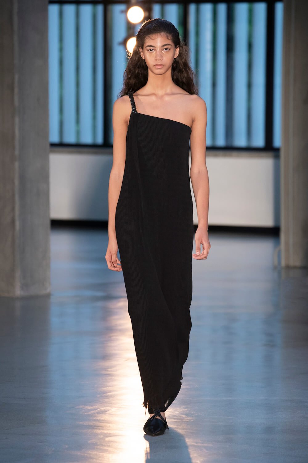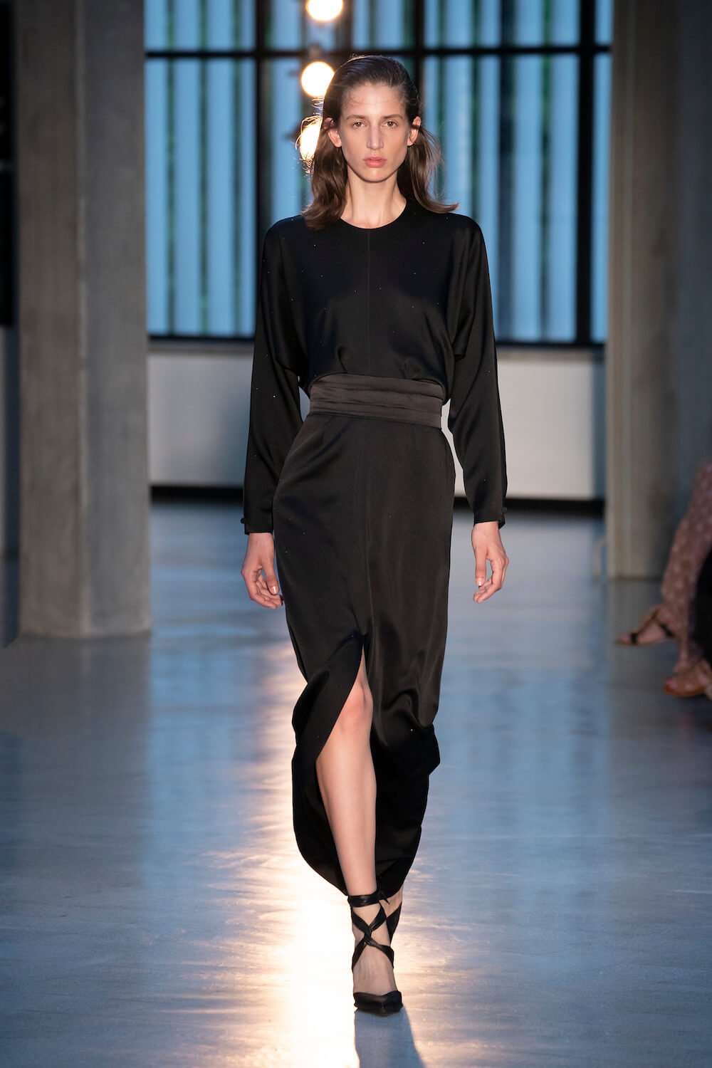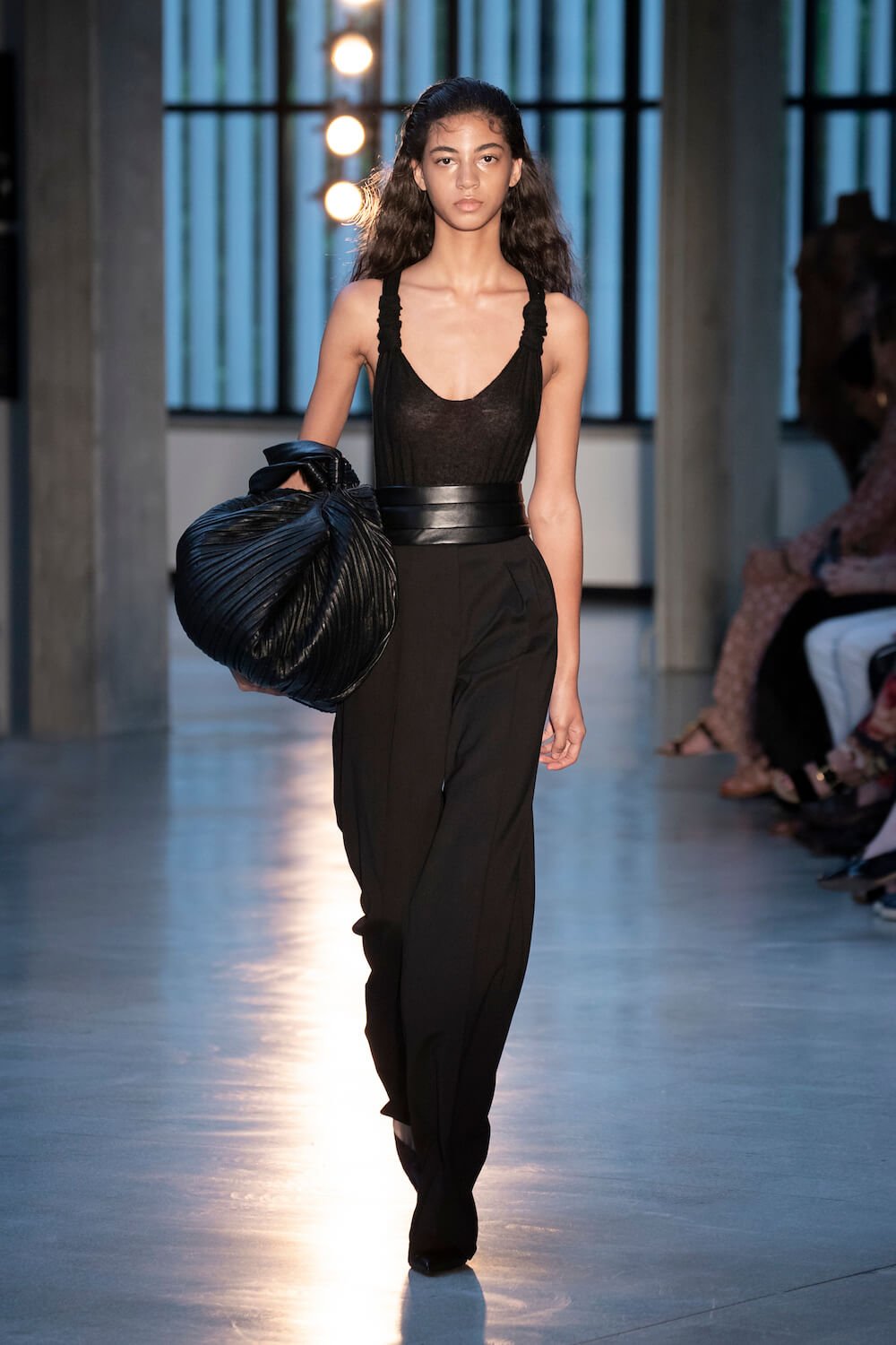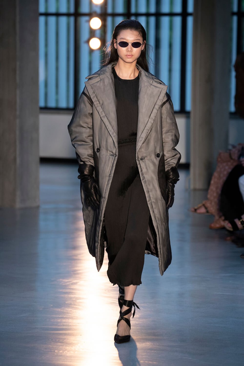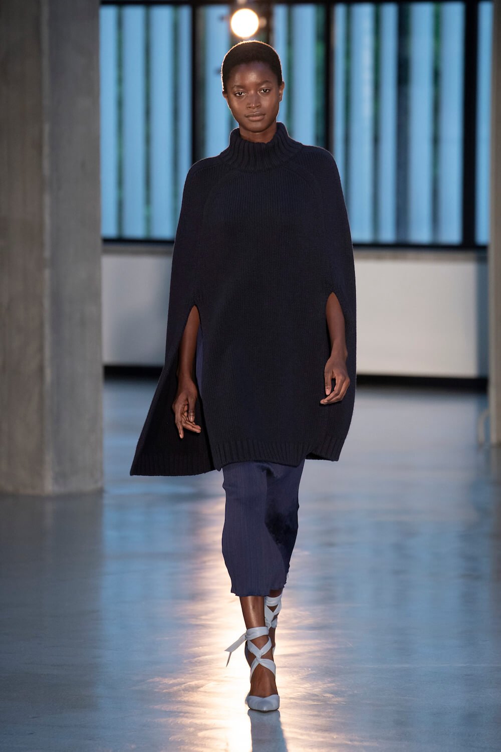 Max Mara may be a global mega brand with stores in 100 countries, but when it came to putting on its cruise show, there was no place like home. It makes sense when home is Reggio Emilia and a vast contemporary art collection housed in the former Max Mara industrial HQ. The show was held at Collezione Maramotti, which brims with major Twombly, Burri and Anselmo pieces collected by Max Mara founder Achille Maramotti. Designer Ian Griffiths took inspiration directly from the daring art housed there. The freshness of Pascali’s Coliseum relief inspired light transparencies and the chalky, neutral palette. The idea for crinkly pleats on tube skirts and evening dresses came from a rippled Manzoni sculpture and Griffiths pointed out an Anselmo sculpture, Torsione “which is probably one of the most pivotal pieces of Arte Povera, which for us was the inspiration for a shoulder strap- because we are not artists we are fashion designers.” That’s the magic of Max Mara: it combines great sophistication with something everyone can relate to. There was plenty here for every woman from the roomy coats to the slouchy trousers shown with simple vests and a silk cummerbund for evening. And it was all done with that special Italian know how. The finish was immaculate. “We do straight forward clothes that you can get on with your life in,” said Griffiths, “But they have this connection to avant garde art. This man, Achille Maramotti, who was making power dressing clothes in the 1980s was buying Bacons and and Burris. He was not a conservative thinker. He was forward thinking and radical. It puts an new perspective on the clothes.” Griffiths felt emotional backstage – he’s worked for the company for thirty years but this show gave him an opportunity to show a new side of Max Mara and Italian fashion. “People are saying negative things about Italy but look at Italian culture, Italian charm, Italian food and Italian fashion, which is all about making people Bella. It’s about making people look their best. I wanted to celebrate that.” That he did.