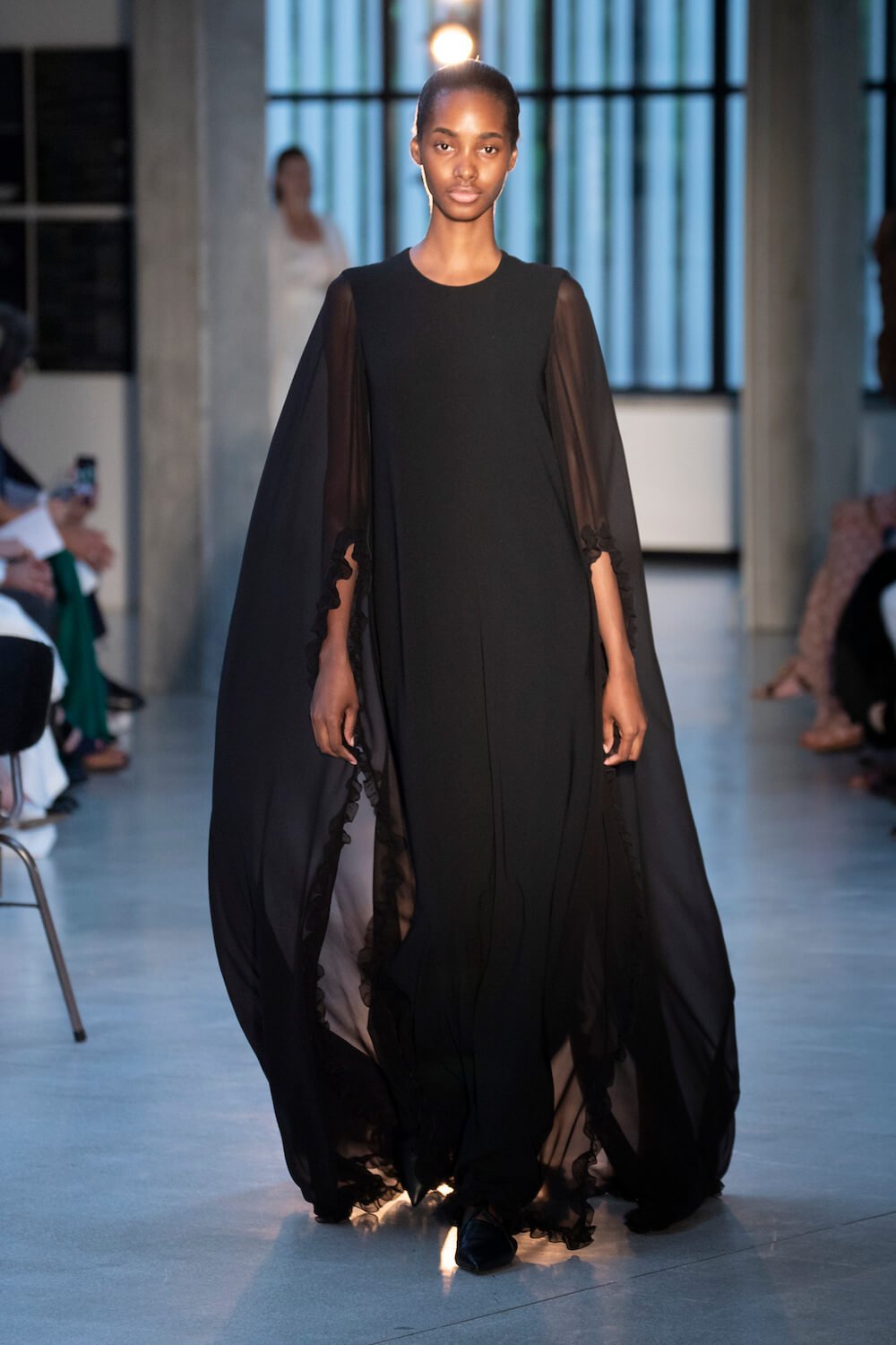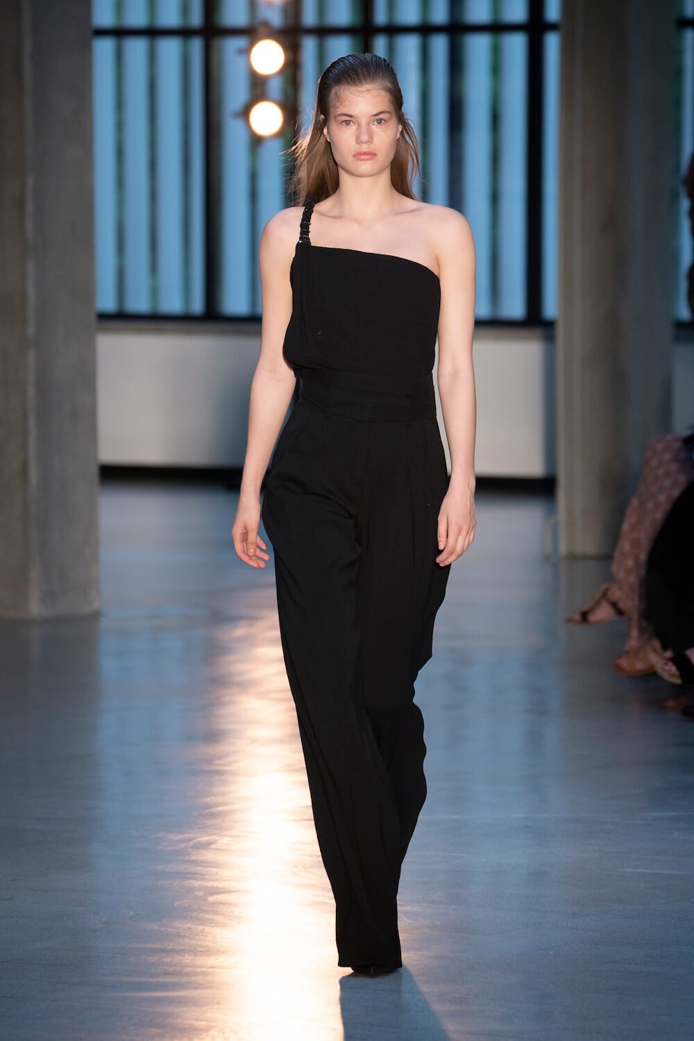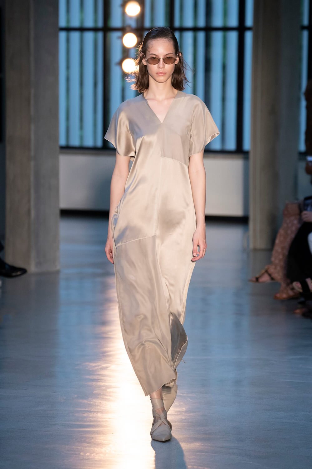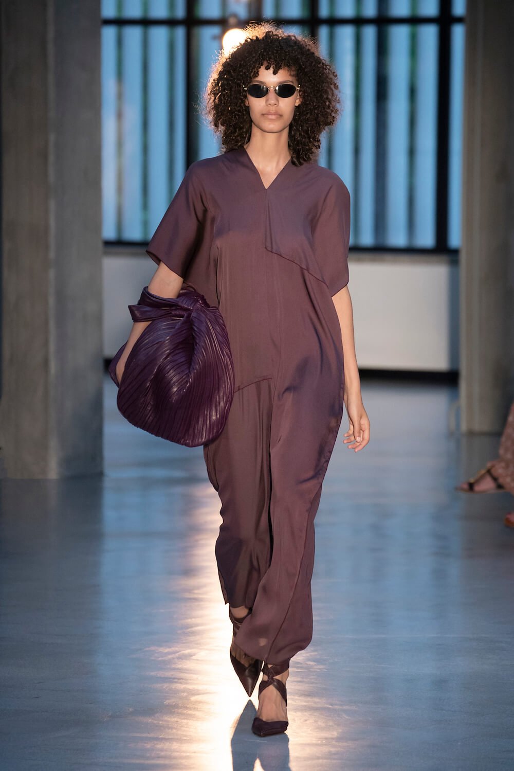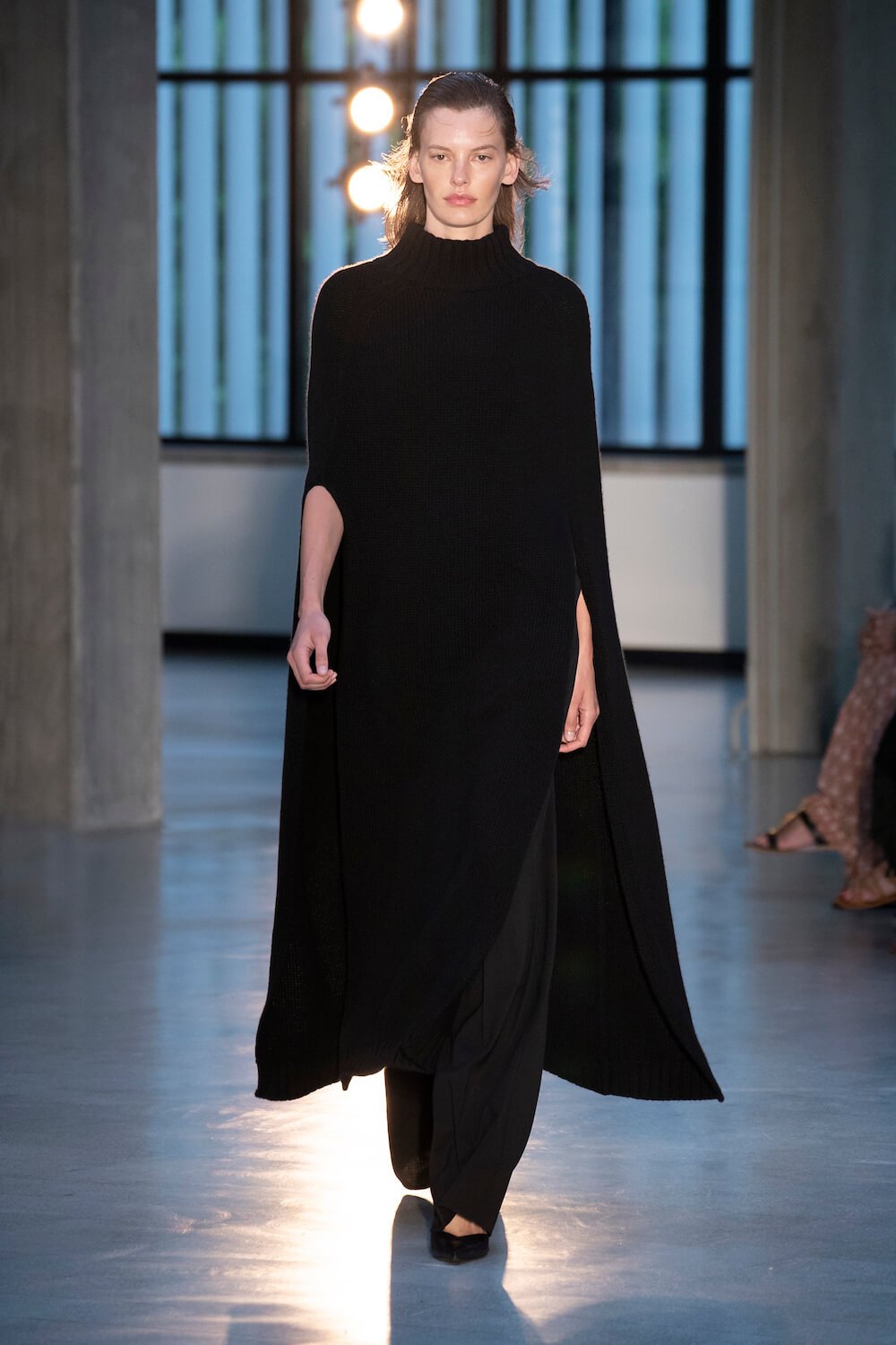 Max Mara may be a global mega brand with stores in 100 countries, but when it came to putting on its cruise show, there was no place like home. It makes sense when home is Reggio Emilia and a vast contemporary art collection housed in the former Max Mara industrial HQ. The show was held at Collezione Maramotti, which brims with major Twombly, Burri and Anselmo pieces collected by Max Mara founder Achille Maramotti. Designer Ian Griffiths took inspiration directly from the daring art housed there. The freshness of Pascali’s Coliseum relief inspired light transparencies and the chalky, neutral palette. The idea for crinkly pleats on tube skirts and evening dresses came from a rippled Manzoni sculpture and Griffiths pointed out an Anselmo sculpture, Torsione “which is probably one of the most pivotal pieces of Arte Povera, which for us was the inspiration for a shoulder strap- because we are not artists we are fashion designers.” That’s the magic of Max Mara: it combines great sophistication with something everyone can relate to. There was plenty here for every woman from the roomy coats to the slouchy trousers shown with simple vests and a silk cummerbund for evening. And it was all done with that special Italian know how. The finish was immaculate. “We do straight forward clothes that you can get on with your life in,” said Griffiths, “But they have this connection to avant garde art. This man, Achille Maramotti, who was making power dressing clothes in the 1980s was buying Bacons and and Burris. He was not a conservative thinker. He was forward thinking and radical. It puts an new perspective on the clothes.” Griffiths felt emotional backstage – he’s worked for the company for thirty years but this show gave him an opportunity to show a new side of Max Mara and Italian fashion. “People are saying negative things about Italy but look at Italian culture, Italian charm, Italian food and Italian fashion, which is all about making people Bella. It’s about making people look their best. I wanted to celebrate that.” That he did.