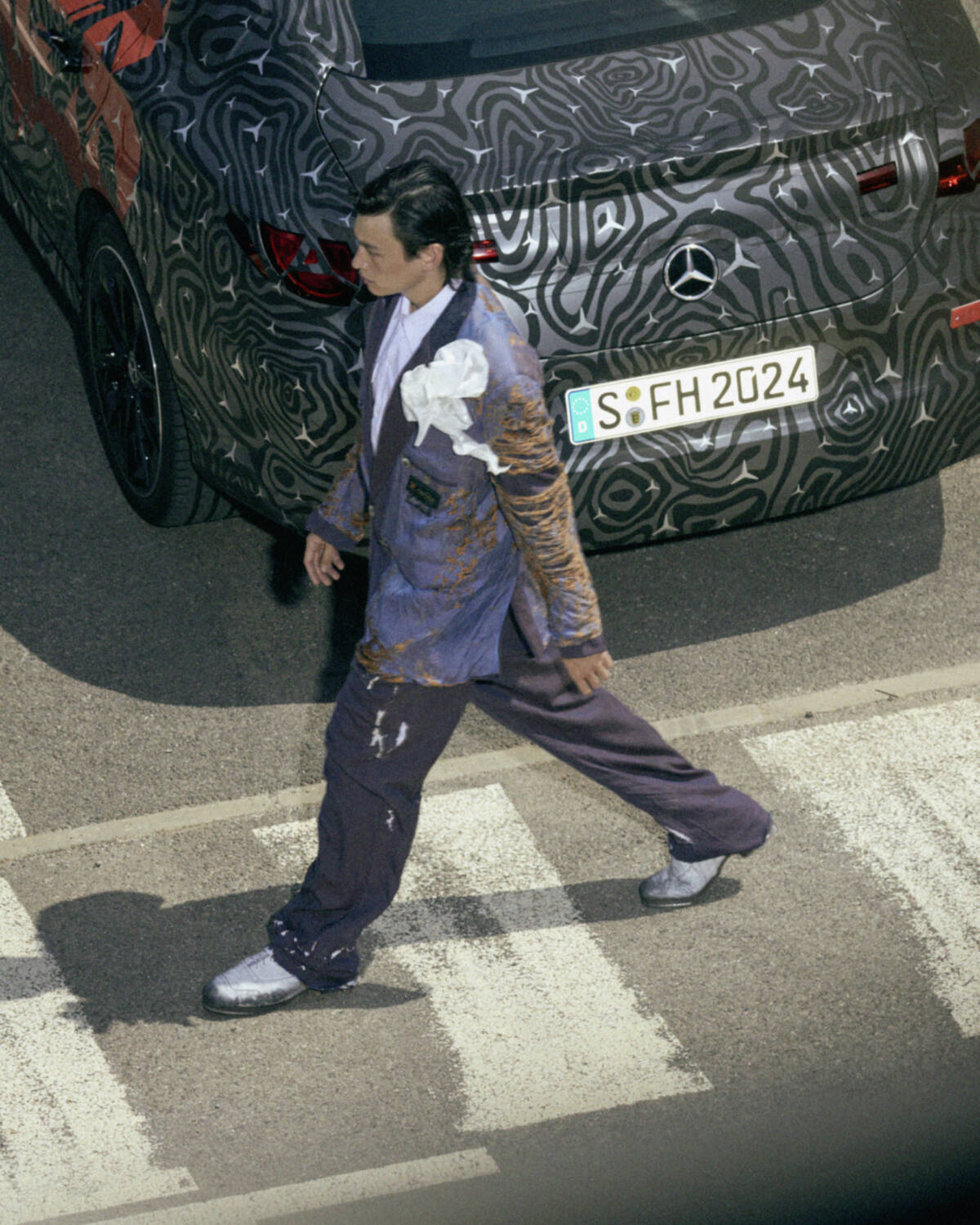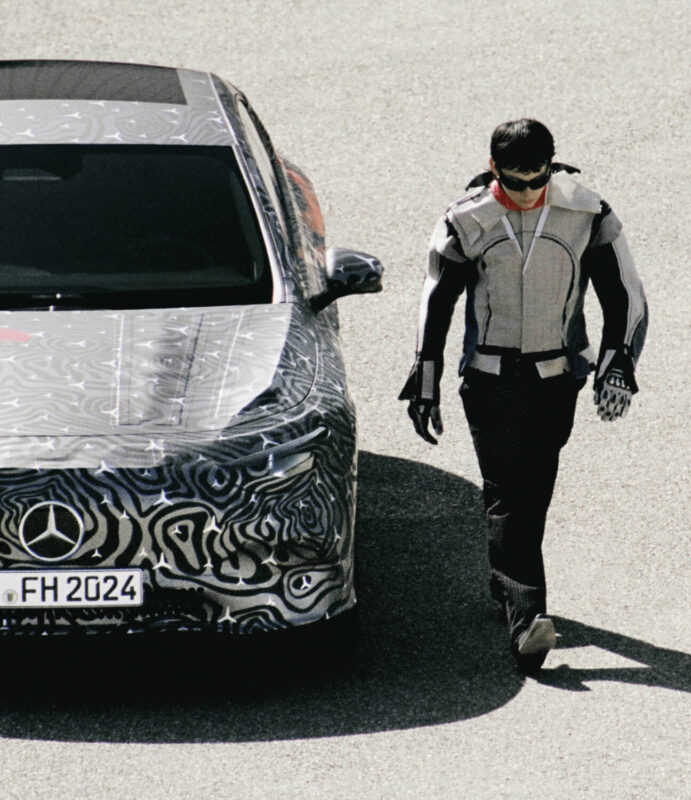 Continuing a twelve-year relationship, Mercedes-Benz is racing to endorse a new generation of creative leaders at the 39th International Festival of Fashion, Photography and Accessories, Hyeres with the Mercedes-Benz Sustainability Prize. Launched in 2021, the prize forms part of the brand’s mission to drive responsible luxury by supporting innovation outside of the automotive industry. On Sunday, the Festival d’Hyeres Fashion Jury – complete with industry hard-hitters like the artistic director of Courrèges, Nicolas di Felice – announced Logan Monroe Goff as its winner, applauding his motorsport-inspired collection for its commitment to responsible design practices. Goff is set to receive a grant from Mercedes-Benz and is featured alongside the finalists in a fashion-forward campaign for the CLA car model’s new Erlkönig finish.