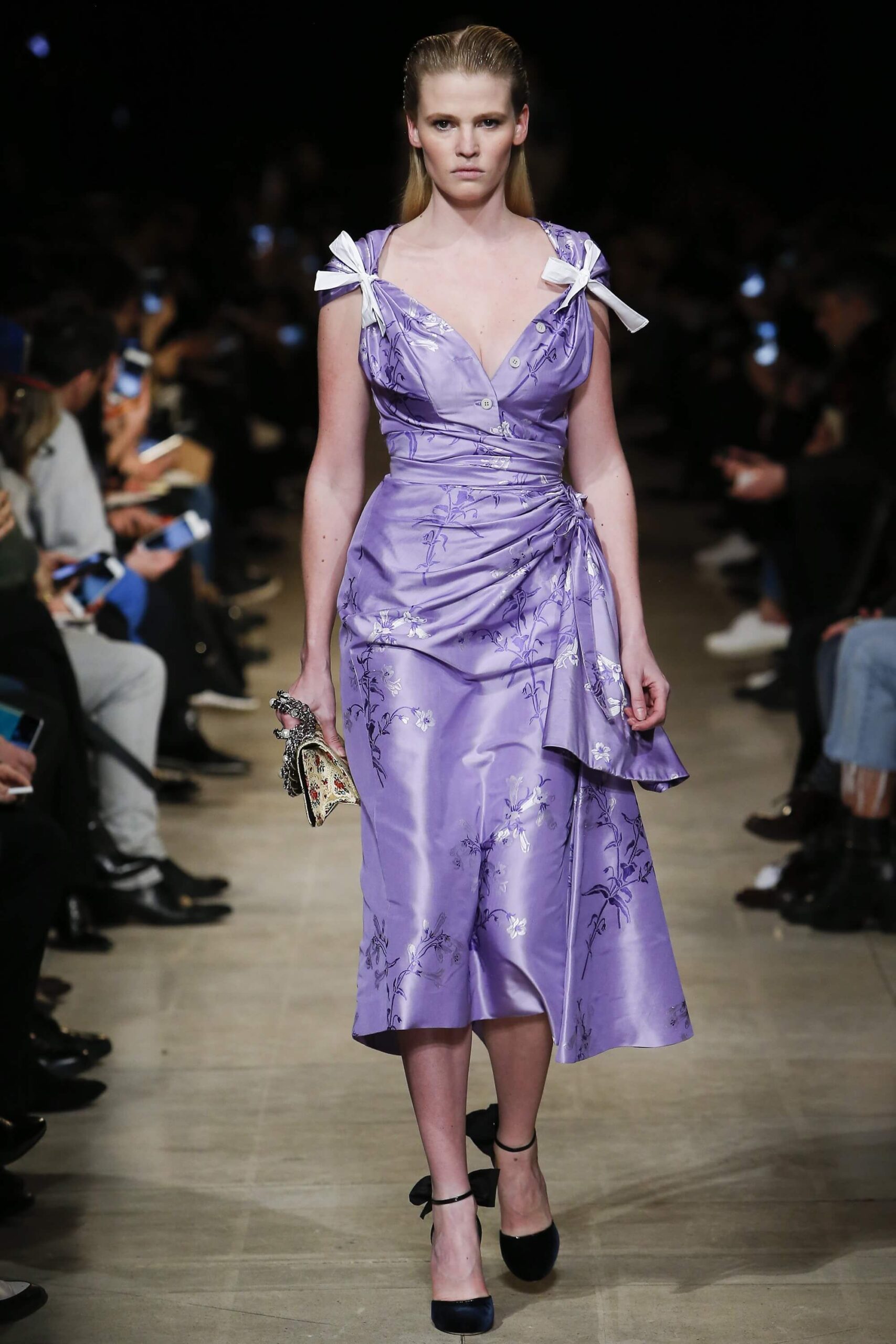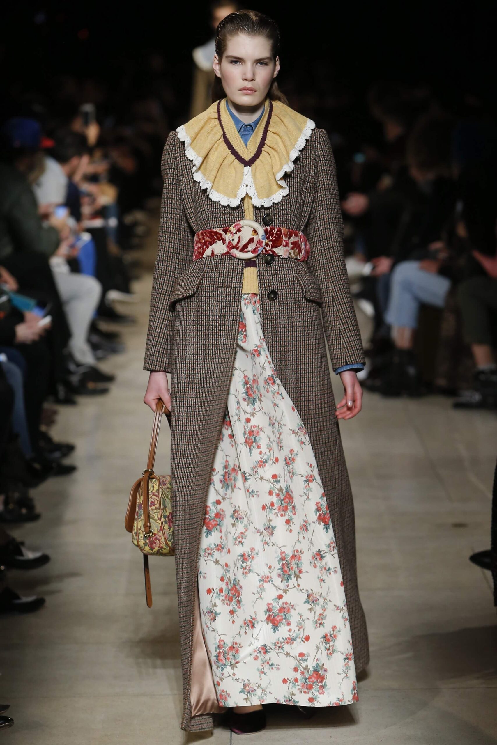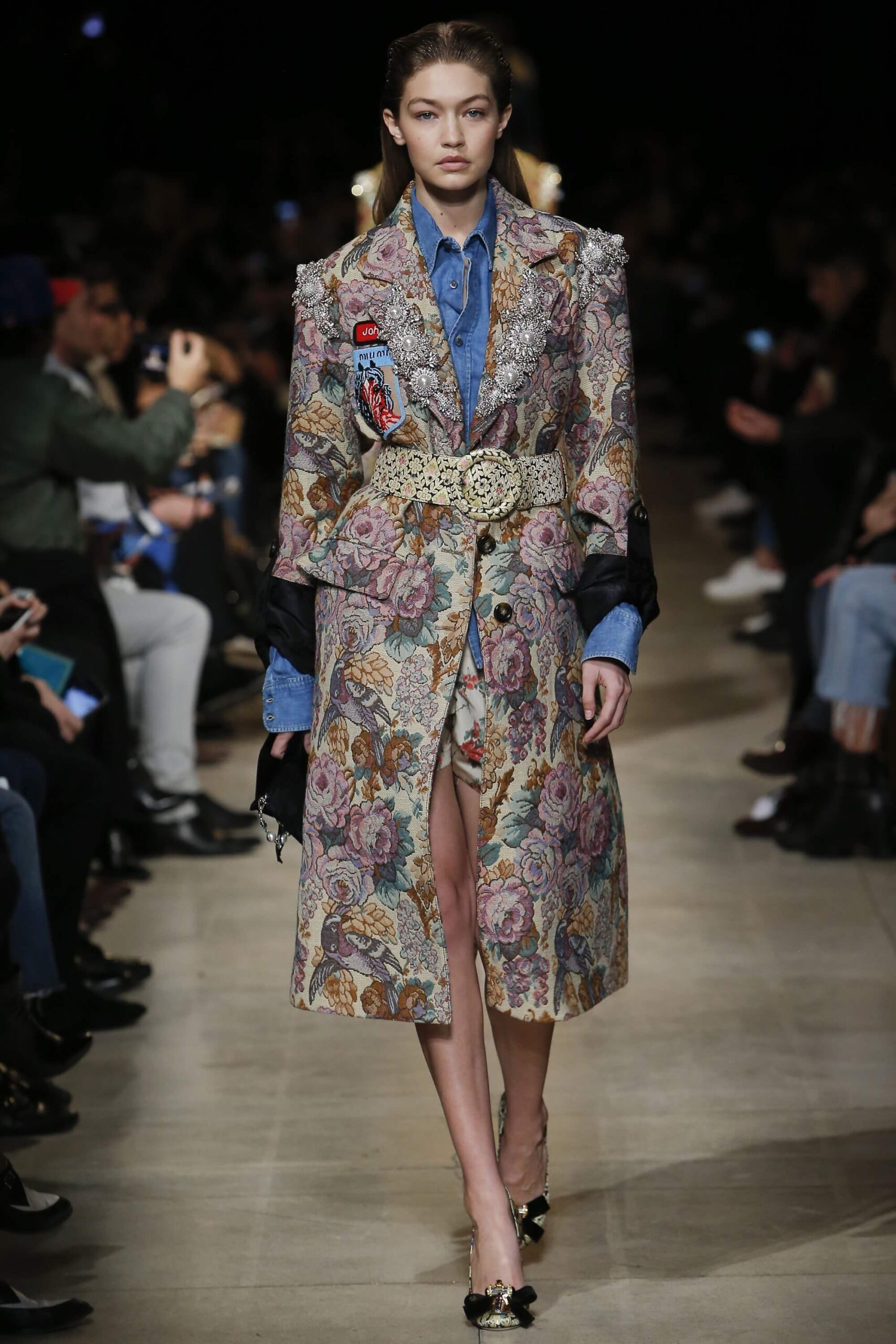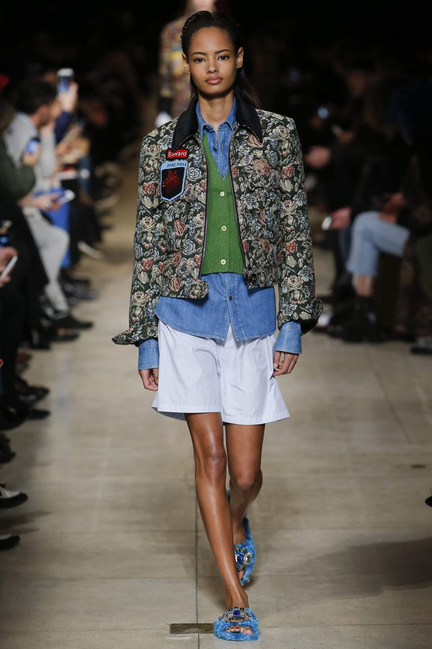 Marvin Gaye’s “Heard it through the grapevine” belted out loud, a wry closing comment on a season fuelled with rumours of designer moves and shakes. Miuccia Prada though isn’t going anywhere – she’ll continue to sit at the very pinnacle of the fashion industry, as this show served to prove. Where else – and what other designer – segues from denim through brocades to ruches and ruffled pumped-up taffeta prom dresses without batting an eyelid, nor coming off her high, pointy-pointy, spindly-heeled stilettos? Miuccia Prada was in party mode for this Miu Miu show, her audience strewn on banquettes, hoping and wishing and praying that one day they would get a chance to wear frocks like this. And how’s that for a closer to this Paris season, Tenners?