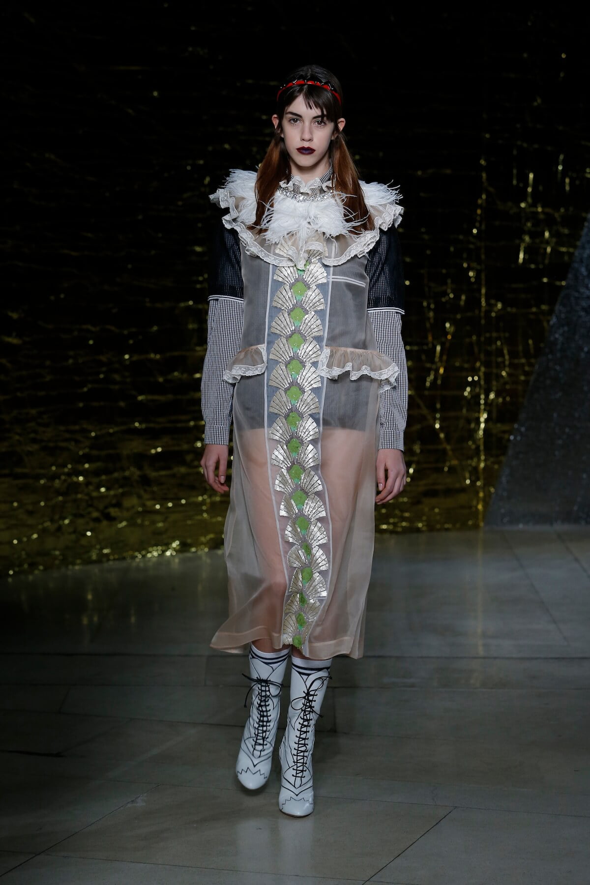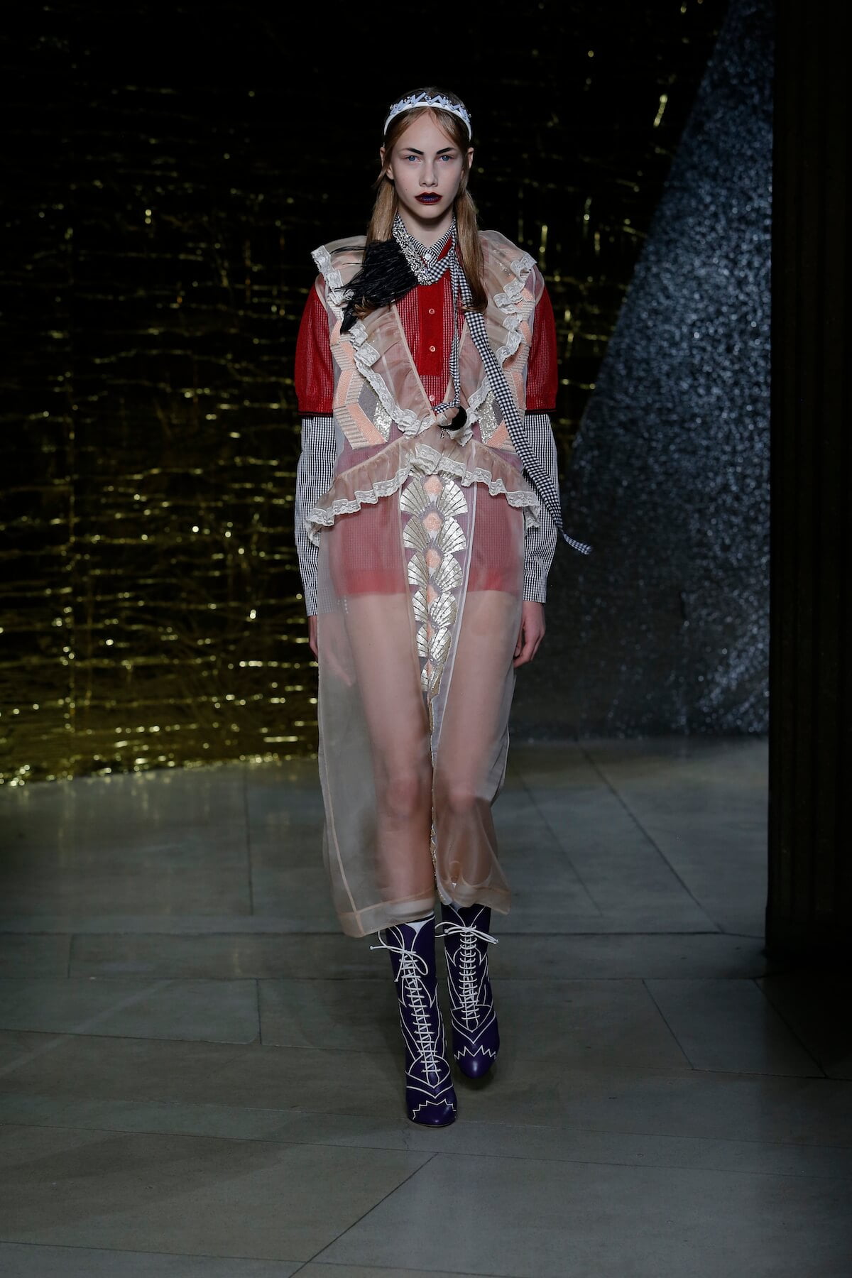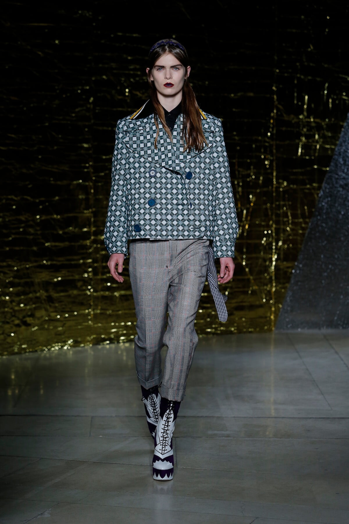 Miuccia Prada traditionally closes Paris with a party, via her Miu Miu show. It’s not a literal party – although they do serve drinks after, if you’re not legging it out to the 4.13 Eurostar and can stay a while. But rather there’s a party atmosphere to the clothes, thrown together, between Prada’s Milan show and this, in two weeks flat (Mrs Prada has stated that as fact). This time the party went a bit Abigail’s Party, with filmy negligees layered over strict tailoring, bottomed by stomping seventies-style snakeskin boots, a thunderbolt of crystal across the sturdy heel. This was Miu Miu in mix-up mode – it reminded me a bit of a cocktail, as in the actual drink not the party, throwing together disparate elements – a bit of tweed, some tailoring, jacquard coats in a sludgy Formica graphic – to make an intoxicating new whole. That’s always the deal with Mrs Prada, whatever the label attached to it. And as the closing statement on a stellar spring/summer season in Paris, it still managed to quench a thirst. An insatiable thirst for great clothes, whipped together into outfits that became great fashion. Get ready to see these ideas popping up all over come autumn/winter 2016. Which isn’t even that far away…