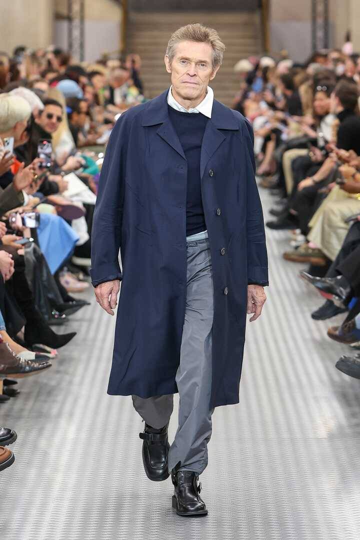 The clothing combinations were deliberately odd, projecting the kind of artlessness that only the very young who live in the moment can possess. Other uniforms crept in with workwear trousers and waitress dresses. Some pieces – a high shine leather coat worn by Hilary Swank and Seventies-style prints (referencing a 2005 collection) served as reminders of what Mrs Prada does best. Willem Dafoe closed the show reprising his starring role in a 2012 Prada menswear show packed full of cinema greats. If it ain’t broke, don’t fix it.