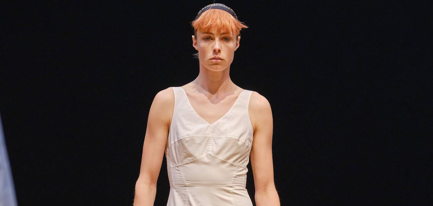 A visit to the National Theatre archives inspired Molly Goddard who was fascinated by the interior of the garments she found there. Her inside-out aesthetic saw her place frothy petticoats on the outside of dresses and made the internal grosgrain ribbon of a corseted garment, an exterior feature. “We turned things inside out and discovered grosgrain strapping, internal zips, boning, and binding. These elements play a key part in the collection,” said the designer.