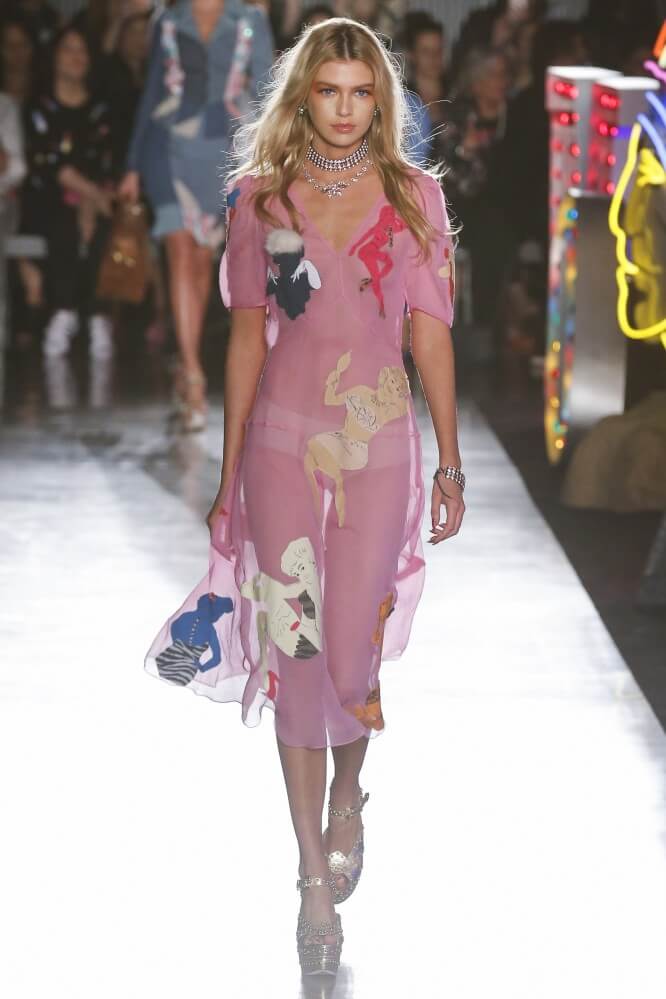 To borrow from the Madonna songbook: everybody, everybody, everybody, everybody, everybody, everybody, everybody comes to Hollywood. Which may have been a little exaggeration, but last night it came pretty close as the fashion masses headed westwards for Moschino’s Resort 2018 show. Jeremy Scott is an American designer at an Italian house, but here he it was all about the former – inspired by the state of California, namely, the experience of driving between LA and Vegas. I did the drive myself once. Which sounds quite fabulous but I was fifteen, with my family and in a rental mini van. It was sweaty.