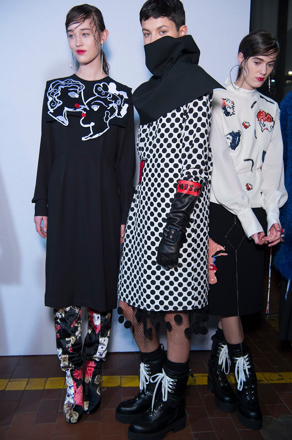 Sequins and spots, checks and pleats, ruffles, bows, Antonio Lopez and the crazy, multi-patterned ceramics of the artist Betty Woodman. All were joyously, chaotically meshed together in Massimo Giorgetti’s MSGM collection. He called it “Interlude,” which made us think of popcorn and big gulps of Sprite, and we sort of wished we could get a Snickers halfway through. But really he meant that it was about taking a moment to calmly reflect. “No big inspiration, no theme,” Giorgetti said. “Just clothes.” There were lots of clothes, and they were all gorgeous, gloriously mixed up into utterly individual and idiosyncratic outfits in multiple patterns and colours, textures and prints. They included a hefty chunk of MSGM’s past – the immediately recognisable rose chintz, polka-dots, stripe and checks of seasons past. Regretted missing out on them then? You can get them now!