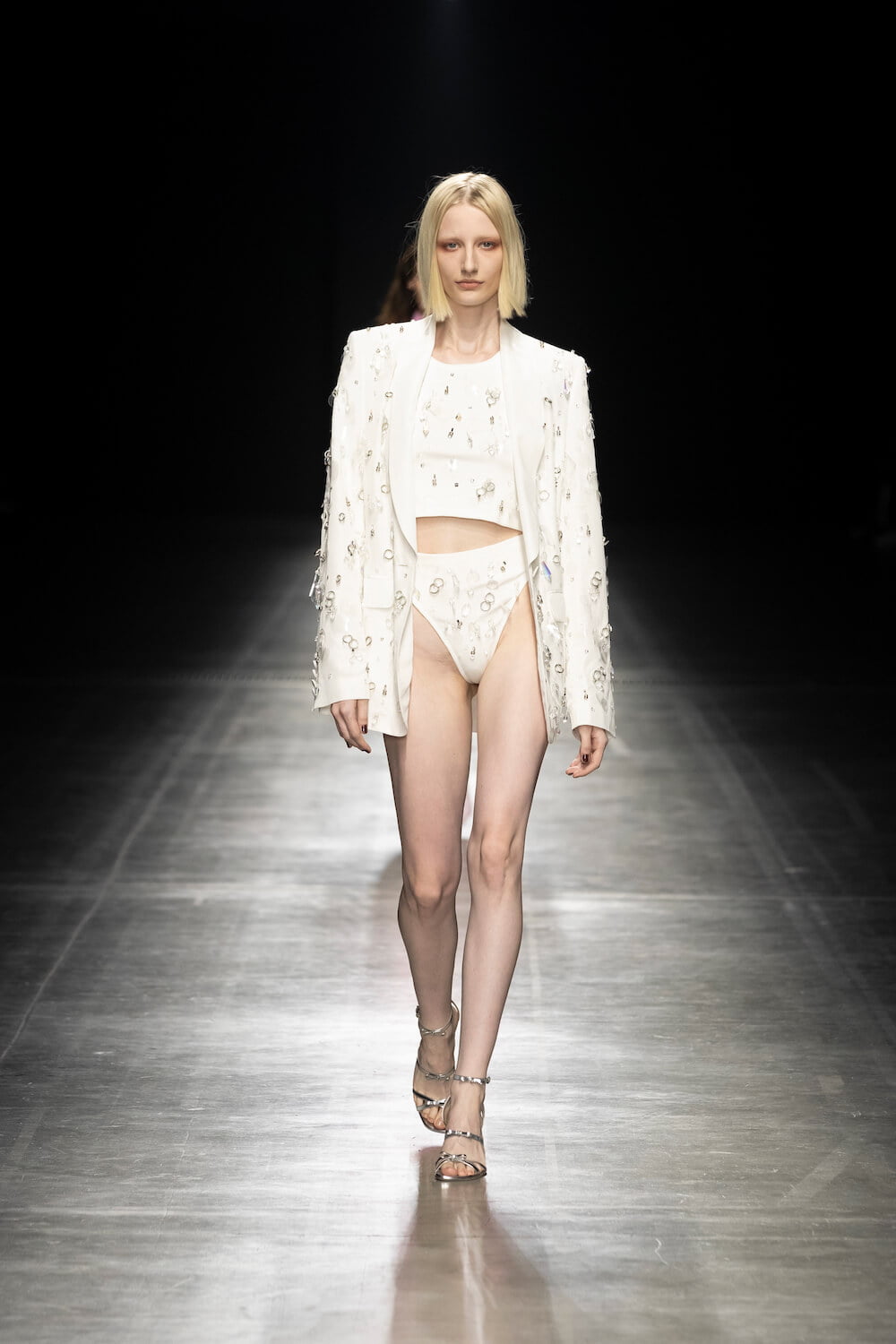 Massimo Giorgetti explored the tradition of marriage for MSGM’s SS23 edit. But he did so with an iconoclastic spirit, as if a bunch of ballerinas had crashed a polyamorous wedding and turned it into some kind of femme fatale strip club before Giorgetti arrived and stole it all away for his show. As the happily-ever-after procession began, it told the tale of this imaginary wedding.