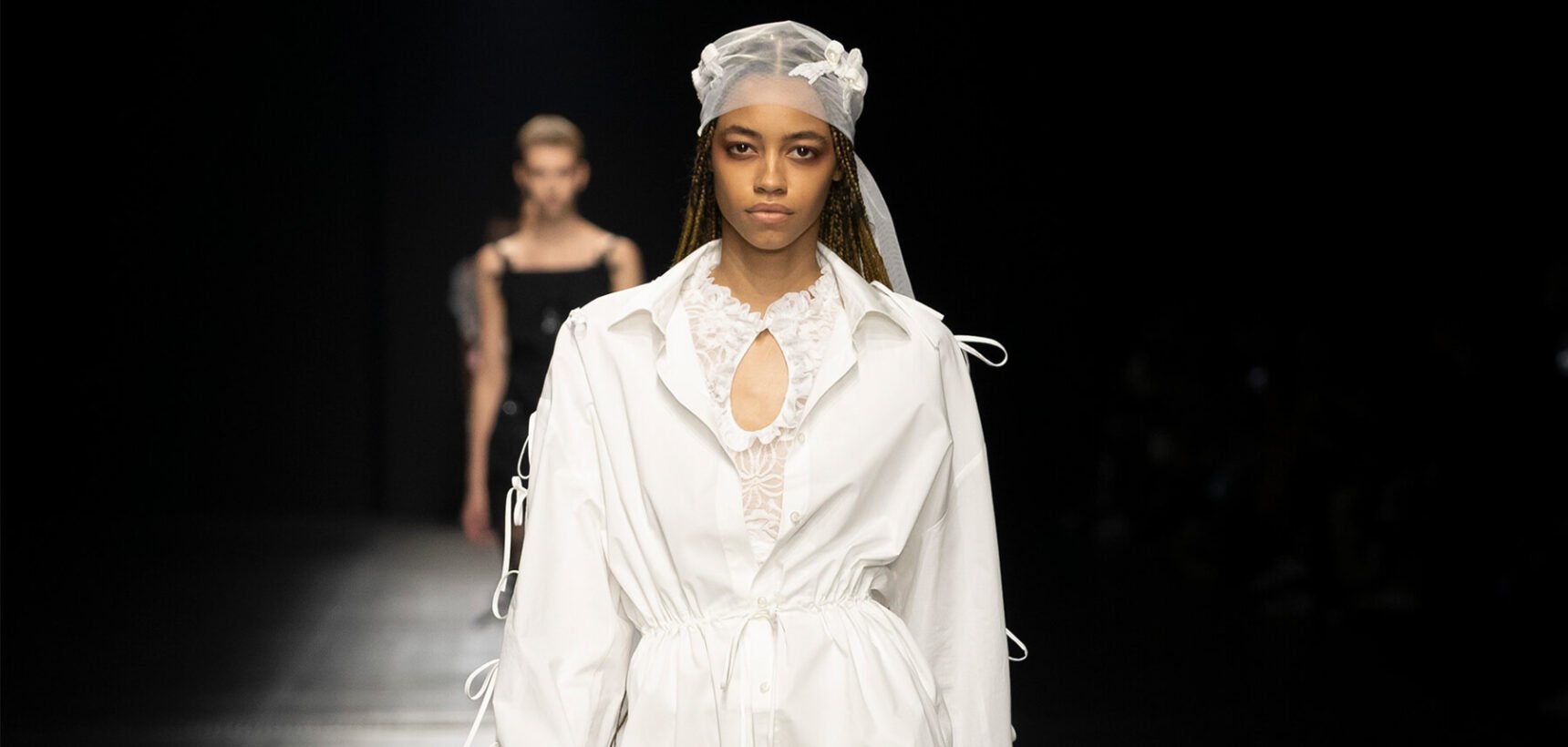 Donning delicate veils, leg-of-mutton-sleeves and babydolls over distressed jeans and petticoats, a bunch of unambiguous brides descended upon Milan like the protagonists of Truffaut’s “La Mariée Était en Noir” (The Bride Wore Black). It resembled a cinematic fairytale situated somewhere on the dividing line between supple sweetness and total irreverence.