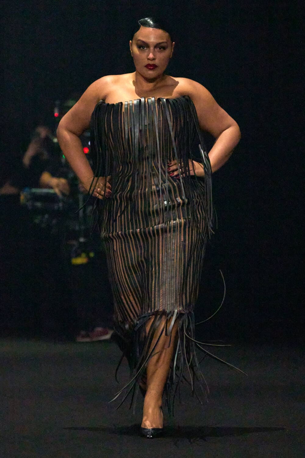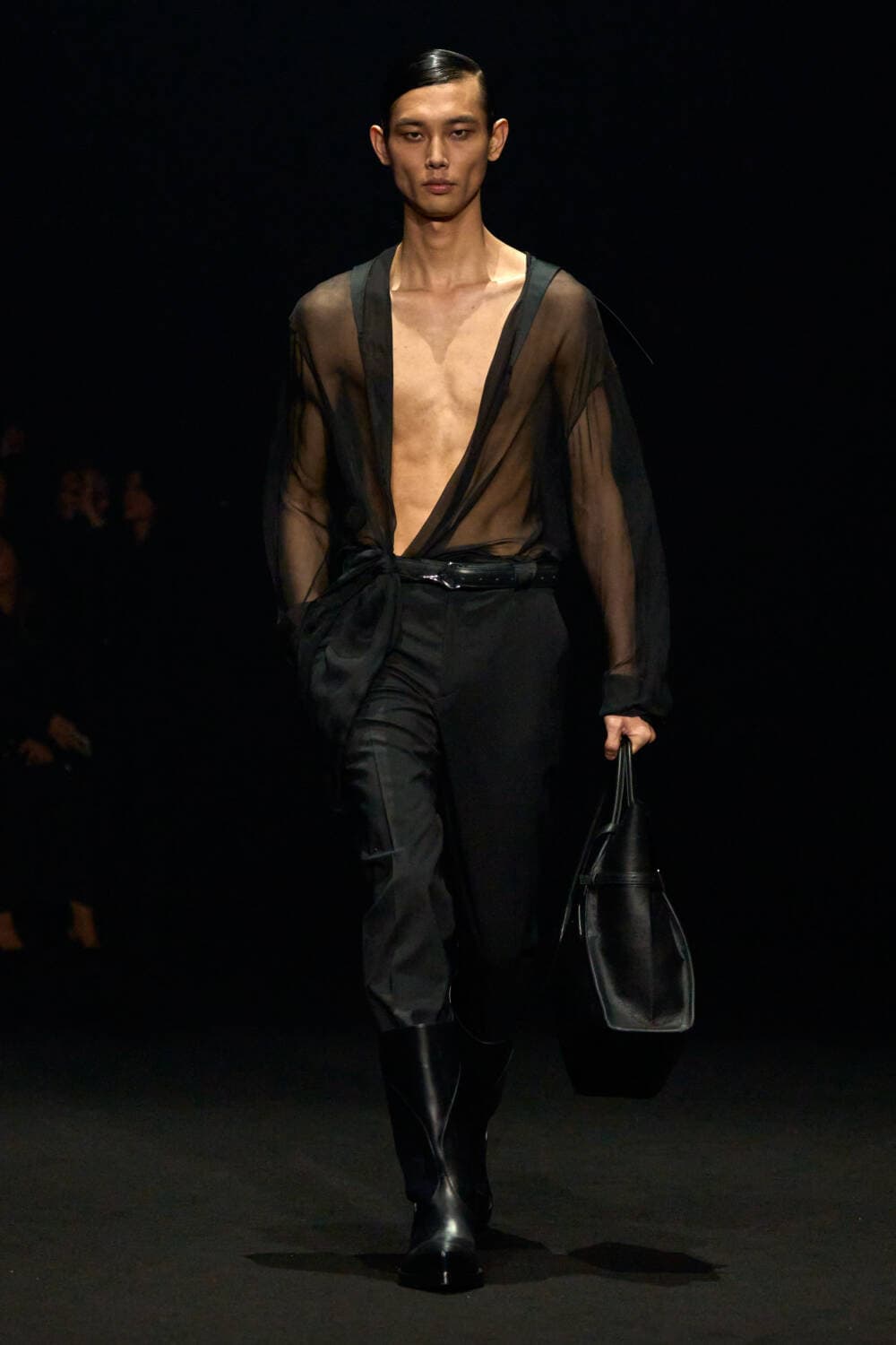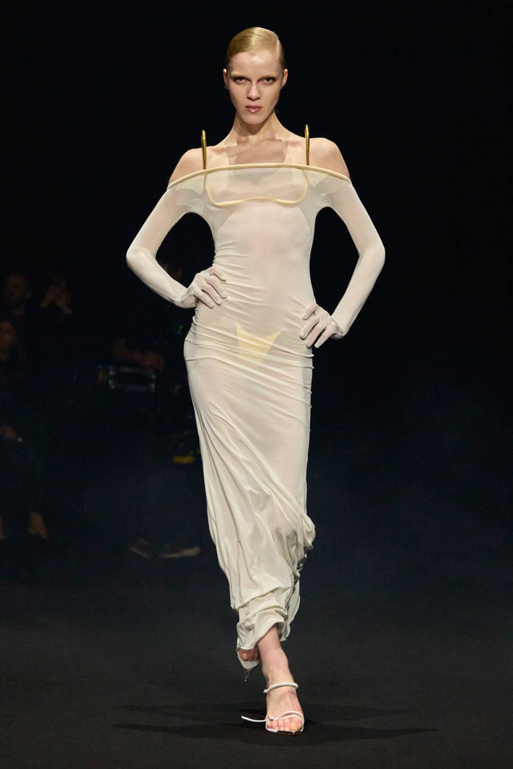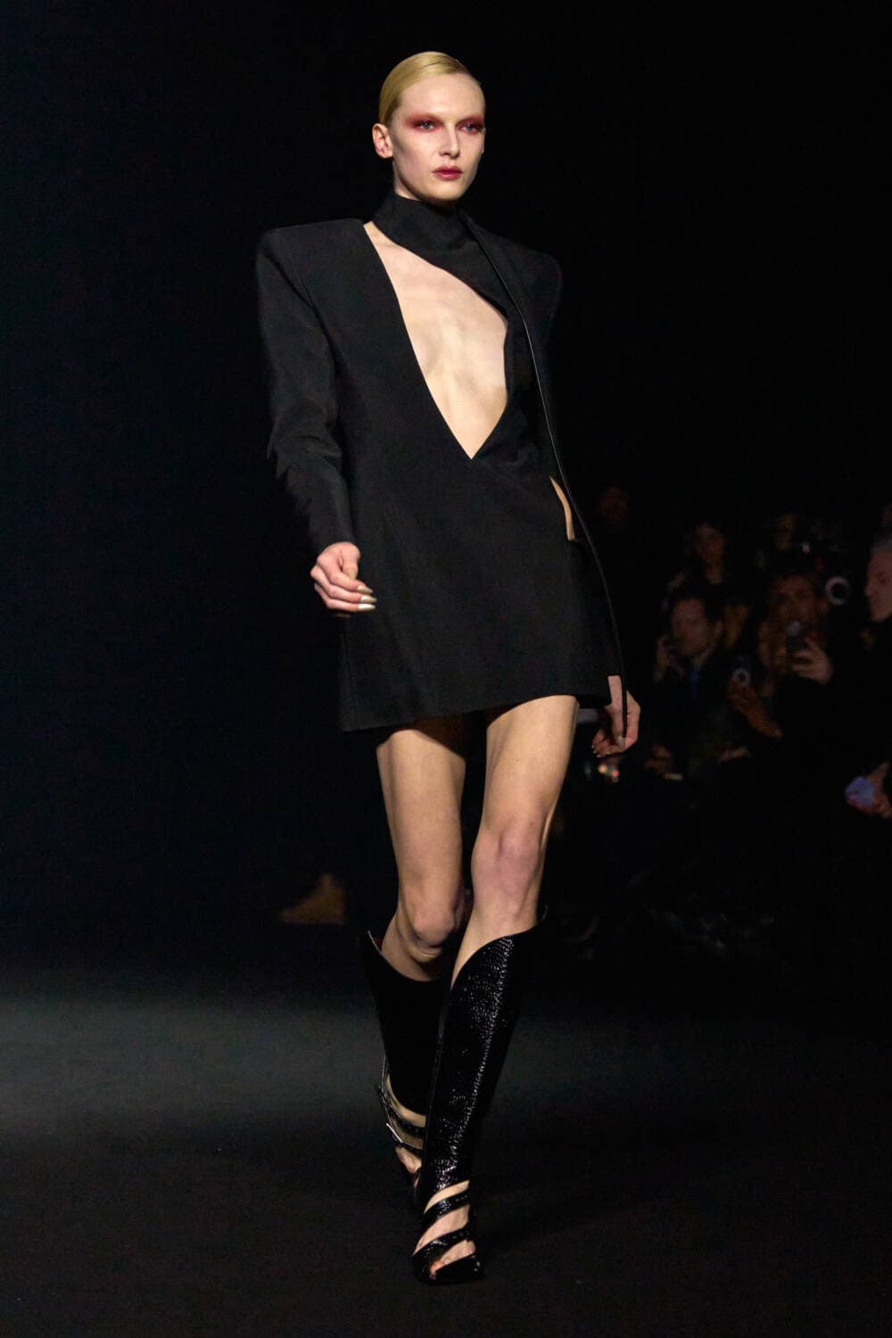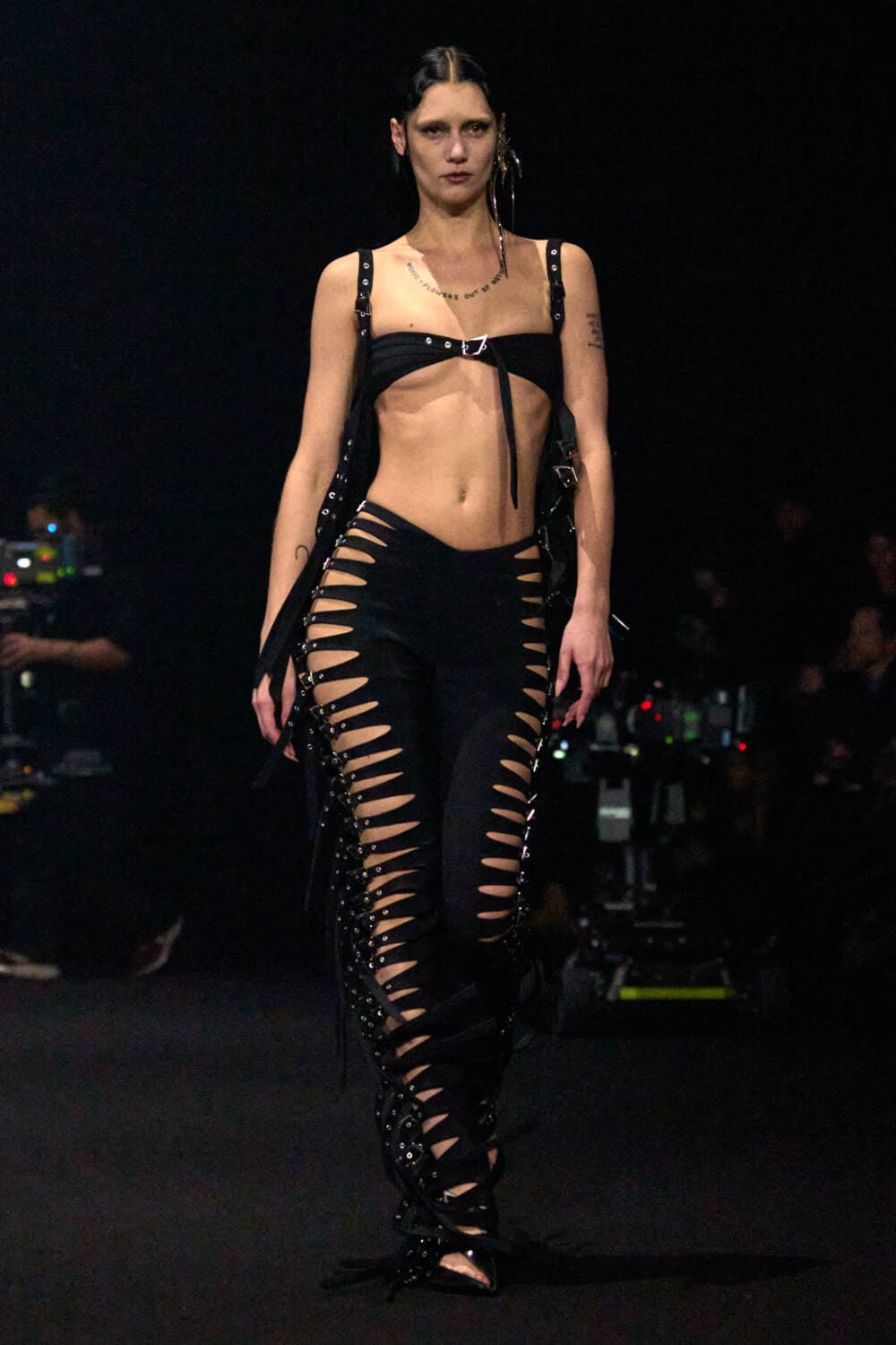 He’s done catsuits and sheer panels and cut outs, now the designer is expanding his Mugler vocabulary to include fluttering asymmetric panels that trail as you stride past. In leather or silk they worked to enhance the models in motion.