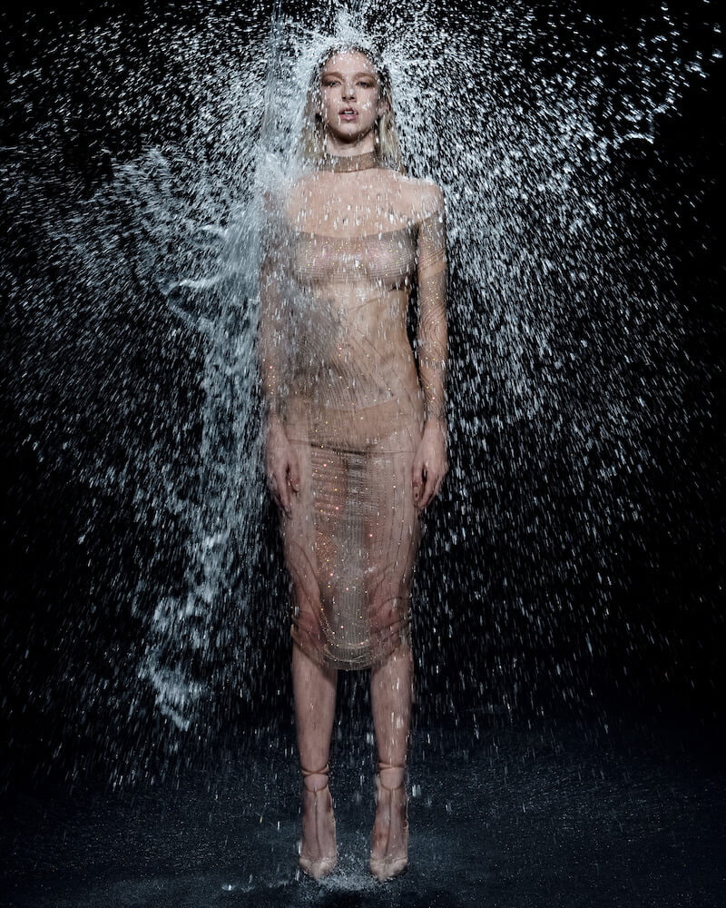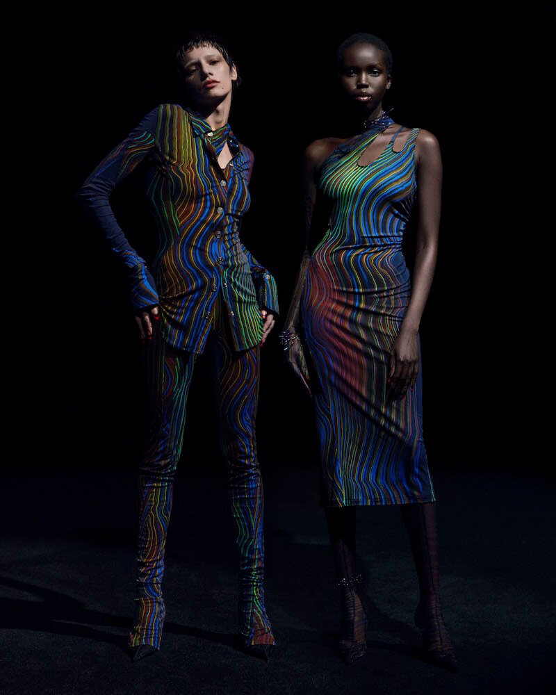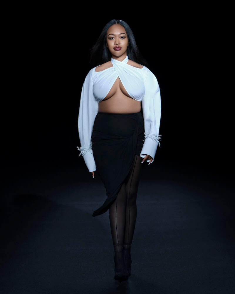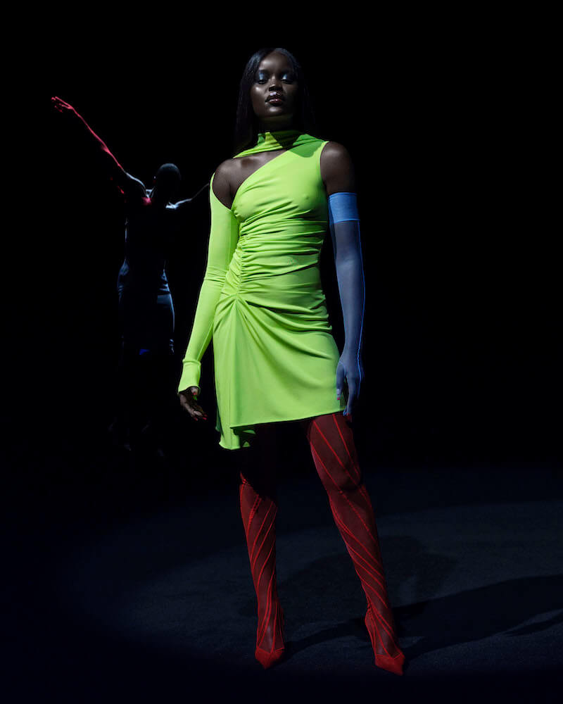 Cadwallader was inspired by comic book heroines and his models looked like Marvel heroines in his transparent and cutaway, second-skin pieces, designed to accentuate and exaggerate anatomical curves. It was tight but not trite. Body-con, in this context on these people, isn’t just performative, it’s proactive, empowered, sex-positive and political. It’s also available to buy right now on the Mugler site.