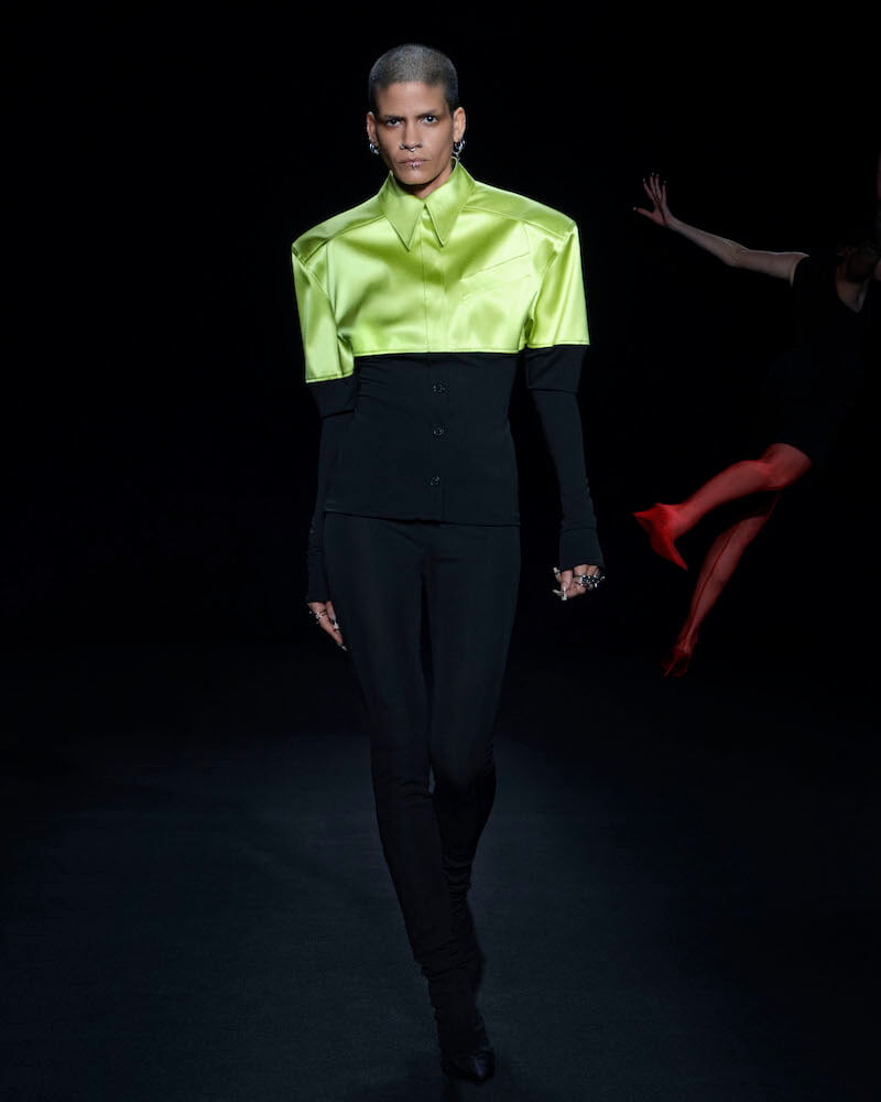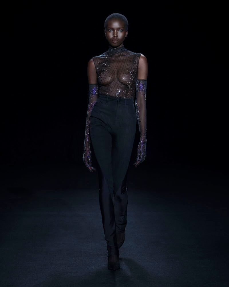 The designer talked about the “power and the glory” of the cast for his ‘backwards’ fashion show and he wasn’t exaggerating. Amongst those giving epic runway turns were: Euphoria’s Hunter Schafer, Pose star Dominique Jackson, kickass action heroine Omahyra Mota, Ajok Madel, Bella Hadid, Soo Joo Park, Irina Shayk, Patia Borja, Kembra Pfahler and Alek Wek.