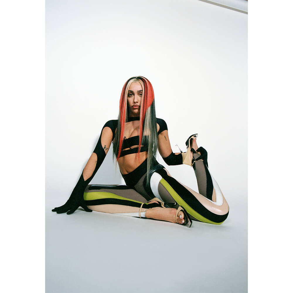 Though this season’s flick comes with an extra dollop of Tinseltown magic. Working again with director Torso, the duo headed to Paramount Studios, where Mugler’s courageous women kicked, dipped and hair-flipped their way through film set backlots. Joining Mugler’s on-going cast of warriors – which includes everyone from Bella Hadid and Lourdes Leon, to Dominique Jackson and experimental musician Eartheater – is Megan Thee Stallion. Cadwallader recently co-directed the video for Stallion’s single “Plan B”, reuniting once more as the globally-adored rapper appears as a billboard starlet – clad in an ass-baring Mugler bodysuit fashioned from denim.