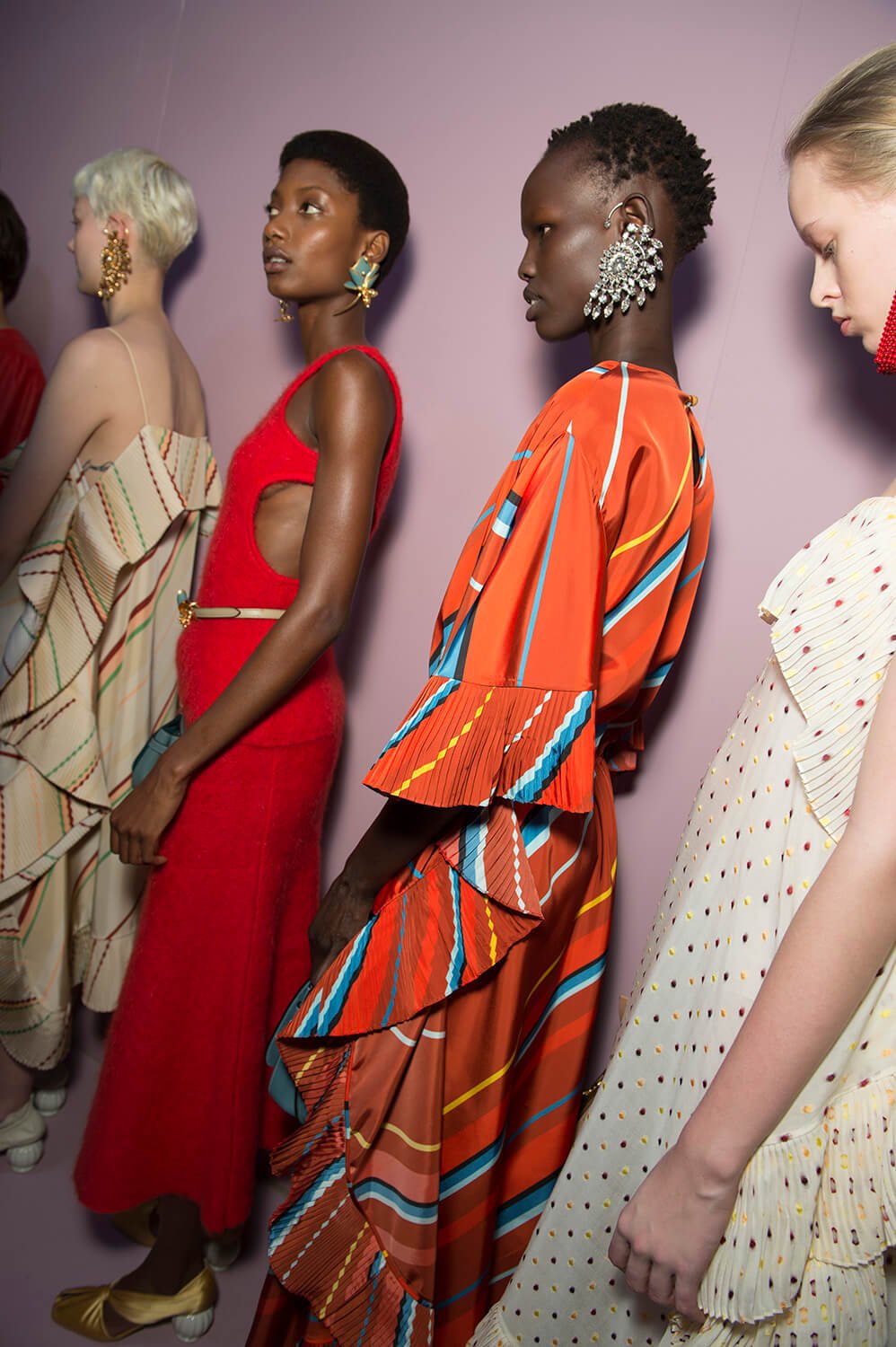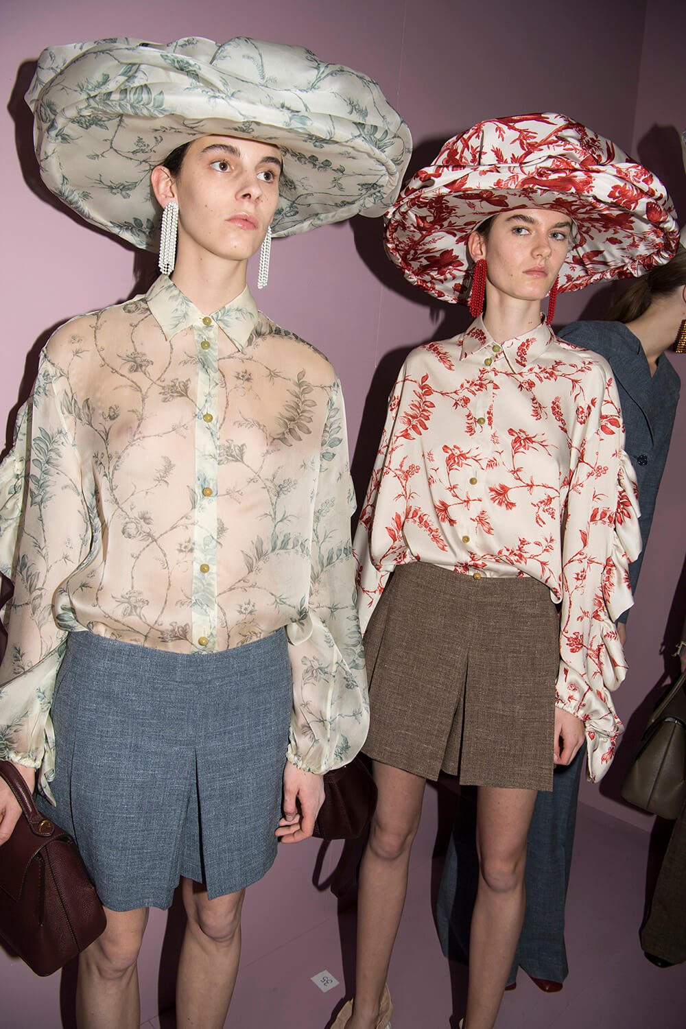 We’ve never been big on the races but perhaps this will take us trackside. Royal, regal? Could Johnny Coco be gunning for a part in Megan Markle’s bridal trousseau? Straight to the heart in playing a part of British history. The collection was presented in the round with Alison Goldfrapp emerging from inside a spinning mirrored octagonal situation, singing ‘Anymore,’ adding a sultriness. “You’re what I want, you’re what I need, give me your love, make me a freak.” Ooh, getting a bit hot and heavy behind the hedges at Ascot. We’re off to get some high tea, those bone china painted florals have us in the mood. A whiplash of Englishness. Smashing.