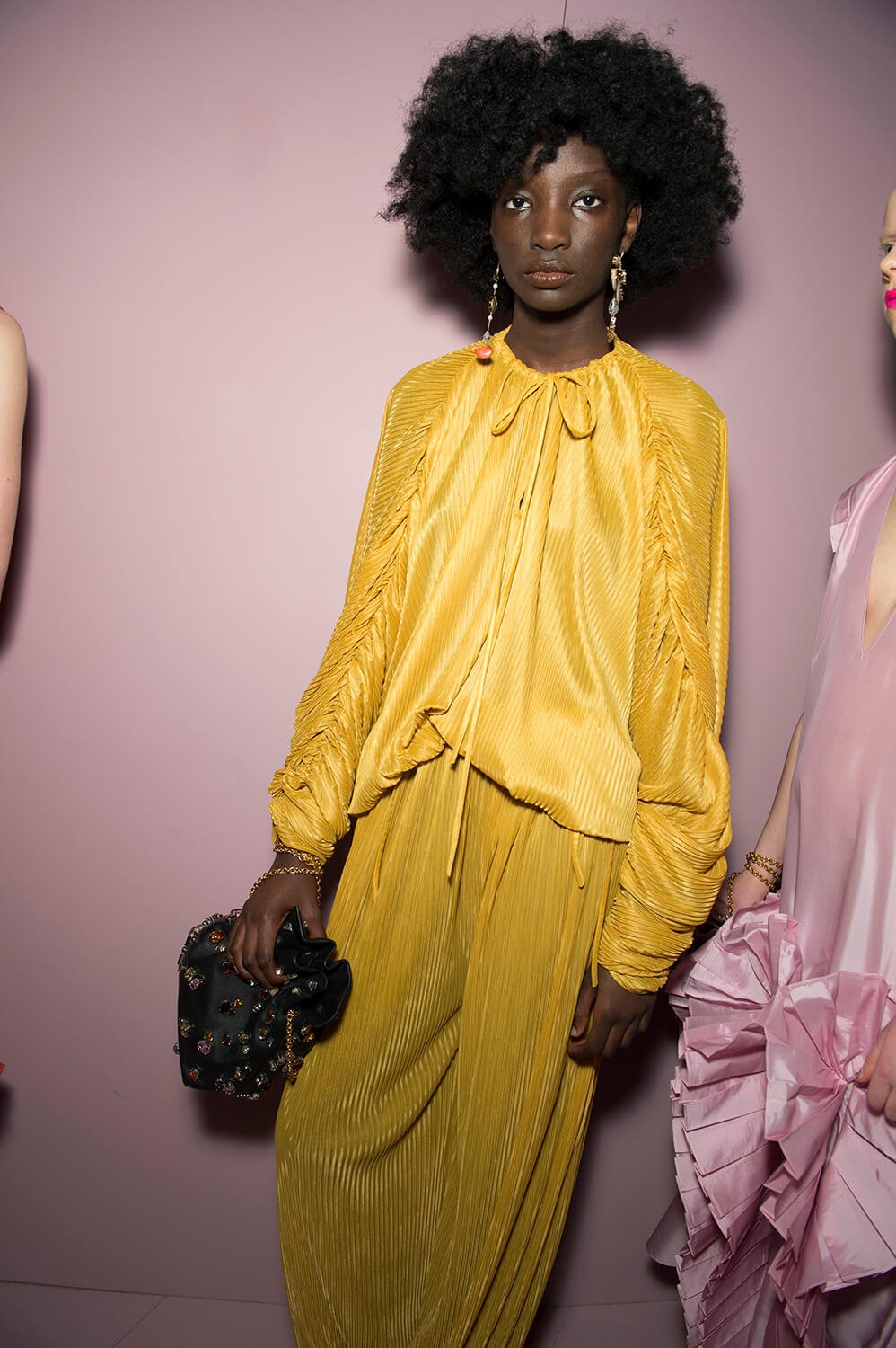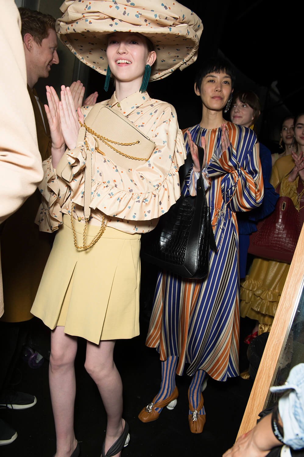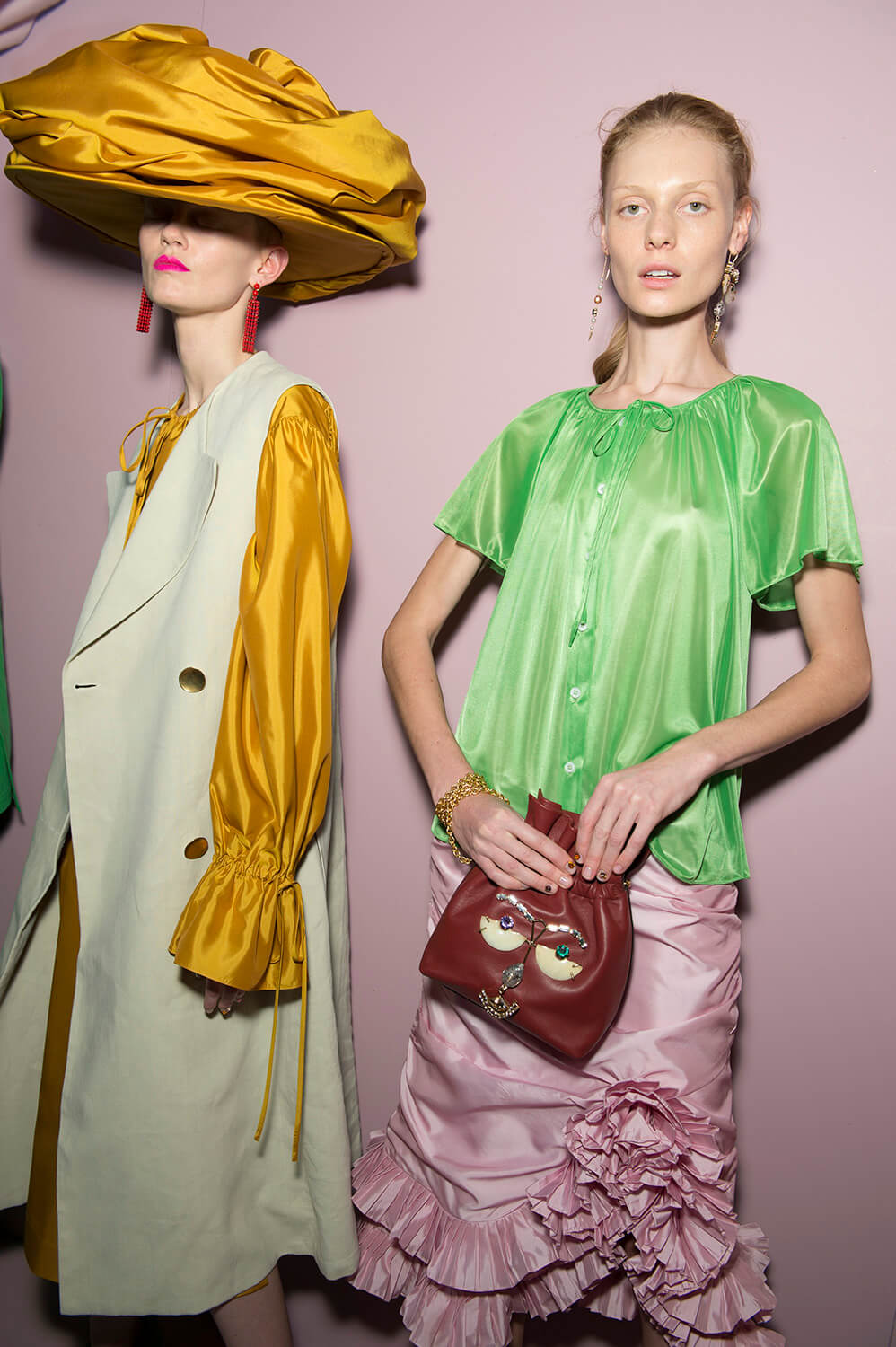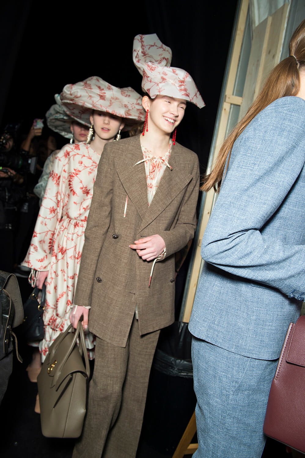 We’ve never been big on the races but perhaps this will take us trackside. Royal, regal? Could Johnny Coco be gunning for a part in Megan Markle’s bridal trousseau? Straight to the heart in playing a part of British history. The collection was presented in the round with Alison Goldfrapp emerging from inside a spinning mirrored octagonal situation, singing ‘Anymore,’ adding a sultriness. “You’re what I want, you’re what I need, give me your love, make me a freak.” Ooh, getting a bit hot and heavy behind the hedges at Ascot. We’re off to get some high tea, those bone china painted florals have us in the mood. A whiplash of Englishness. Smashing.
