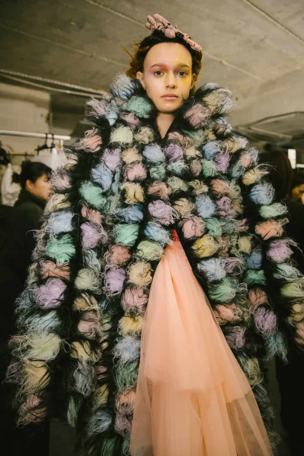 Saturday morning. Paris Fashion Week. Many editors have been at shows non-stop now for the past four weeks. At this point, spirits can get low (eye bags hang even lower). A sprinkle of fashion fun can go a long way in boosting the morale and bringing the energy levels back up to speed. Luckily, the Noir Kei Ninomiya show was electric in its optimism. So electric, in fact, watching it felt like a sartorial equivalent to knocking back a pack of Haribo Tangfastics, all in one go.