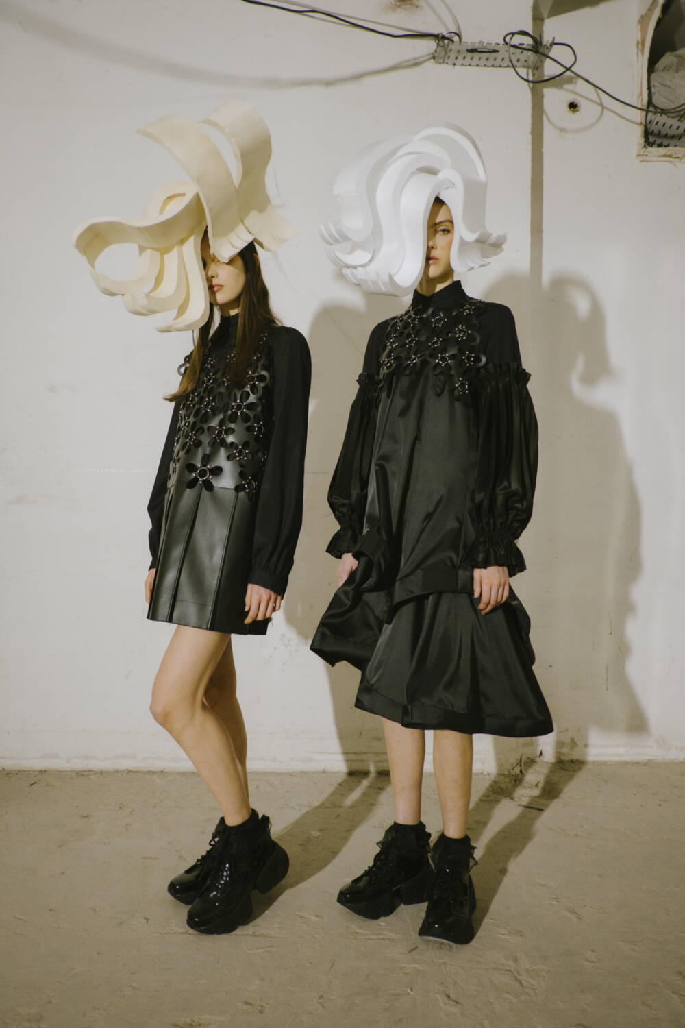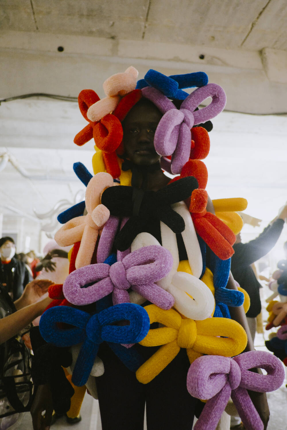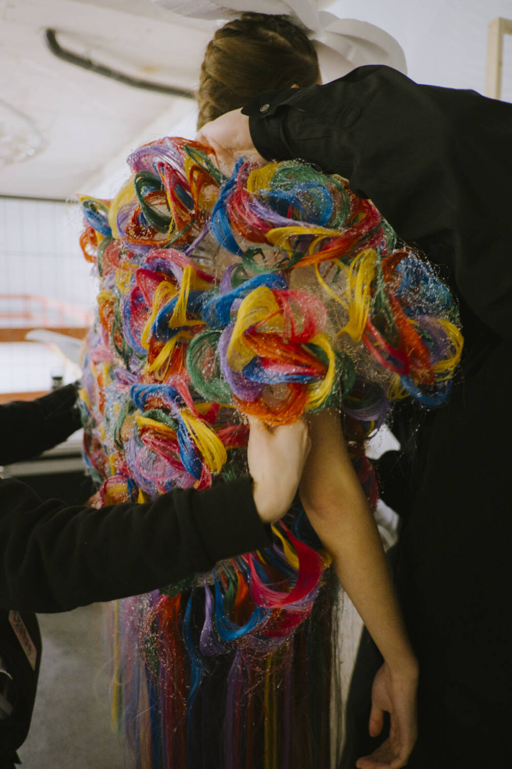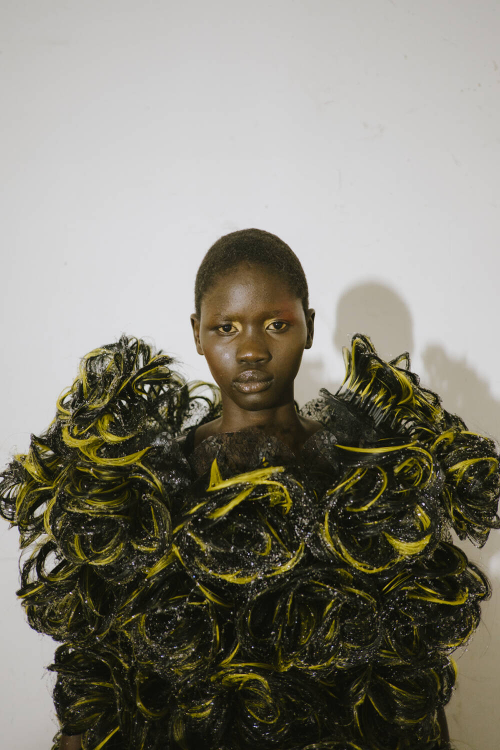 Textures were at the forefront, with cascading tulle, tangled metalwork and architectural floral structures transforming models into walking art pieces. Feathers erupted from shoulders, while oversized, bulbous silhouettes gave an almost otherworldly effect. There was movement, drama and a touch of chaos – controlled, of course, with the precision that has become synonymous with Ninomiya’s name.