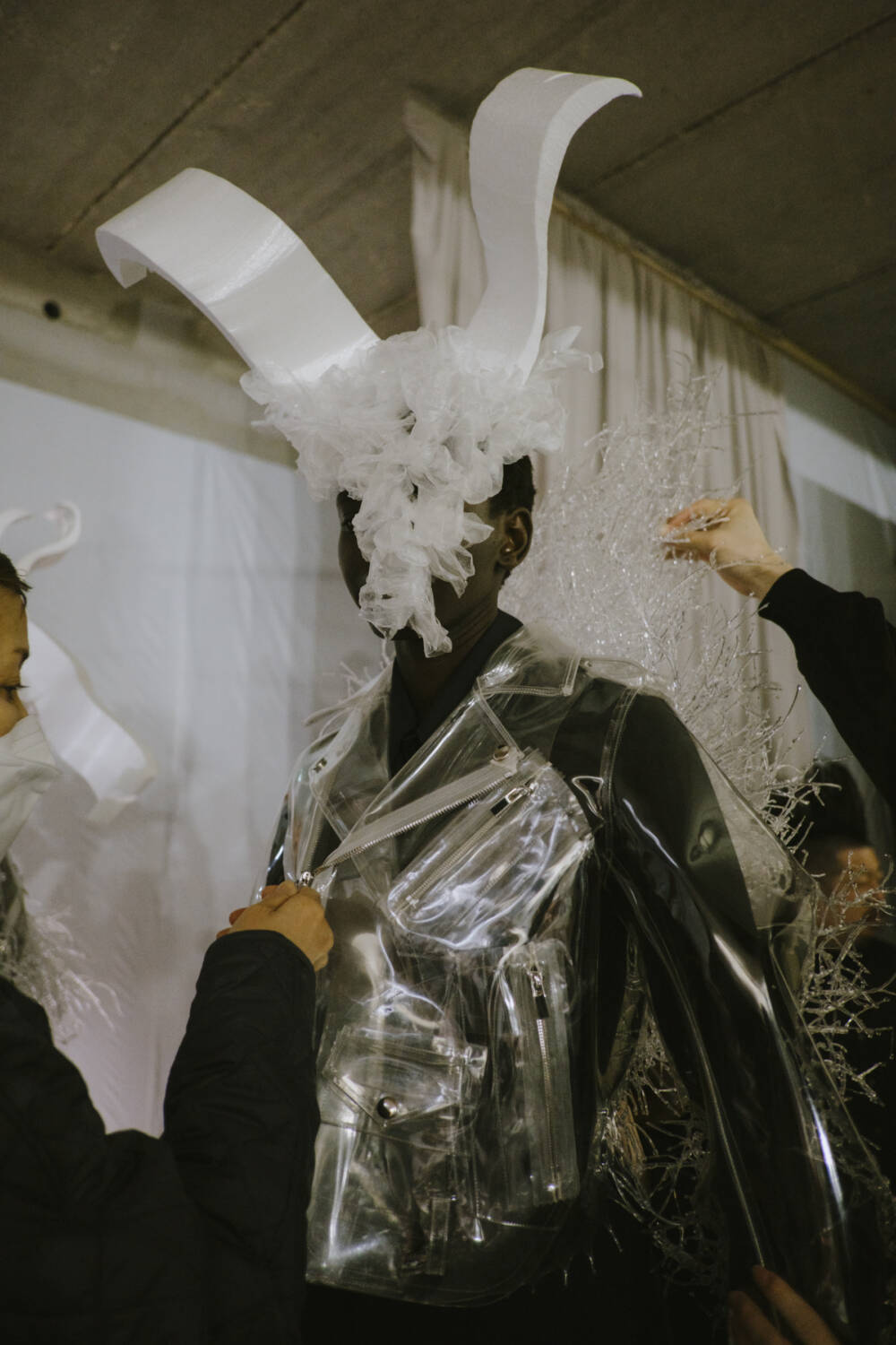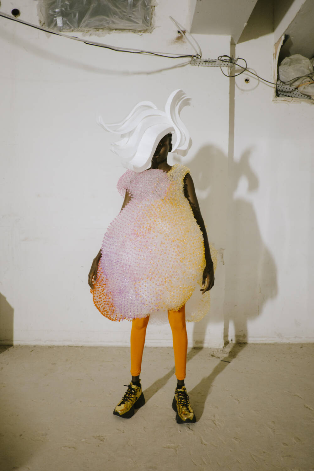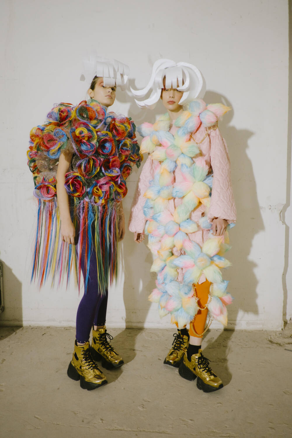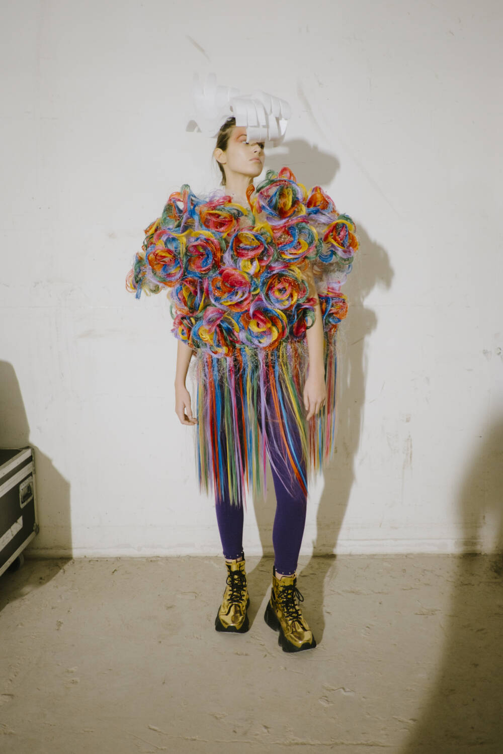 Textures were at the forefront, with cascading tulle, tangled metalwork and architectural floral structures transforming models into walking art pieces. Feathers erupted from shoulders, while oversized, bulbous silhouettes gave an almost otherworldly effect. There was movement, drama and a touch of chaos – controlled, of course, with the precision that has become synonymous with Ninomiya’s name.