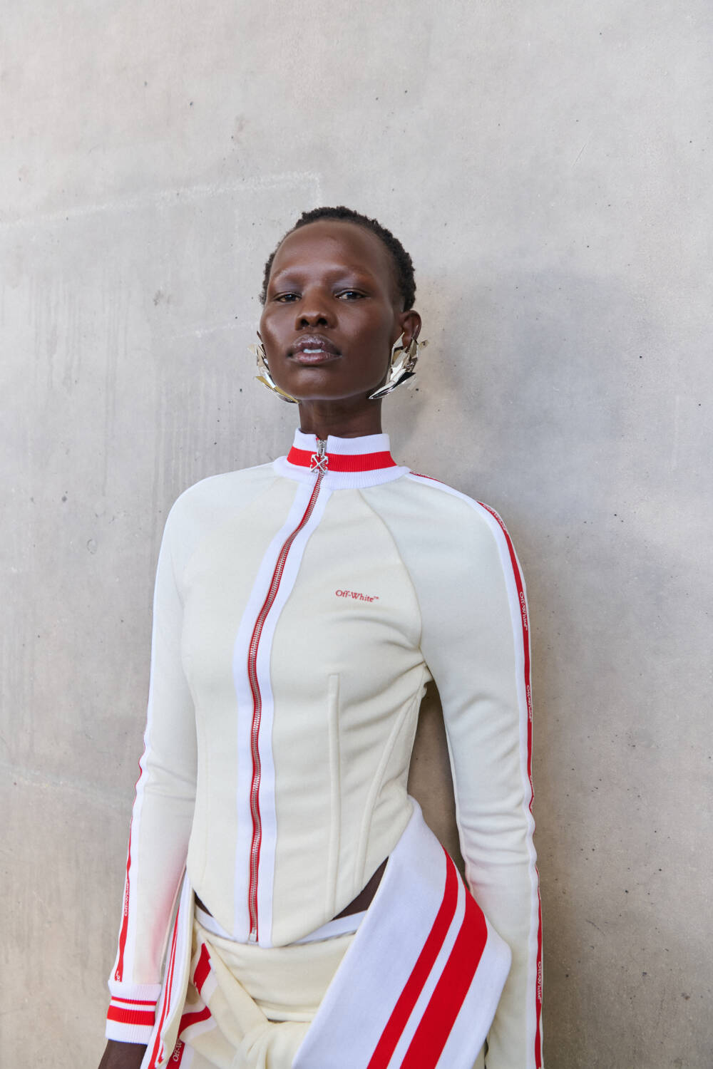 Leave it to Ib Kamara to transform Brooklyn Bridge Park’s basketball courts into a catwalk. But that’s what he did for Off-White’s New York Fashion Week debut. Dubbed the Duty Free show, Kamara found his point of departure in a recent trip to Ghana, the place where the brand’s late founder Virgil Abloh was from. Kamara grew up in Sierra Leone, but their experiences of the ‘American Dream’ were similar. “I have vivid memories of what America, and New York in particular, represented in the collective imagination of Africans: a dreamland of utopias made real, a place of opportunities,” he wrote in the show notes. “The lotteries in which the main prize would be a possibility to enter the States were major events for us.” With this understanding in his back pocket, Kamara fashioned a fusion between both cultures for SS25, subverting classic, Americana sportswear through the lens of first-generation African immigrants.