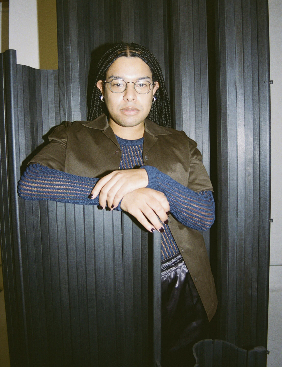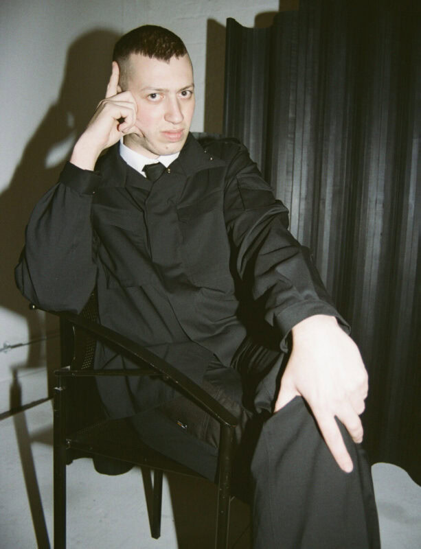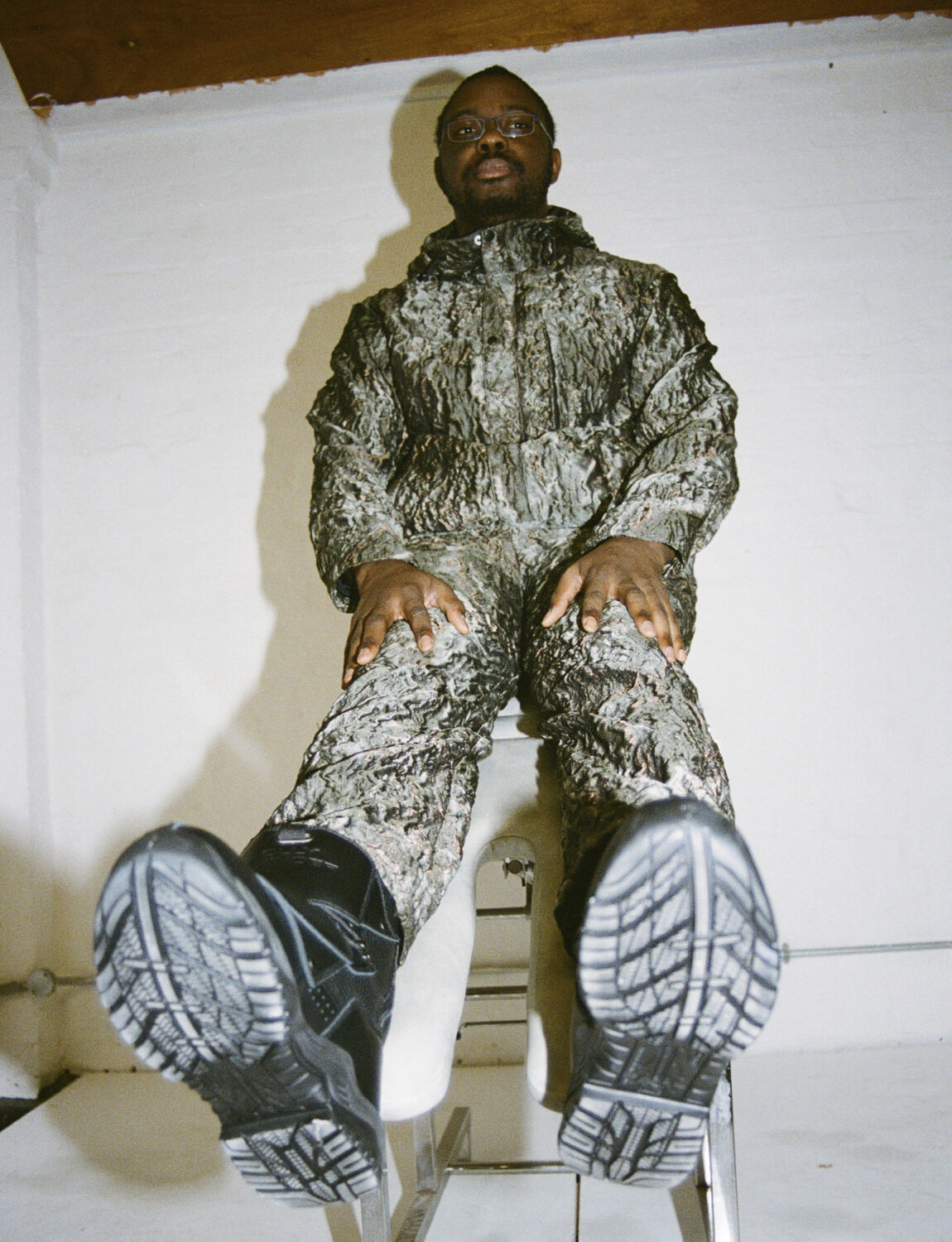 “What I wear is quite hyper-masculine and quite basic. I often look at a piece that already exists and challenge myself in how I could make it look like a designer piece, which is a more elevated idea that holds conceptual value rather than transforming something you might find in an army shop.”