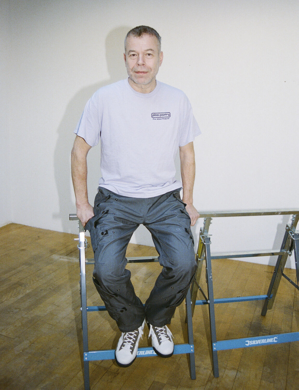 “I’ve always been quite safe in a menswear space. I’m a man, I know my body and I never really made much womenswear when I was at Saint Martins,” he says (Shinder graduated in 2022). “I think I always knew that I had it in me [to do it]. [The] summer ’25 [collection] definitely showed a building step towards what our womenswear is leading towards.” While this collection was fantasy-fuelled, his AW25 outing – unveiled in February – was a uniform grounded more in reality. The most elevated expression of Shinder’s wardrobe to date, he shifted his utilitarian codes into more formal territory. There were hand-quilted silk organza skirt suits, military-style overcoats and calf-length apron dresses, alongside impressive wipe-clean macs and hulking donkey jackets. On the catwalk and in everyday life, his clothes are worn by his extended creative community, many of whom feature here.