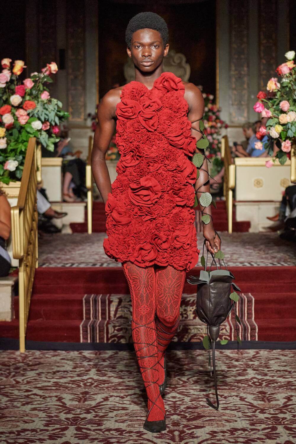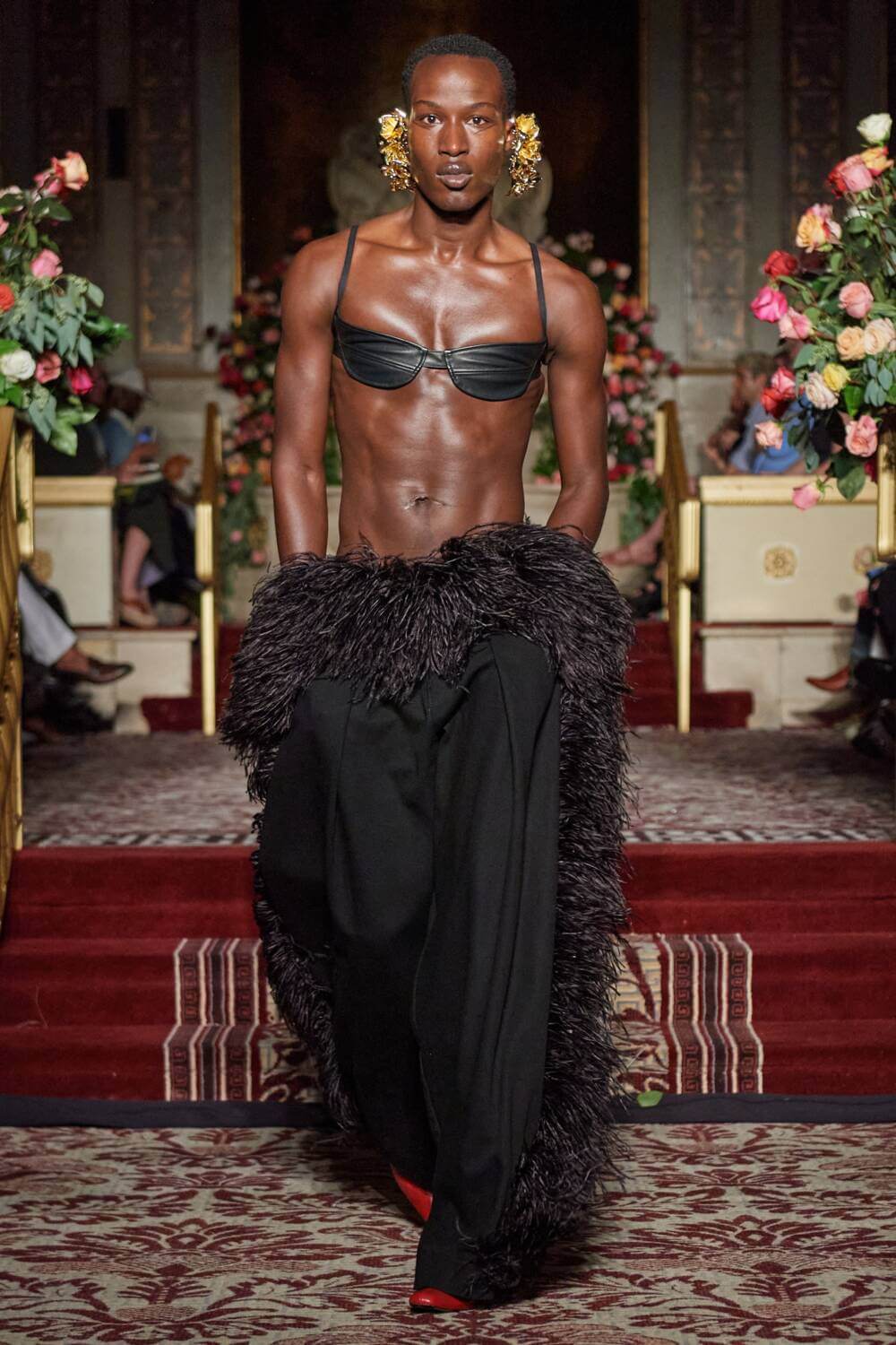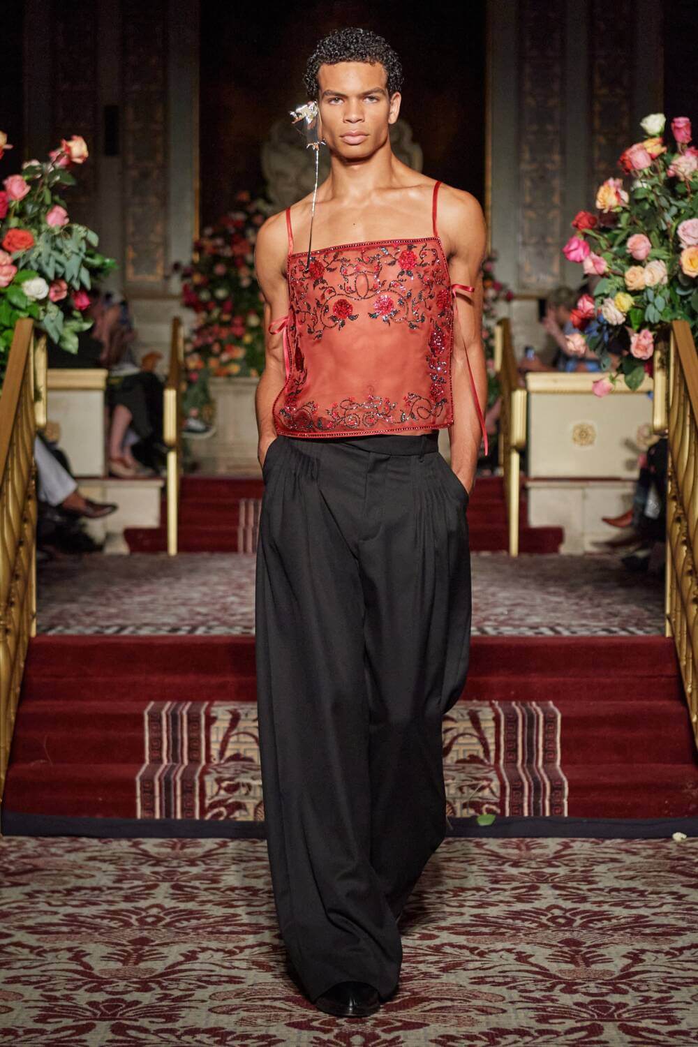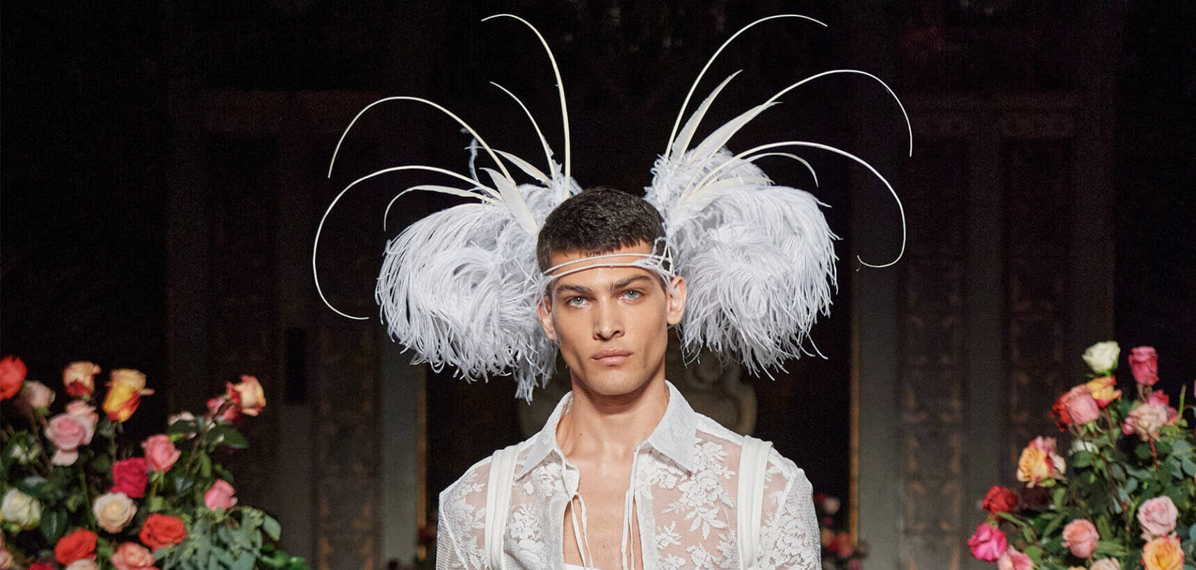 Real men wear feather headdresses. Or they do at Palomo Spain at least. The Madrid-based brand’s SS24 show – made up of almost entirely male-presenting models – flourished like a whiff of heady perfume. It was sexy, it was femme, it was camp – Rococo even – and it was brimming with Spanish roses; lots and lots of roses.