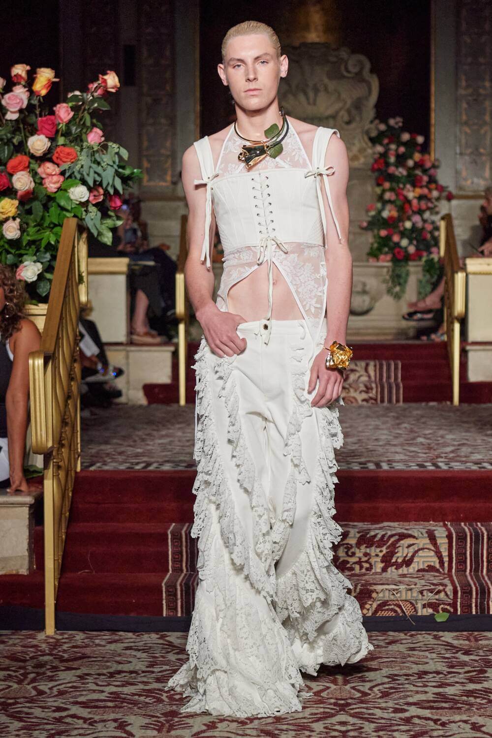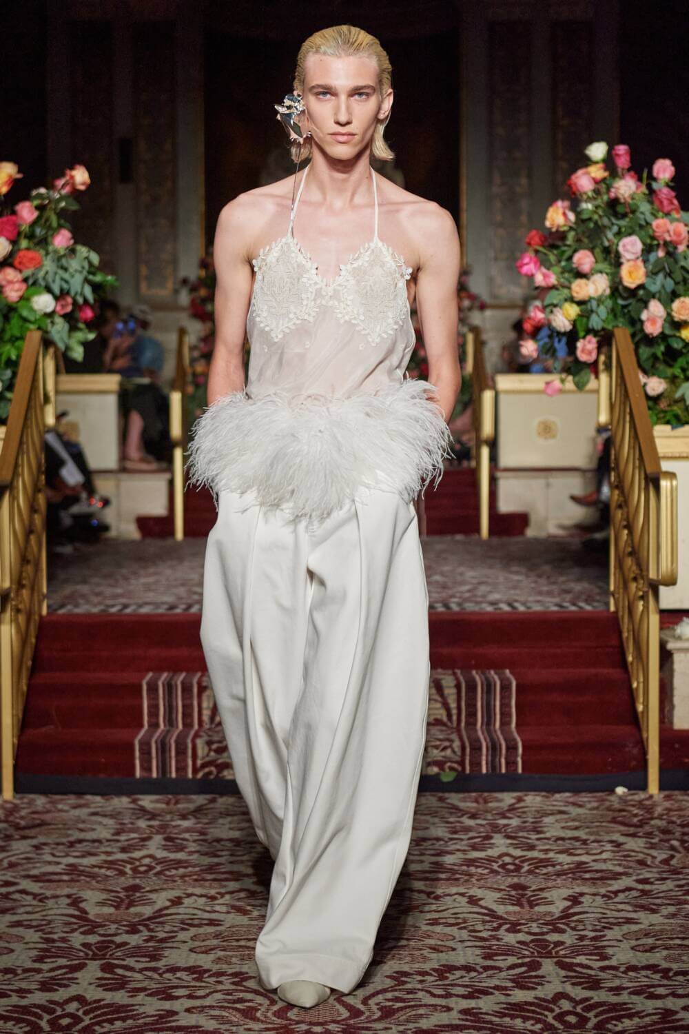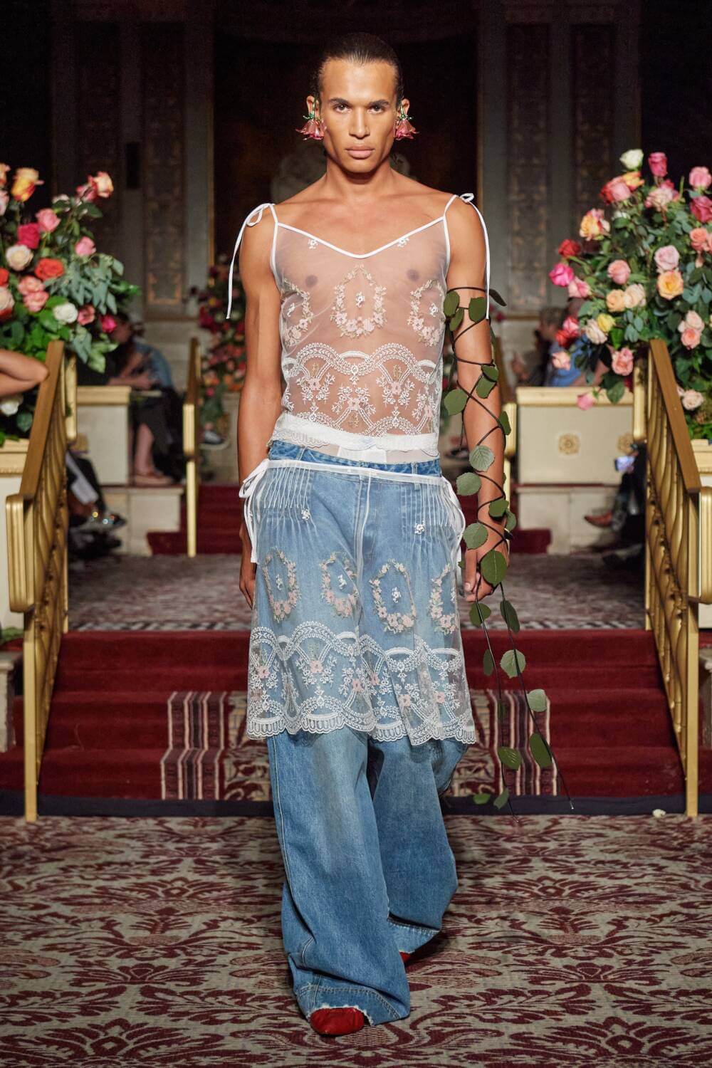 Real men wear feather headdresses. Or they do at Palomo Spain at least. The Madrid-based brand’s SS24 show – made up of almost entirely male-presenting models – flourished like a whiff of heady perfume. It was sexy, it was femme, it was camp – Rococo even – and it was brimming with Spanish roses; lots and lots of roses.