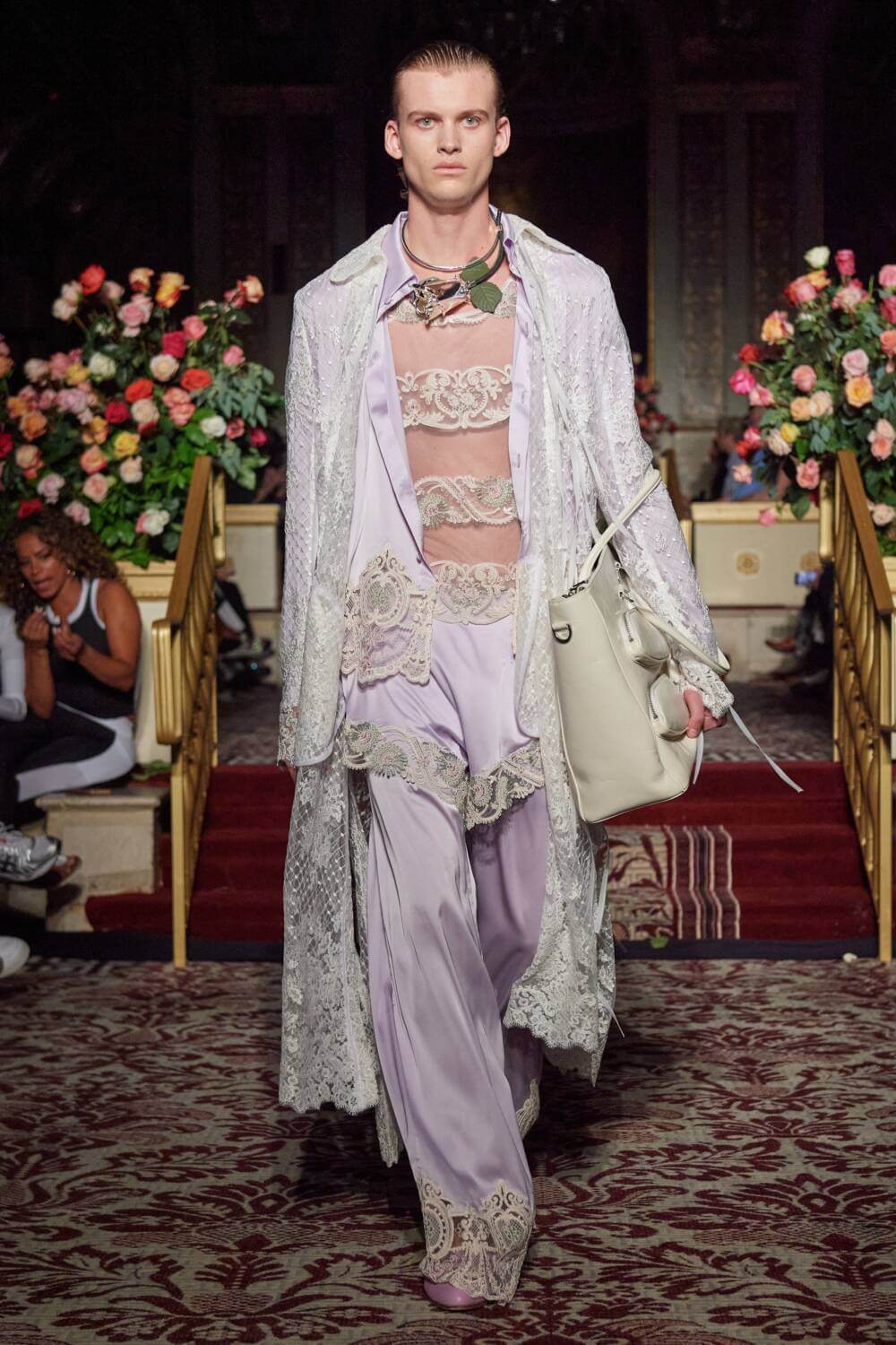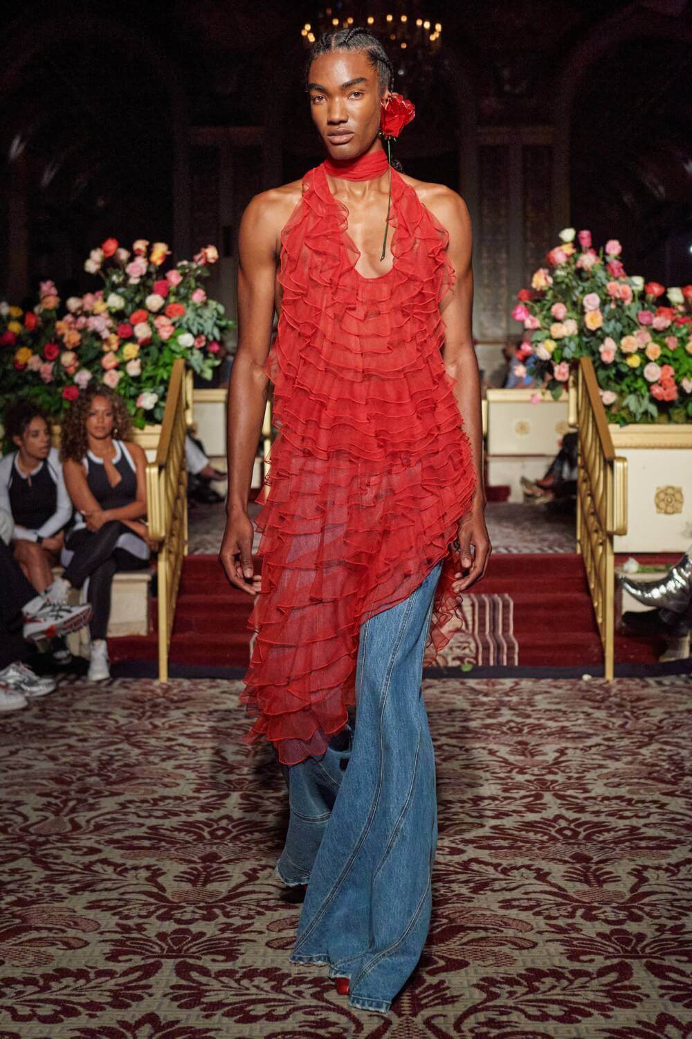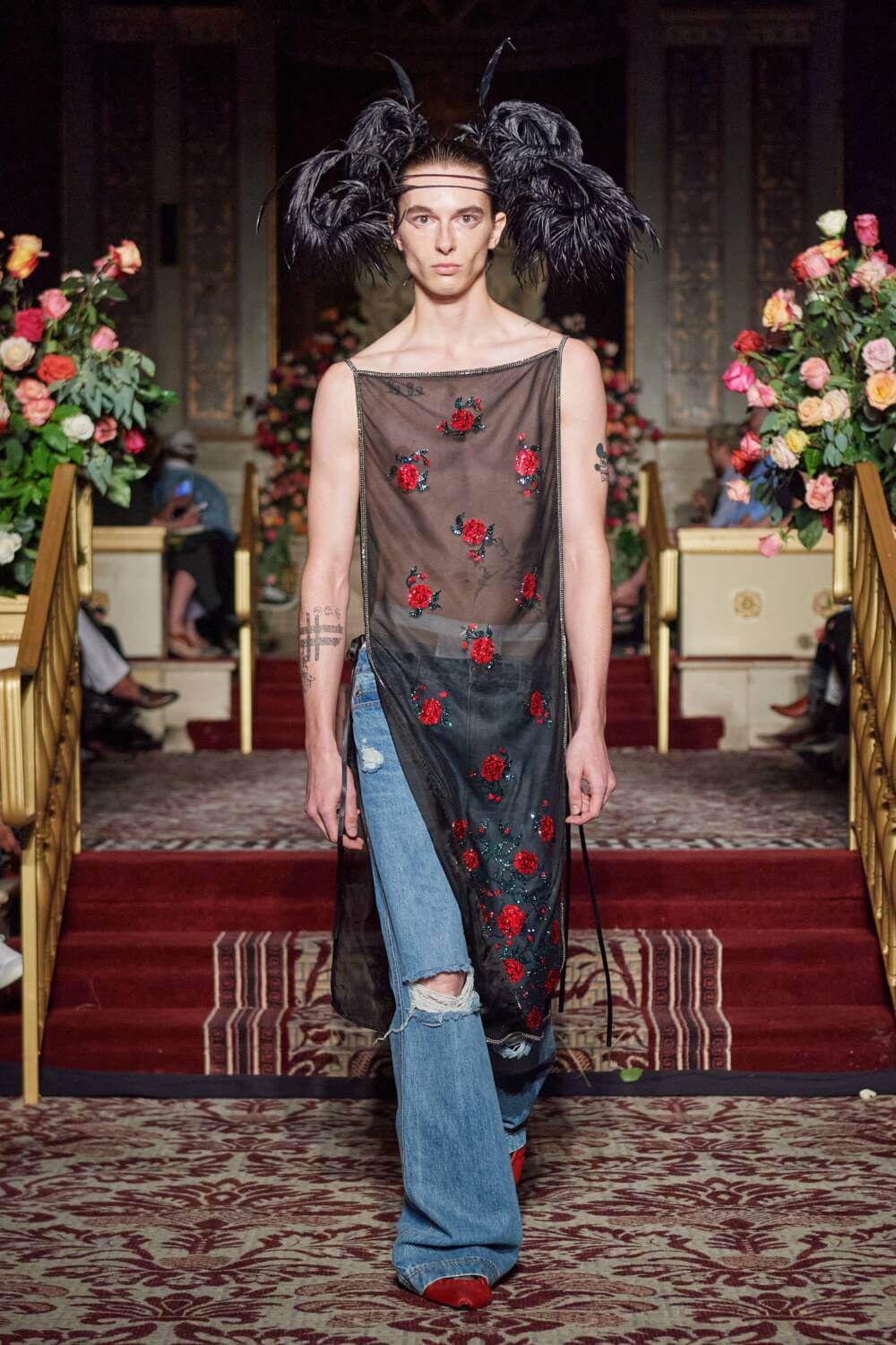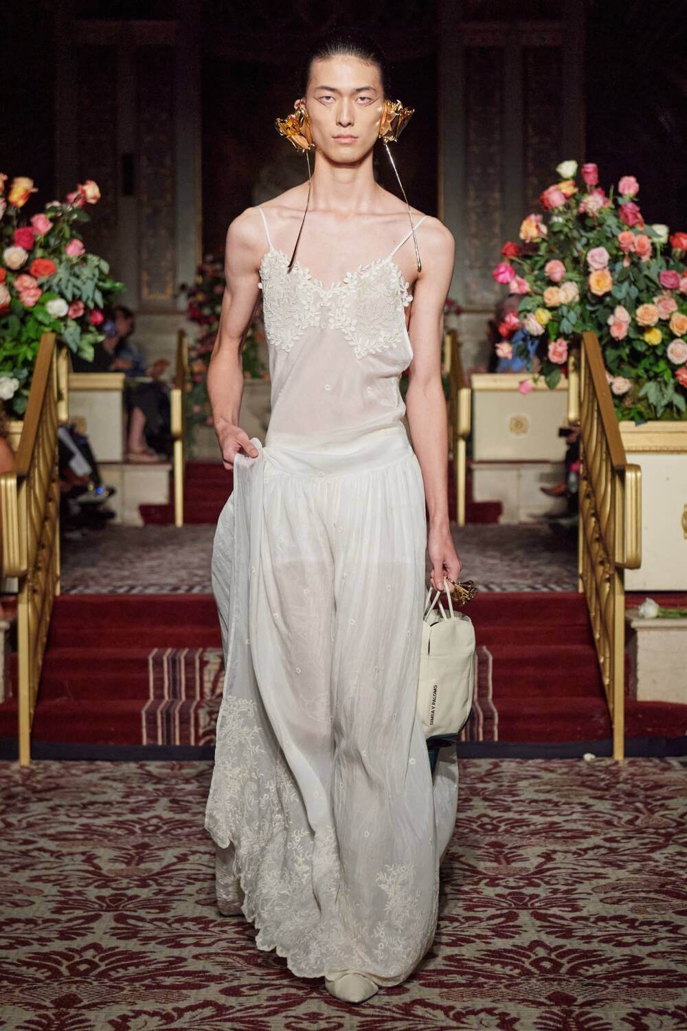 Real men wear feather headdresses. Or they do at Palomo Spain at least. The Madrid-based brand’s SS24 show – made up of almost entirely male-presenting models – flourished like a whiff of heady perfume. It was sexy, it was femme, it was camp – Rococo even – and it was brimming with Spanish roses; lots and lots of roses.