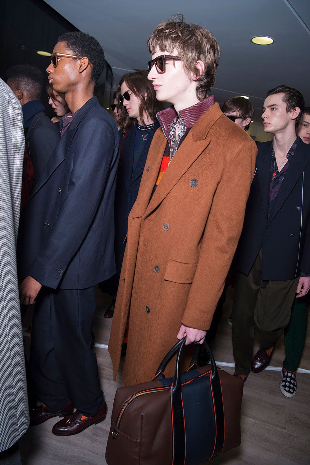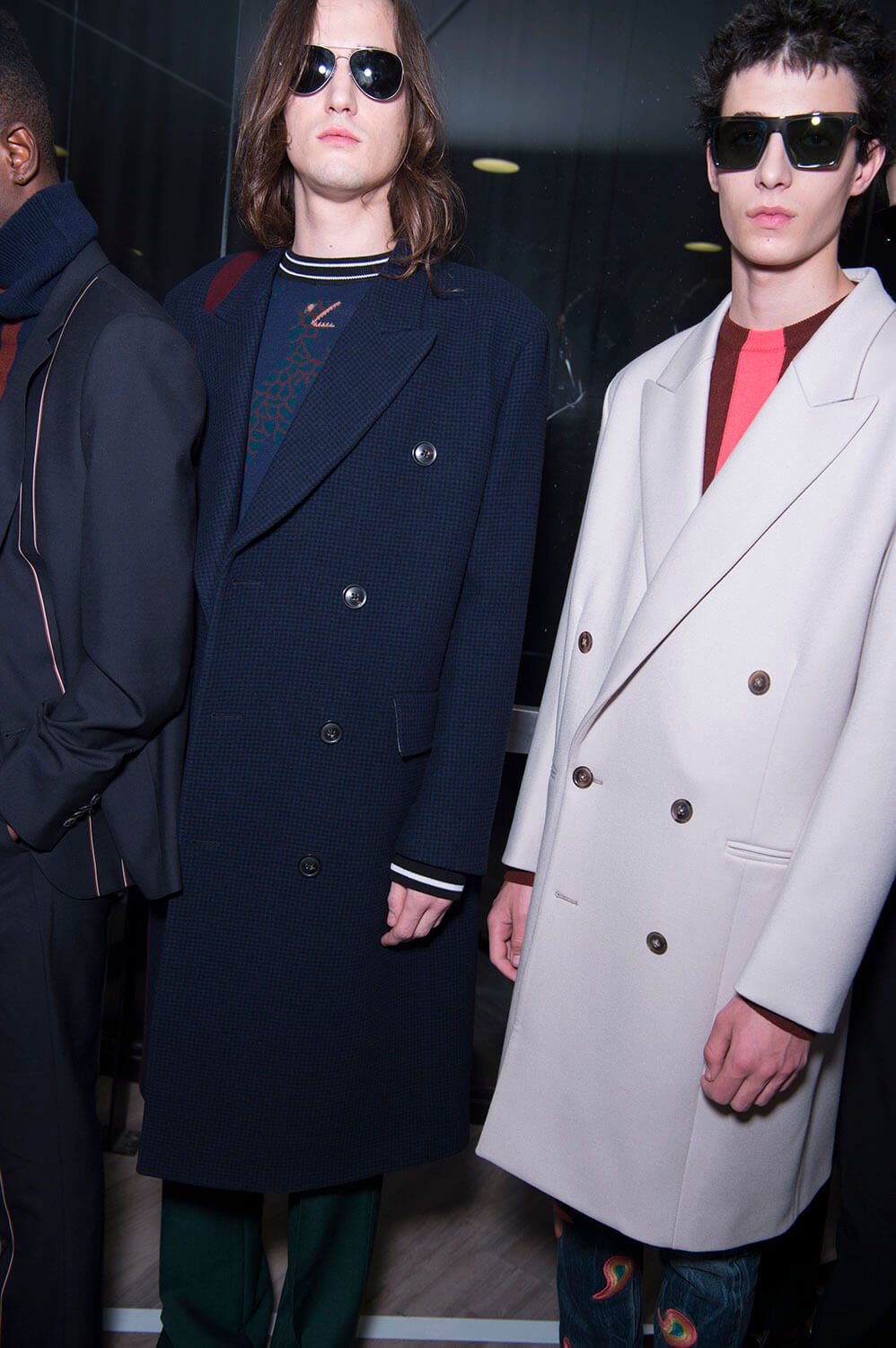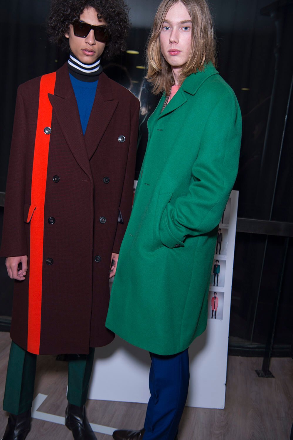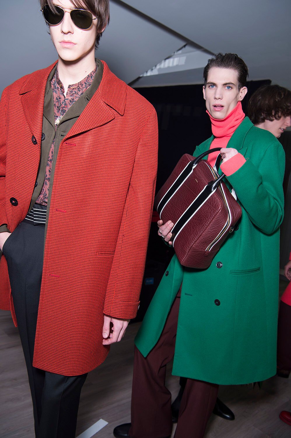 Red and yellow and pink and green, purple and orange and blue. We haven’t totally cracked due to fashion week fatigue: we’re just dissecting the prism of colours crammed into the Paul Smith winter show – sometimes half a dozen in the same outfit. Colour is something Mr Smith does fantastically well – his signature stripe motif go rains even more than that opening litany. It’s a skill amply evidenced by this show, where a big fat tomato red oat clashed with a green jersey or burgundy trousers in a glorious, gleeful cacophony. They were as fun to watch as we bet they will be to wear.