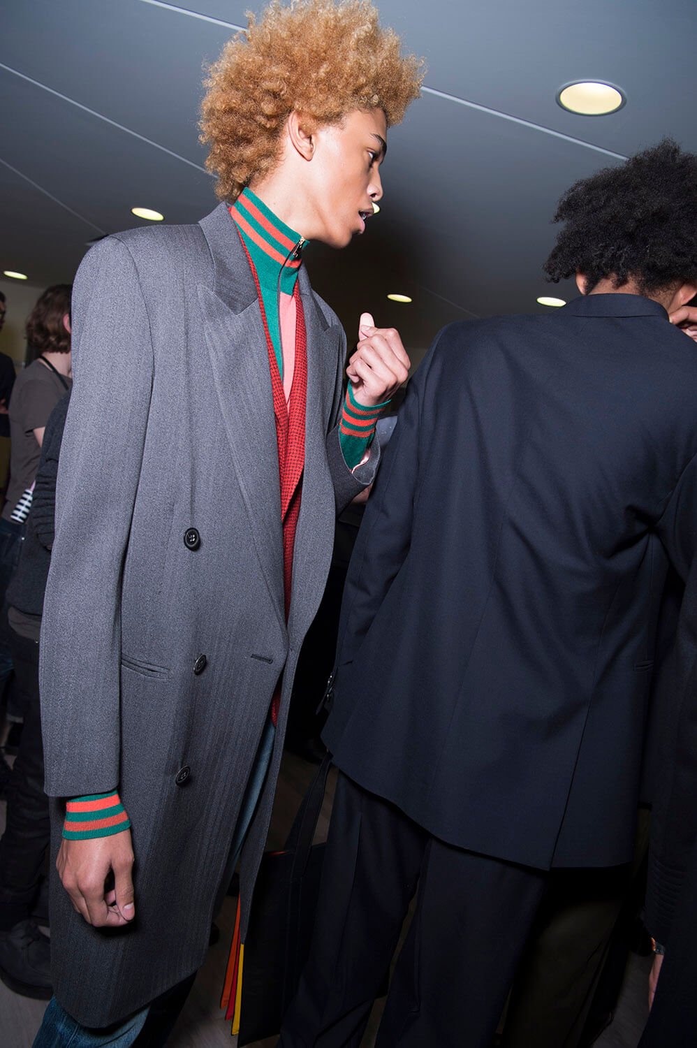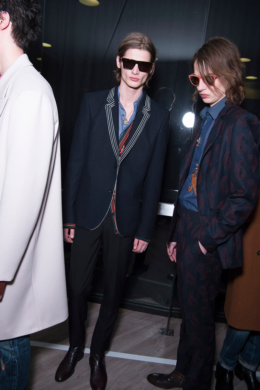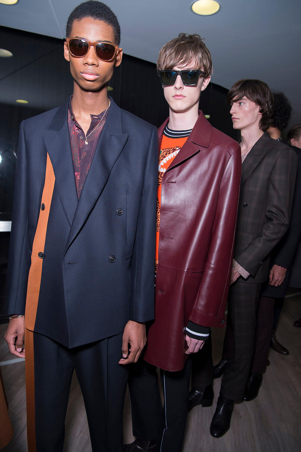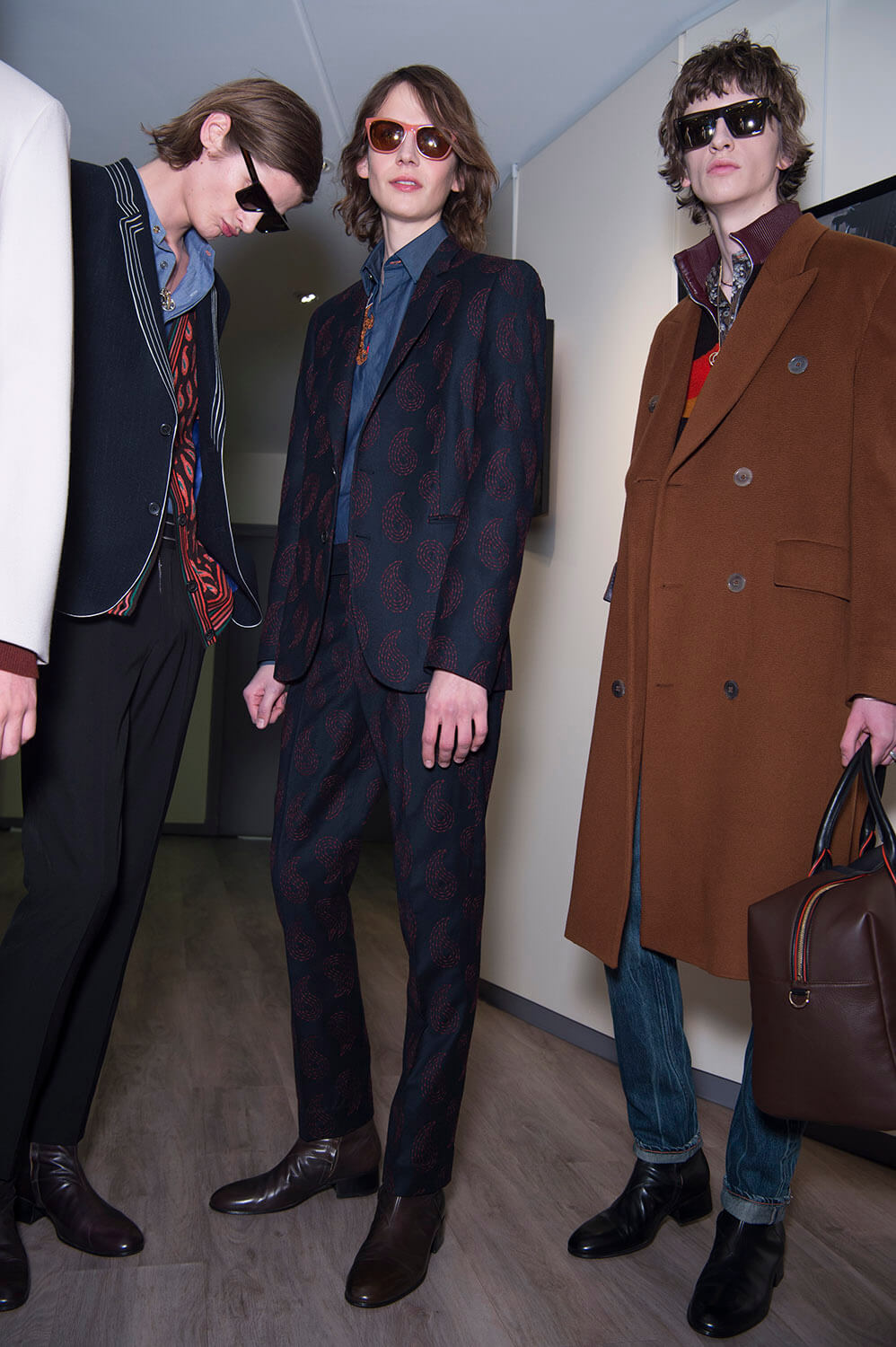 Red and yellow and pink and green, purple and orange and blue. We haven’t totally cracked due to fashion week fatigue: we’re just dissecting the prism of colours crammed into the Paul Smith winter show – sometimes half a dozen in the same outfit. Colour is something Mr Smith does fantastically well – his signature stripe motif go rains even more than that opening litany. It’s a skill amply evidenced by this show, where a big fat tomato red oat clashed with a green jersey or burgundy trousers in a glorious, gleeful cacophony. They were as fun to watch as we bet they will be to wear.
