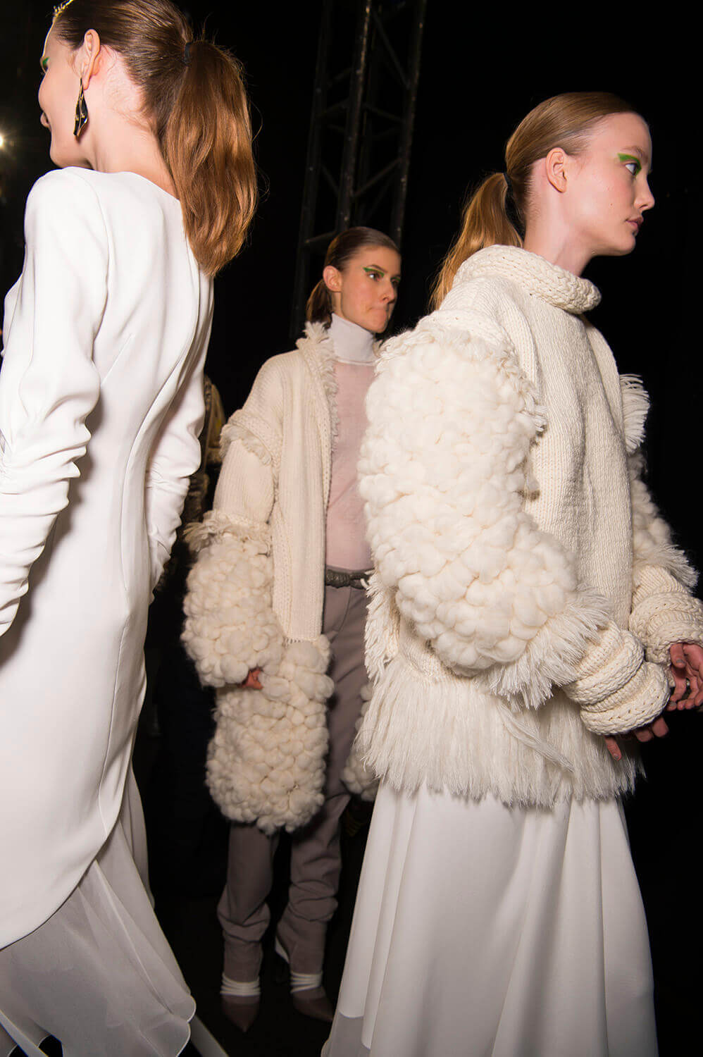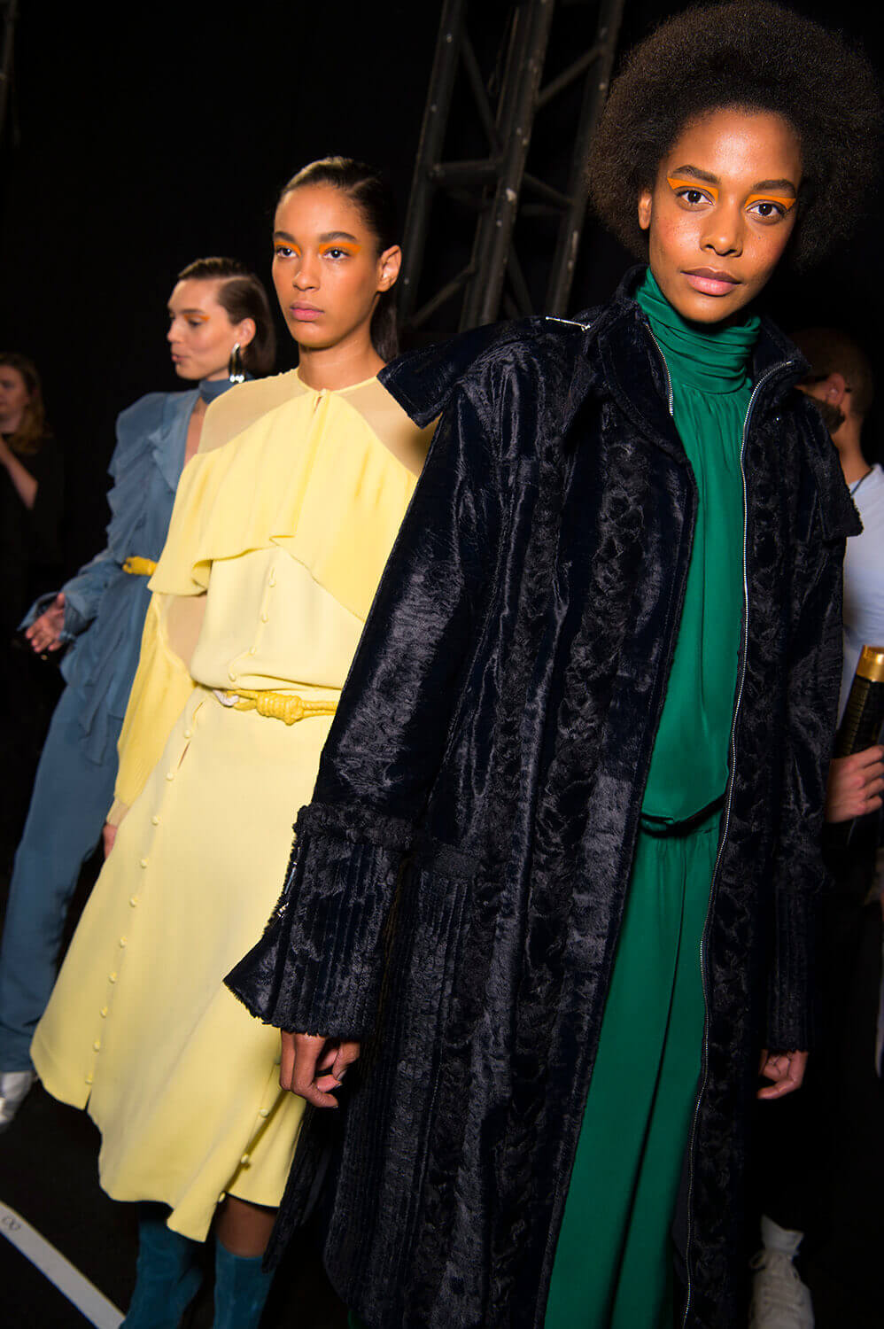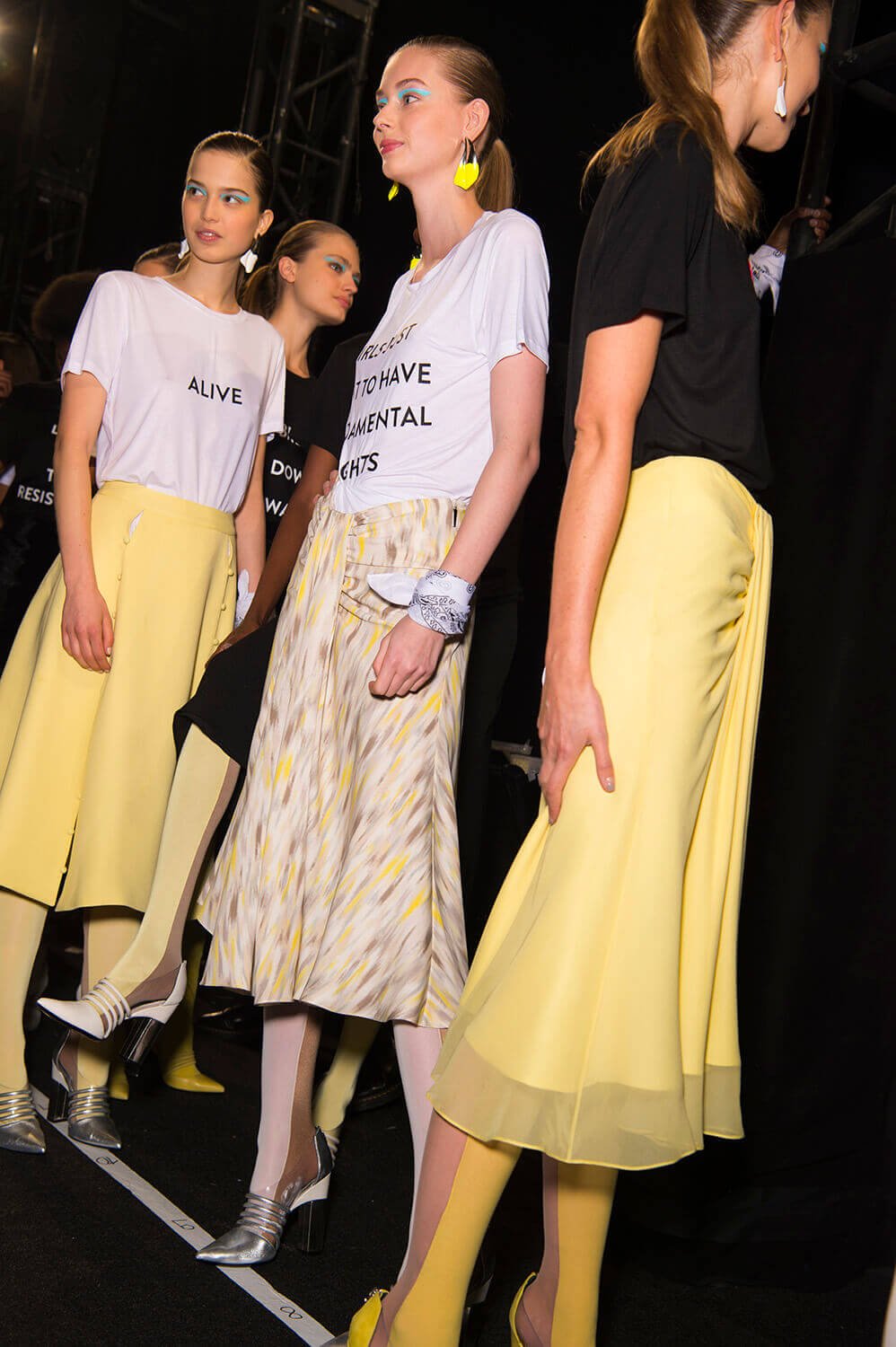 Clothing with a motivational spiel. Anything to help us get out of bed in the morning. Prabal Gurung’s AW17 show this evening in New York ended with slogan t-shirts. T-shirts that were, more specifically, about empowering women. It happened when the girls emerged for the finale – led out by Bella Hadid in a t-shirt that read “The Future Is Female”, each followed with their own slogan tee, and own message. All the way to Prabal himself, who wore one that read “This Is What A Feminist Looks Like”. Girl power! The collection proper was also about strong ladies – inspired by Prabal’s muses from both Nepal and America – friends, family or just women he admires from afar. This meant an eclectic selection of Prabal pieces – from extra-chunky outerwear and knitwear to Joan Smalls in a slinky ballgown. Because what lady wants to choose?